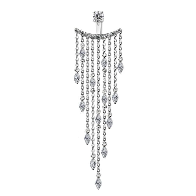 The A-Lister Ear Jacket is a cascading chandelier earring crafted from 9K gold and features a detachable jacket.