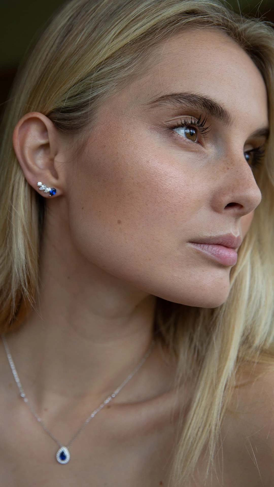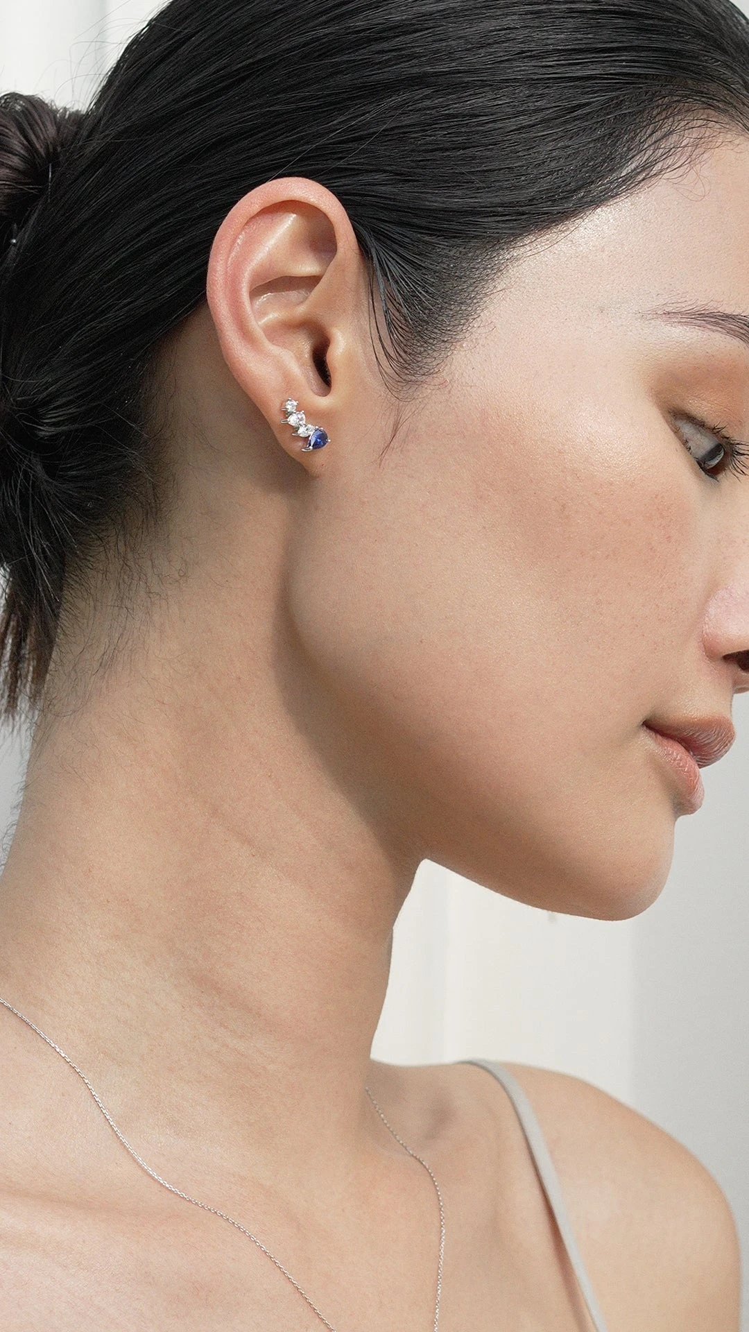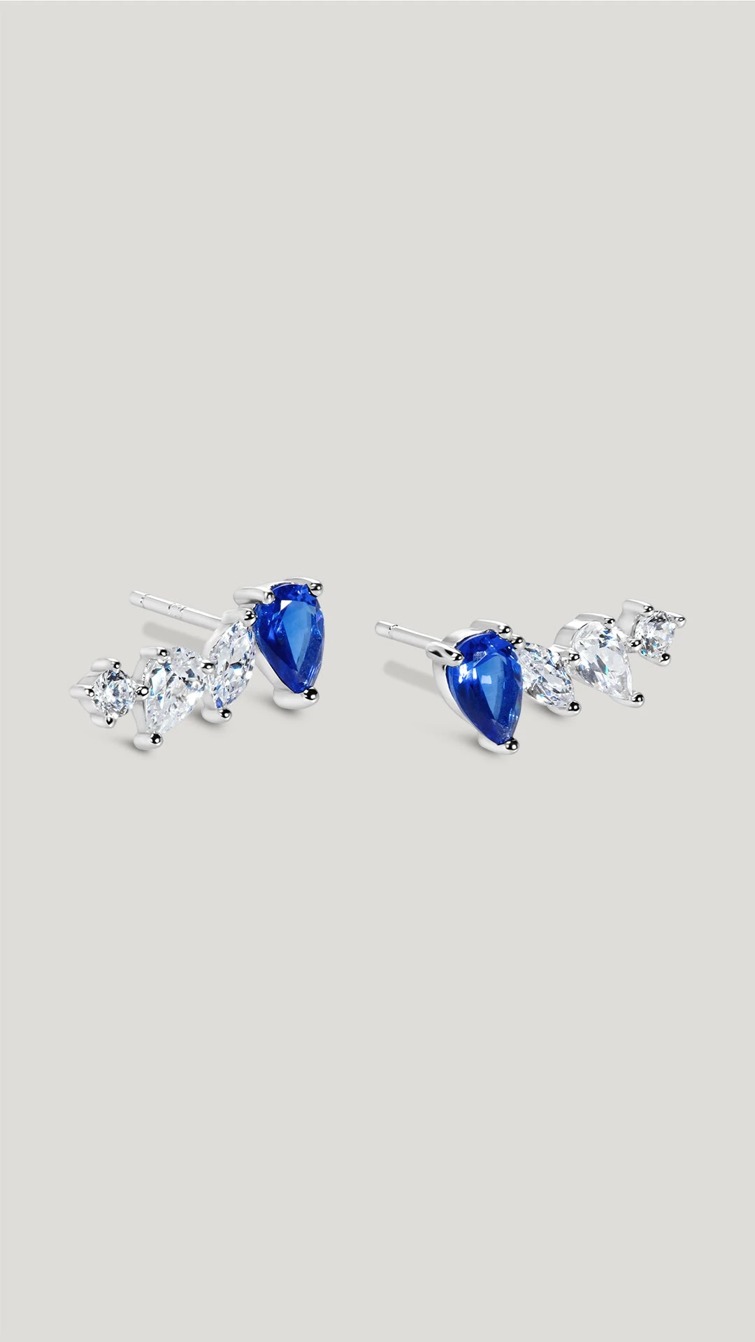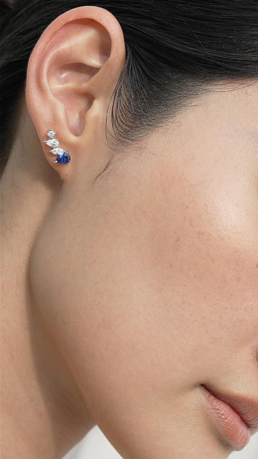 White Gold Plated Sterling Silver | Sapphire Climber Earring