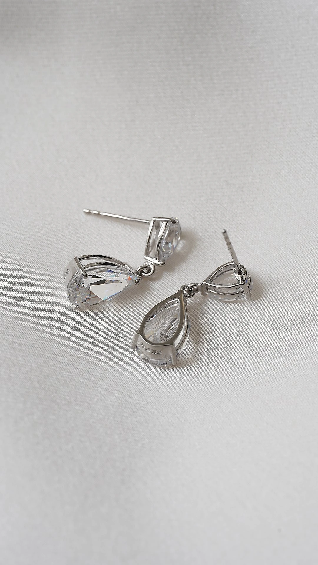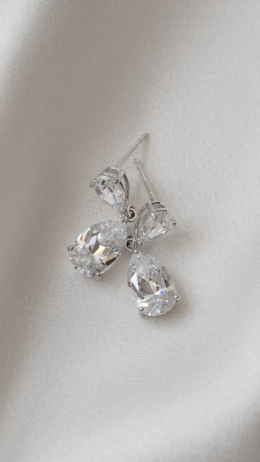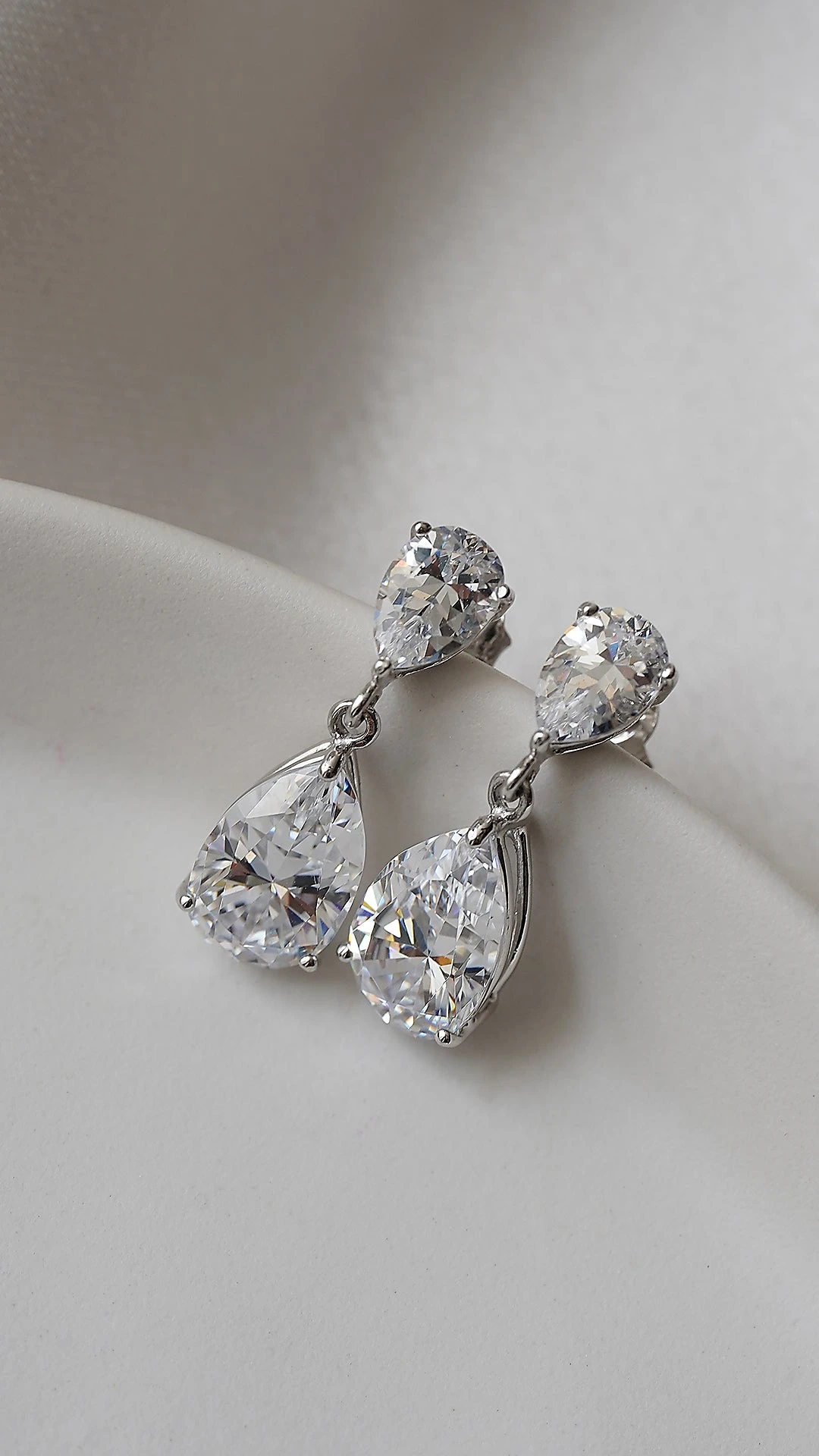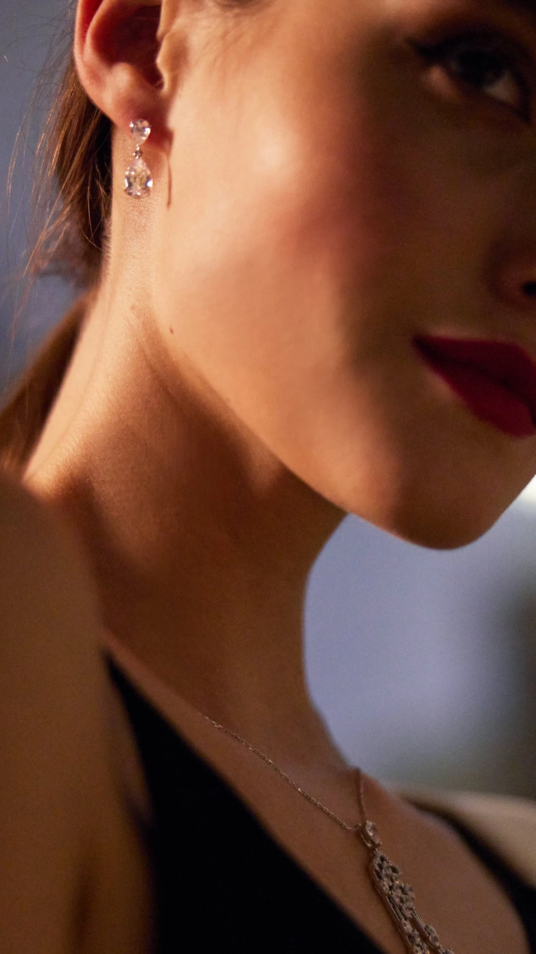 This delicate drop earring comprises two pear cuts, respectively 0.75 and 2.5ct. Equivalent with a total drop of around 2 cm. Arabella is the perfect finishing touch to elevate your look day or night.