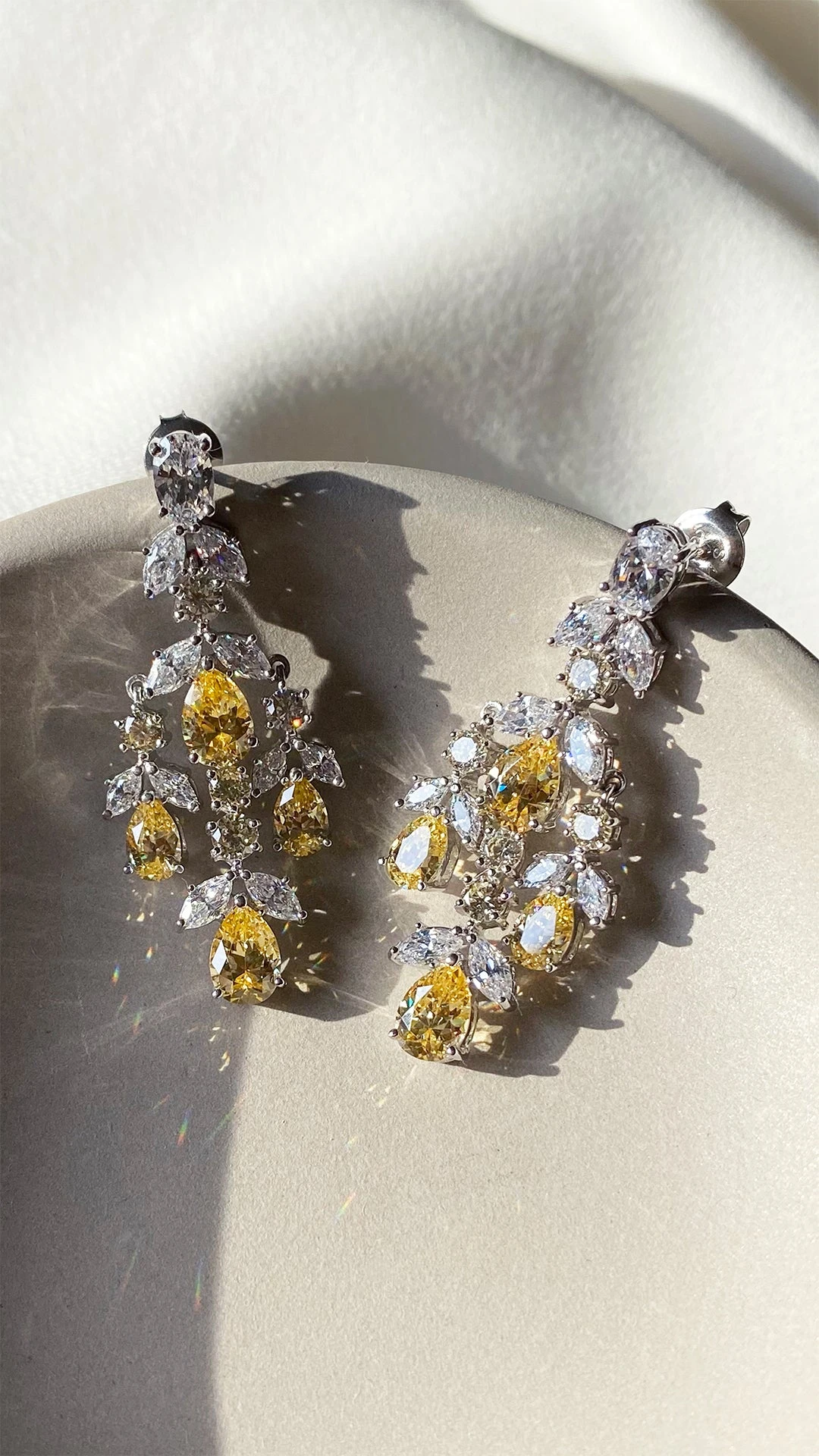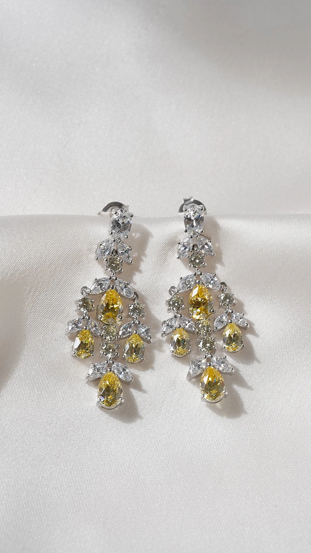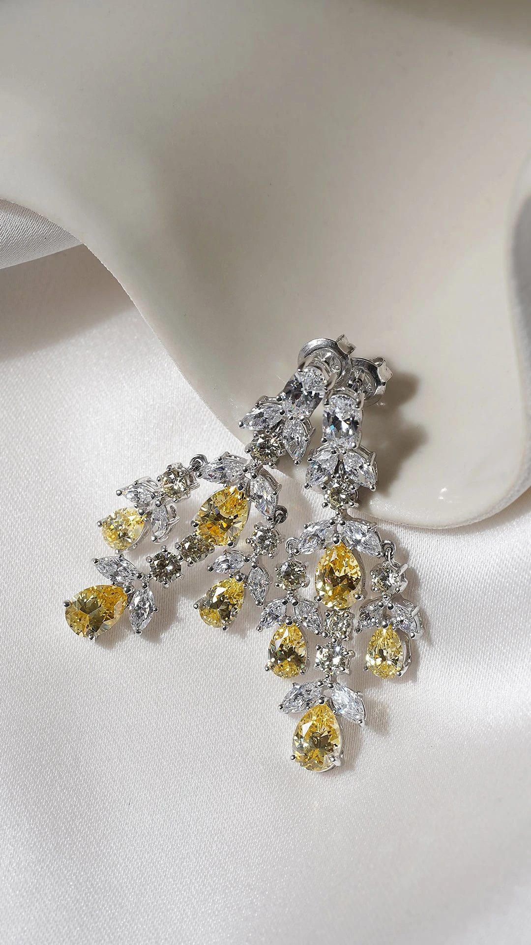 These beautiful chandelier earrings feature a cluster of pears and marquise cut stones with a total drop length of 3.8 cm.