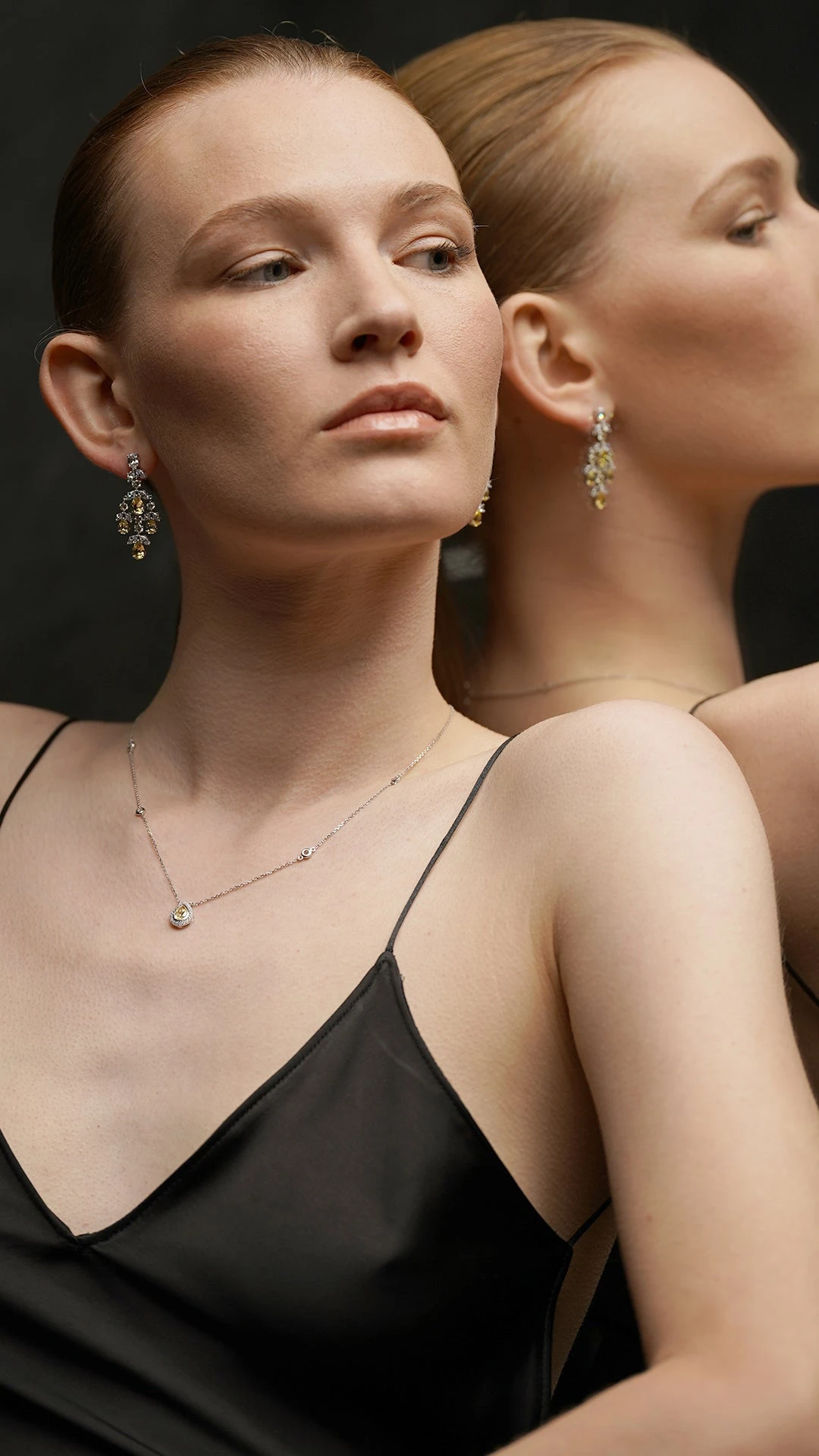 The Aster Earrings are also available in white, sapphire and ruby versions.
