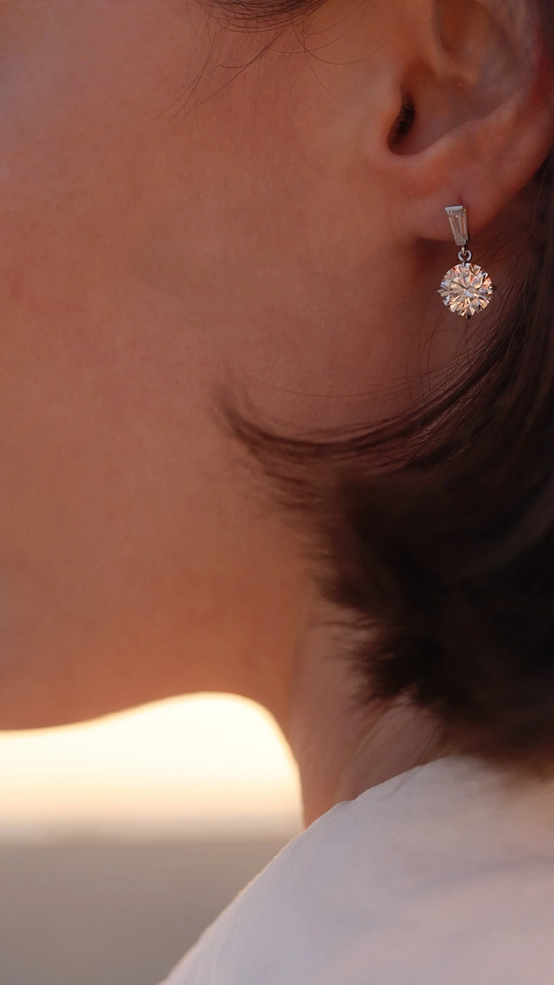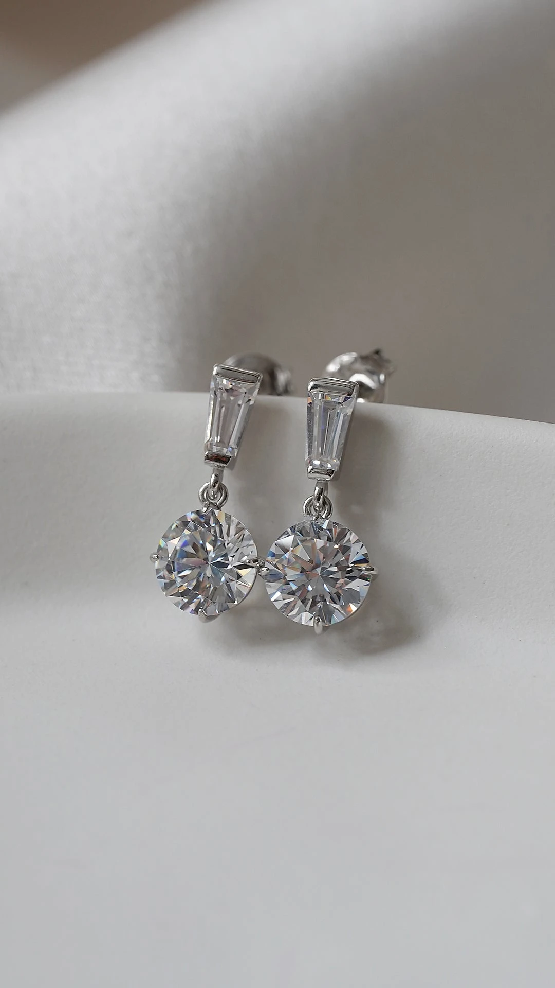 These bestselling drop earrings feature step-cut baguettes and precision-cut round brilliant stones that brilliantly catch the light from all angles. They are a classic for any jewellery collection.