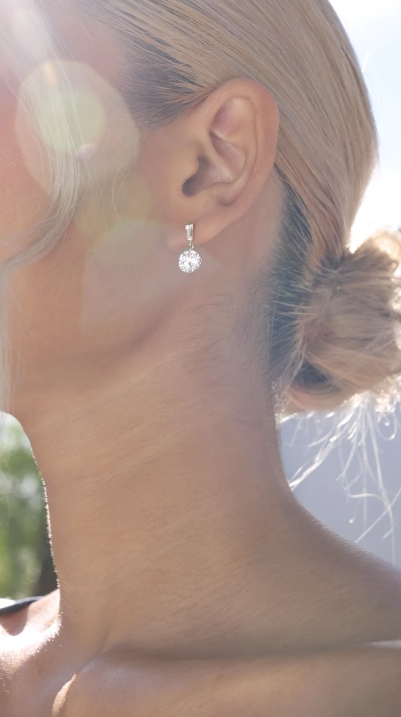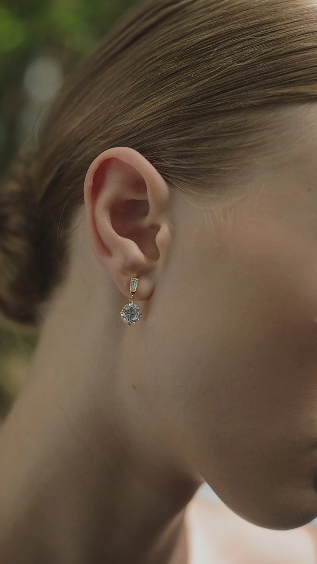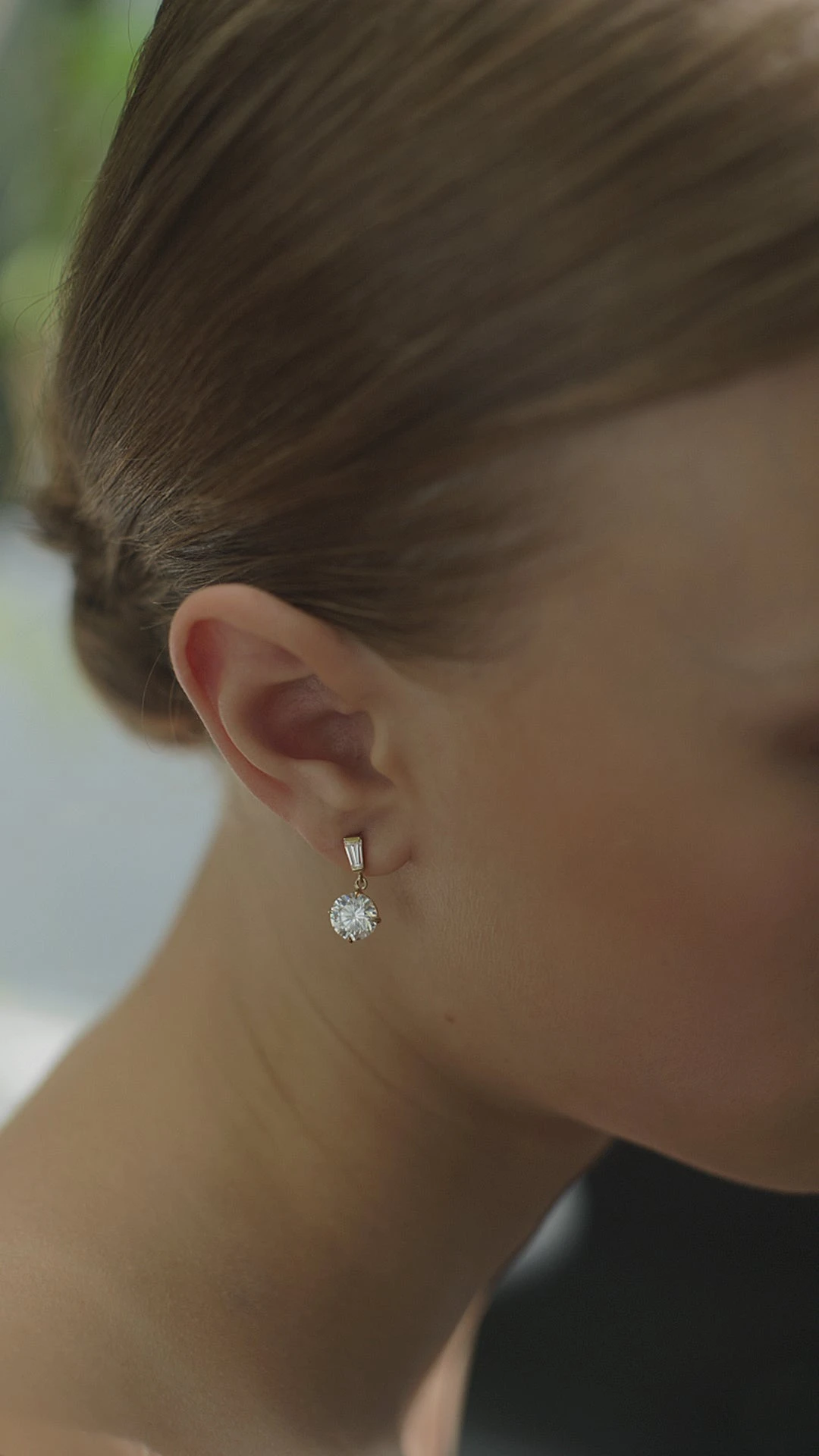 These bestselling drop earrings feature a Baguette stone with a precision-cut Round Brilliant stone that catches the light from all angles. A classic pair that every girl should have in her jewellery collection.