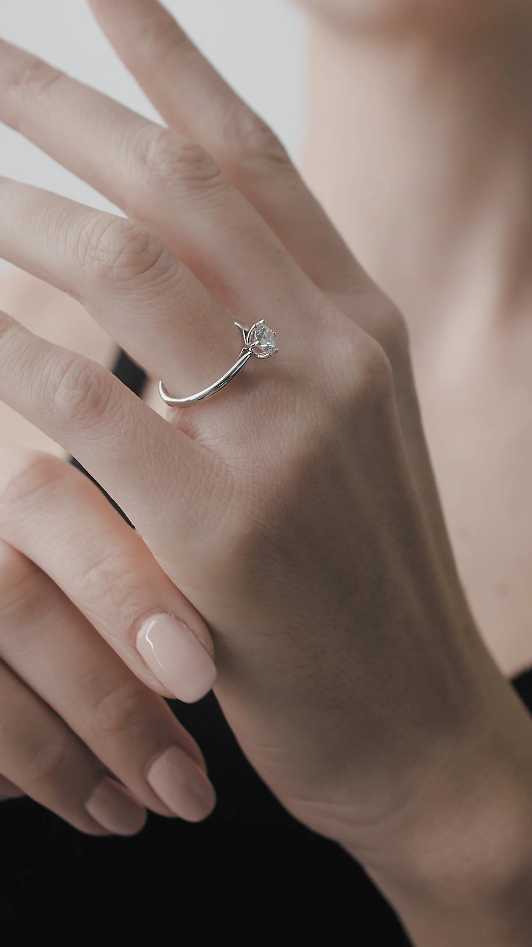 This stunning diamond sits on a polished band in 18K white gold. A timeless option that will win her heart.