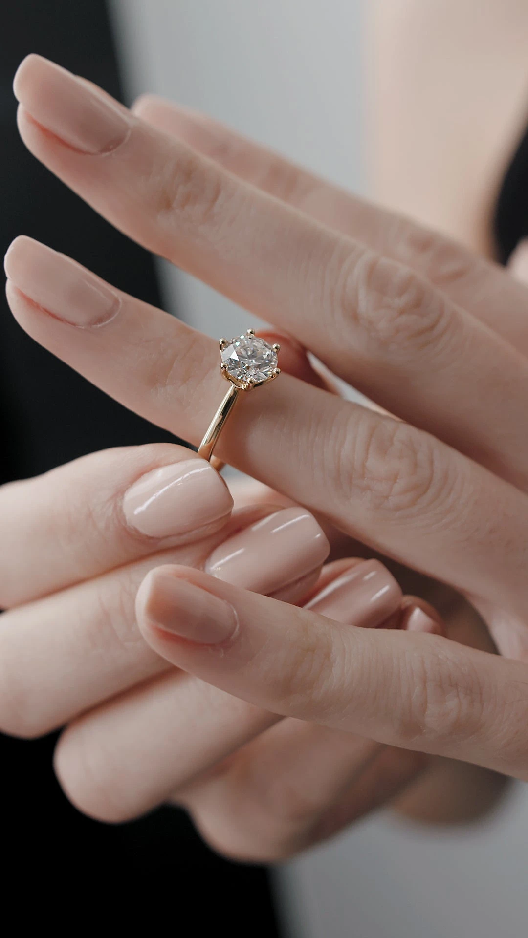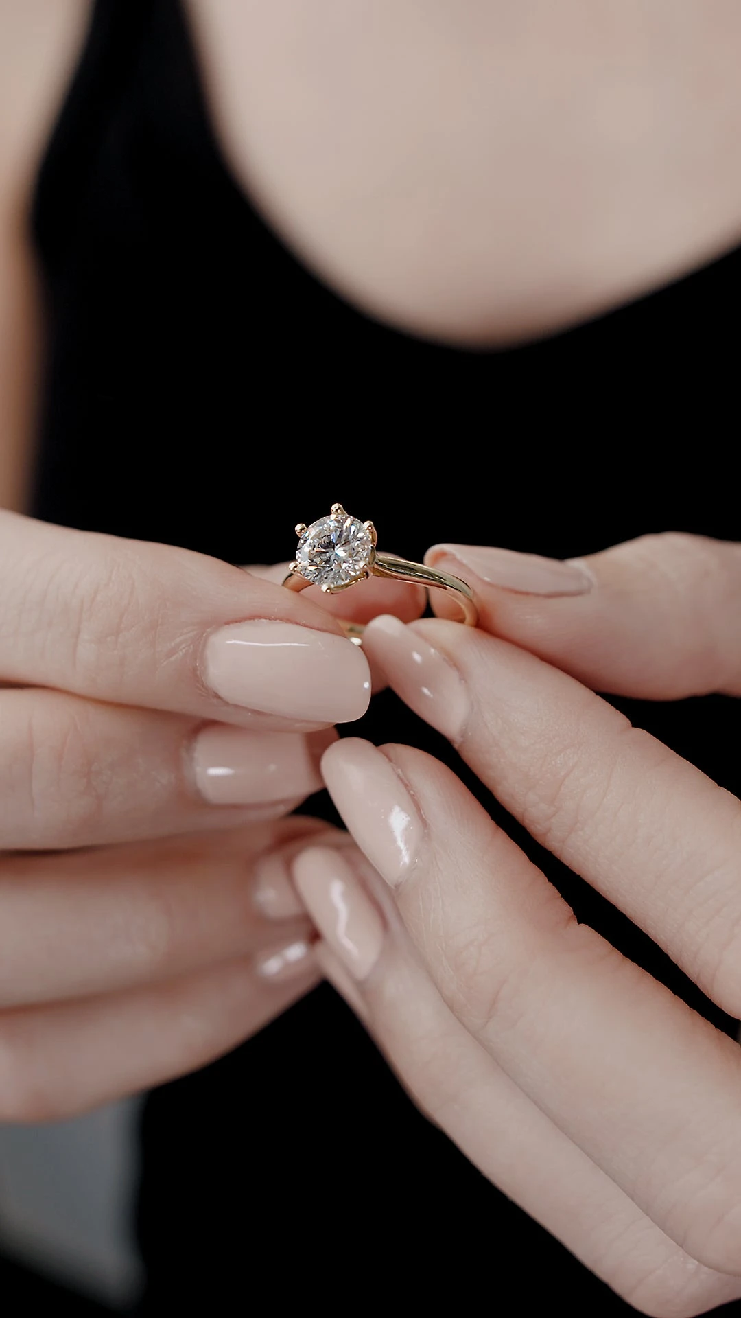 The Augusta ring is the ultimate classic solitaire featuring a beautiful round brilliant diamond set in a 6-prong intertwined basket setting. This stunning diamond sits on a polished band in 18K gold, a timeless option that will win her heart.