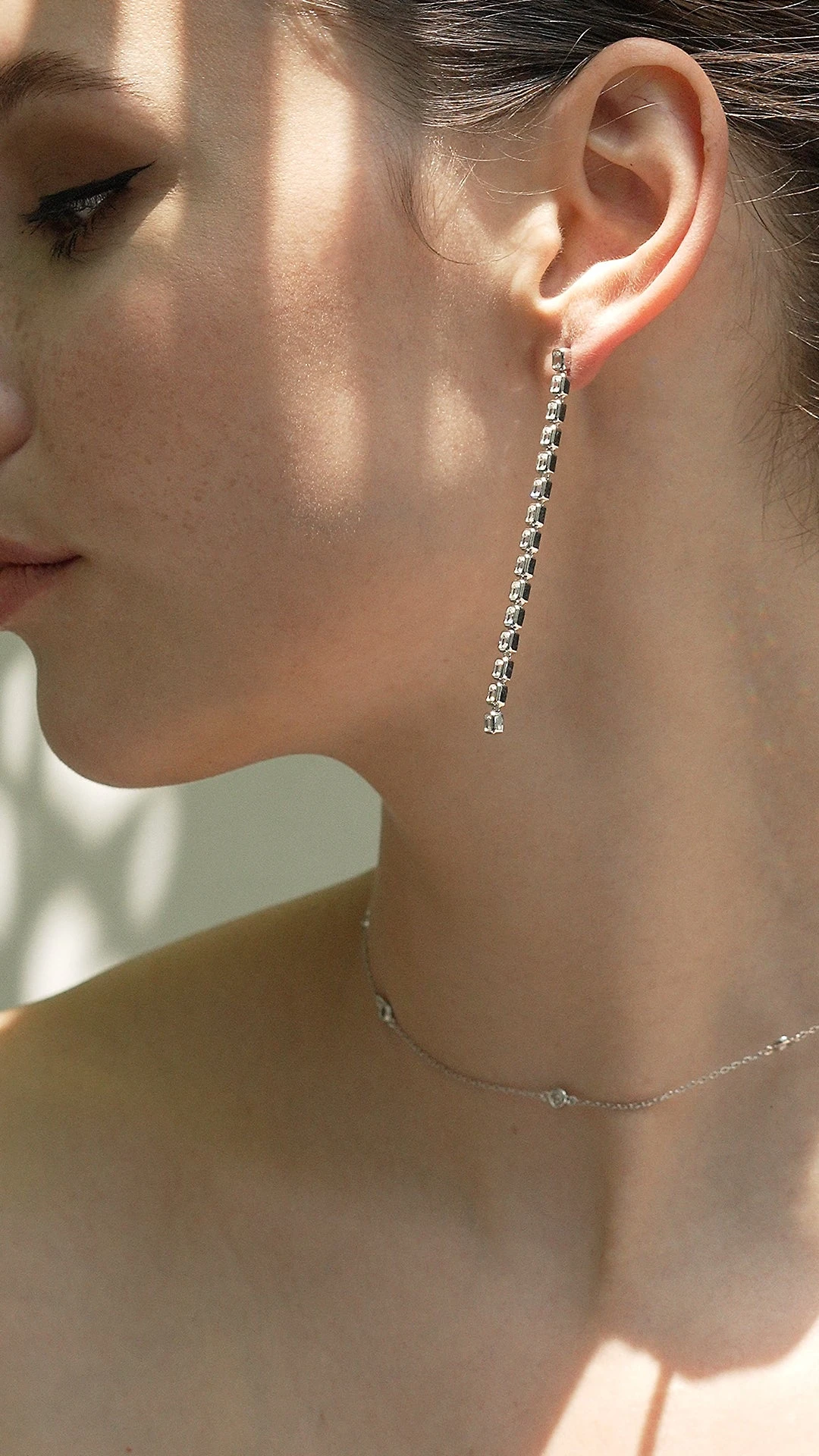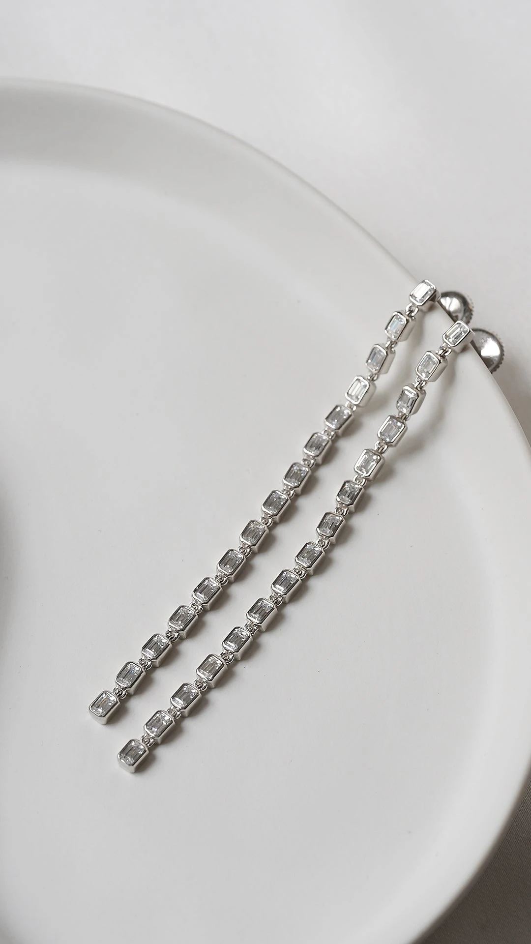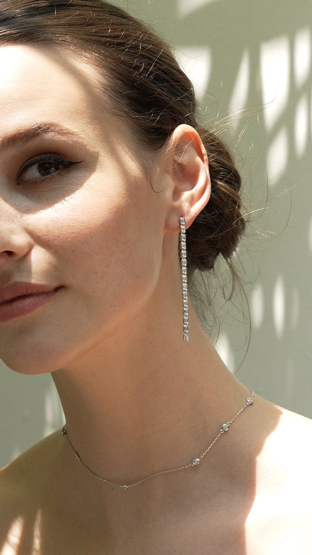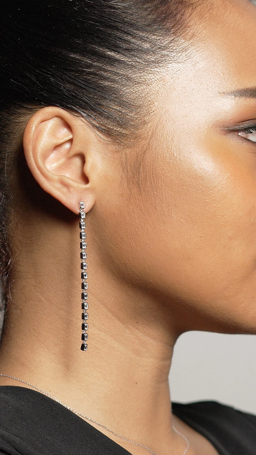 Every girl needs a pair of chic drop earrings. Elegant bezel-set emerald cuts sway with every movement. These earrings are easy to dress up or down.