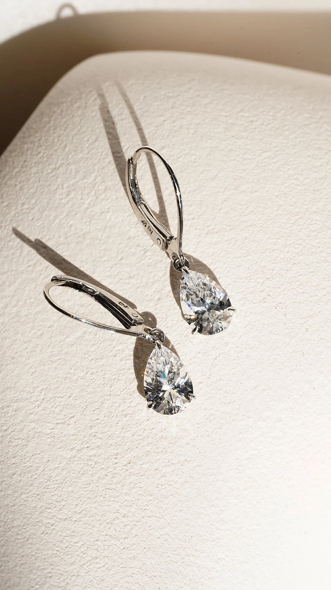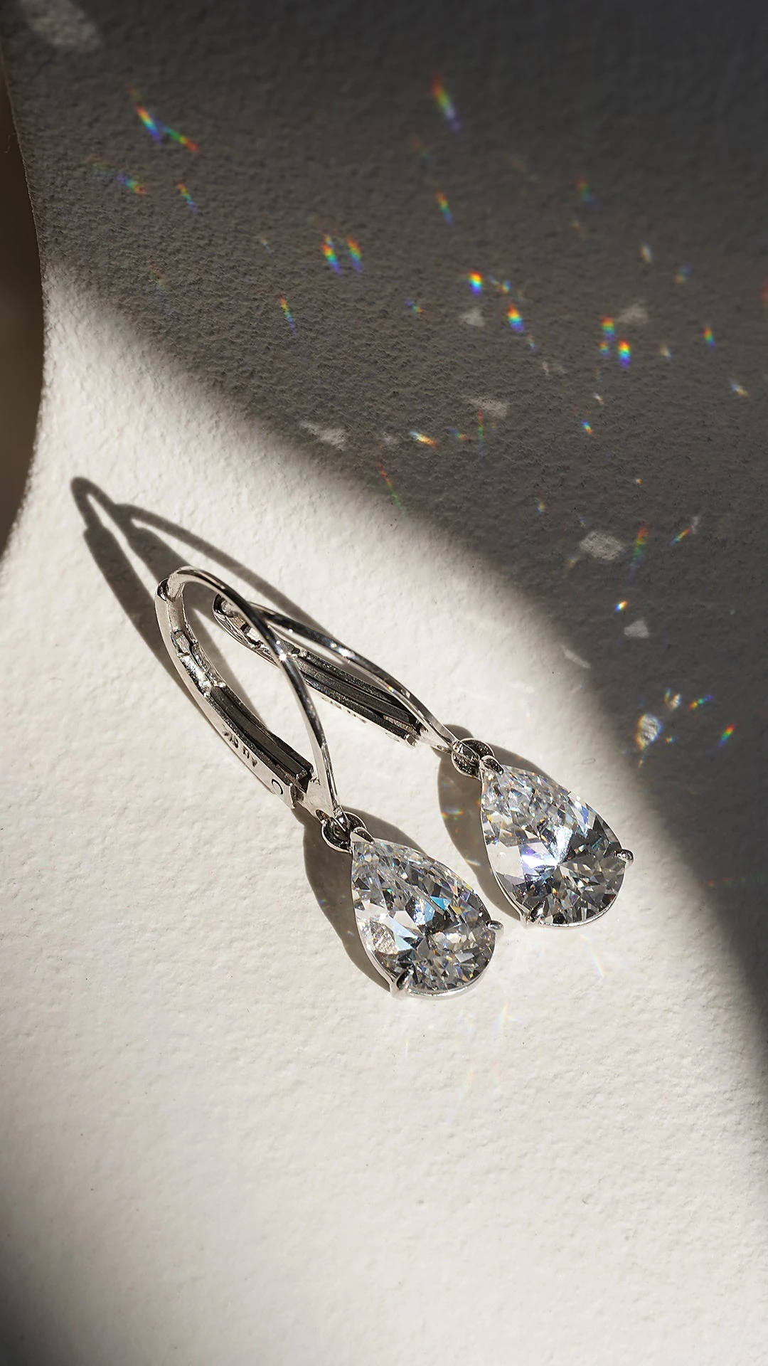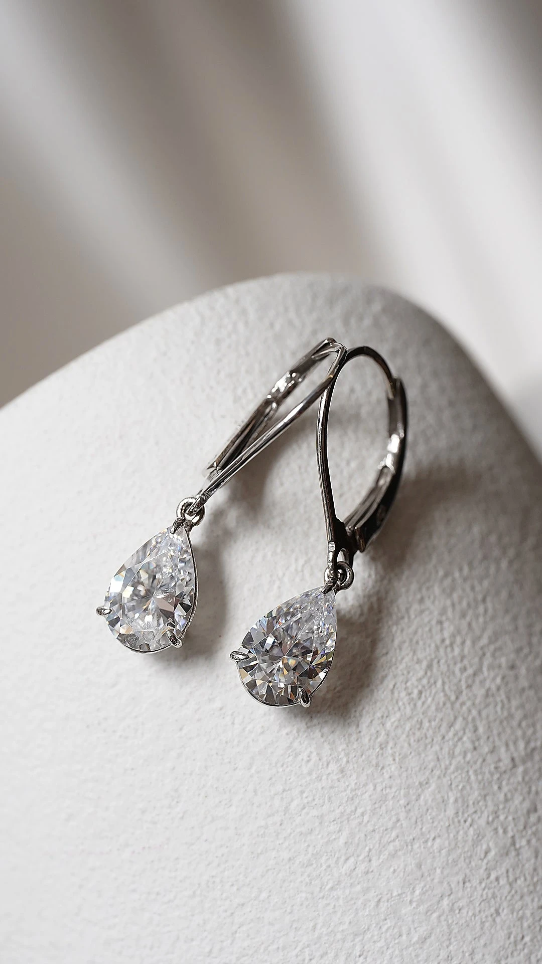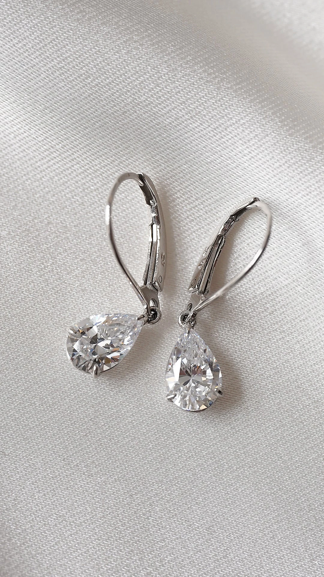 These stunningly elegant, 9K White Gold Drop earrings feature our intricately cut and polished pear-cut stones set on secure leaver system.