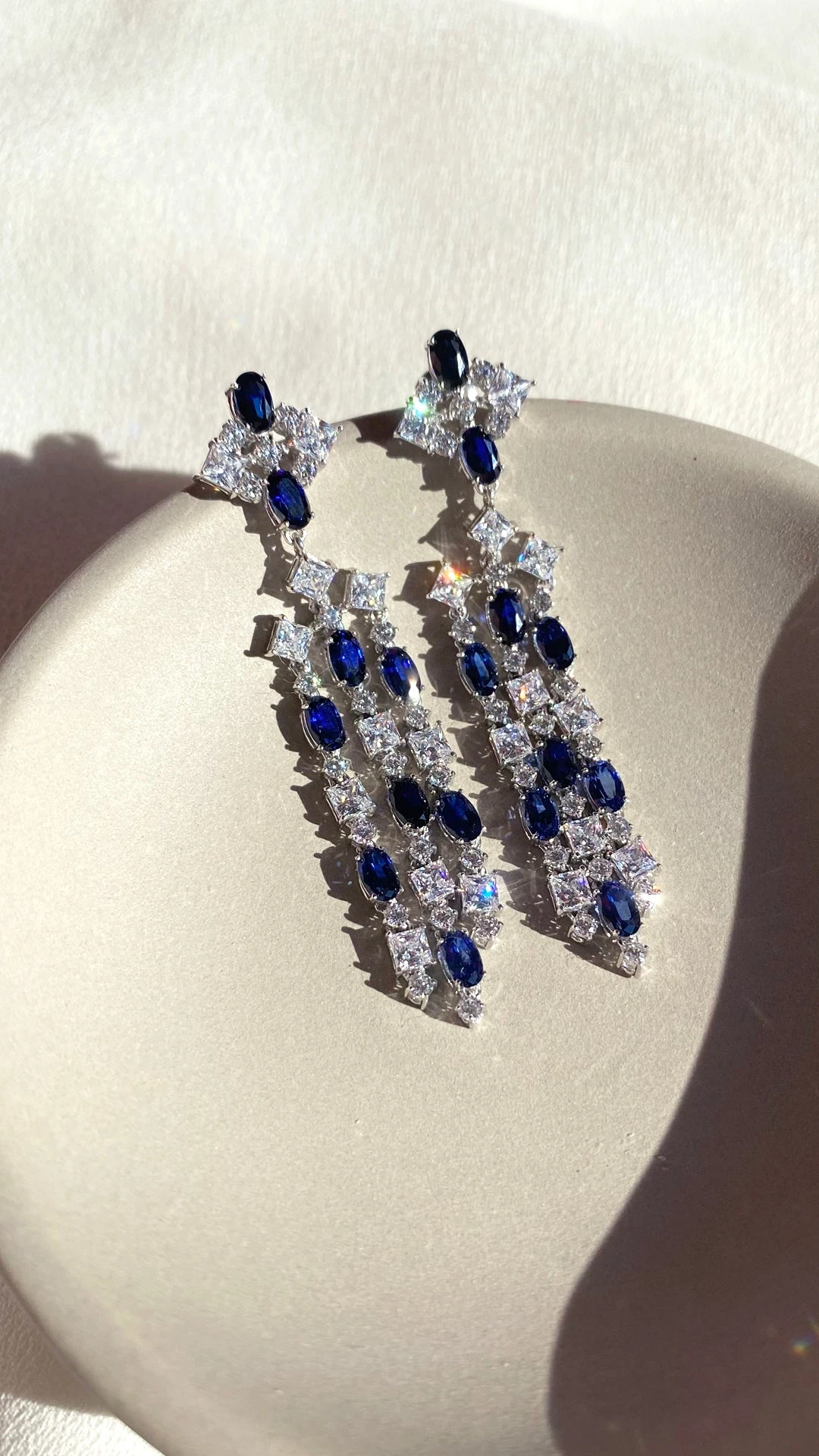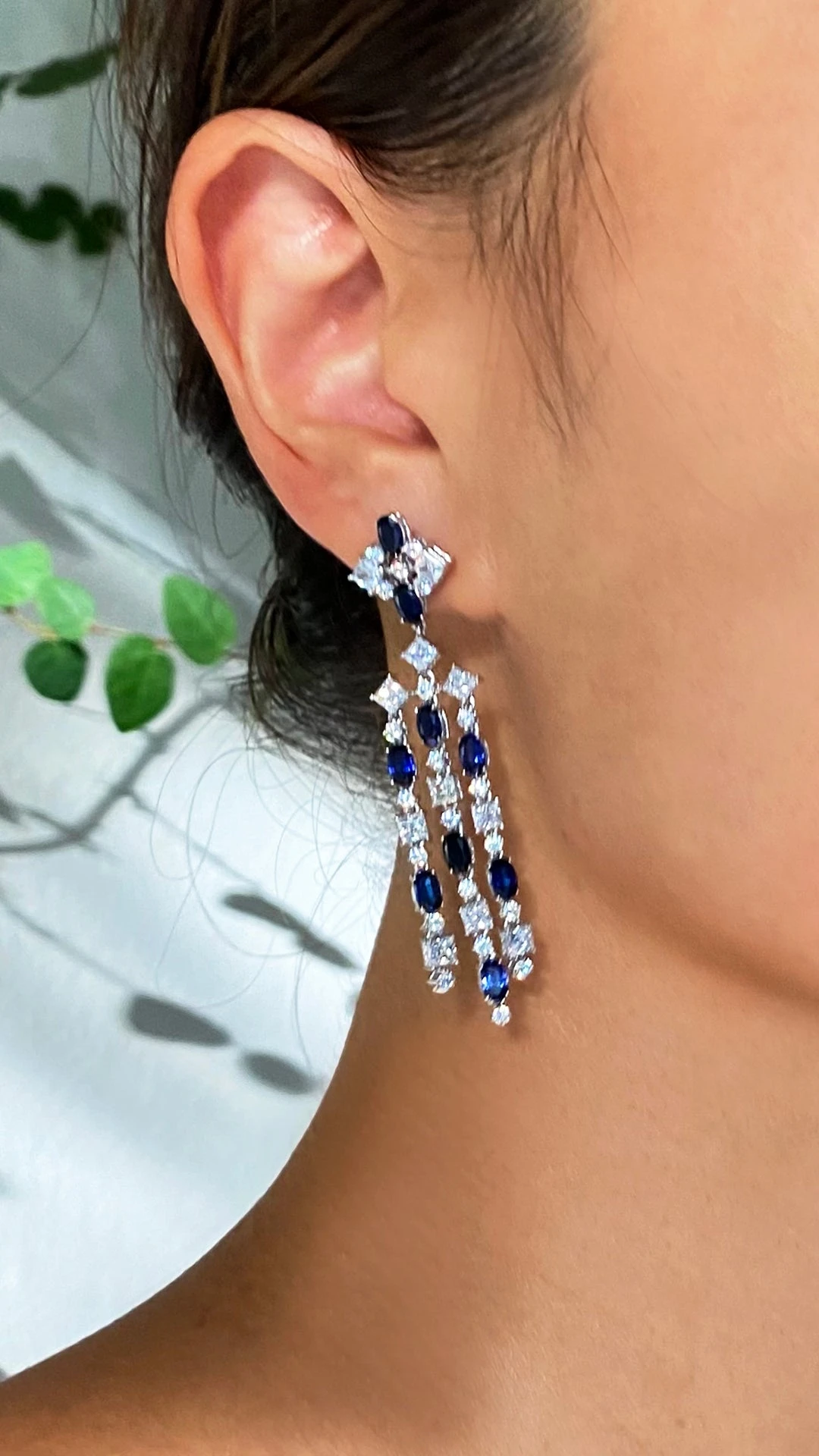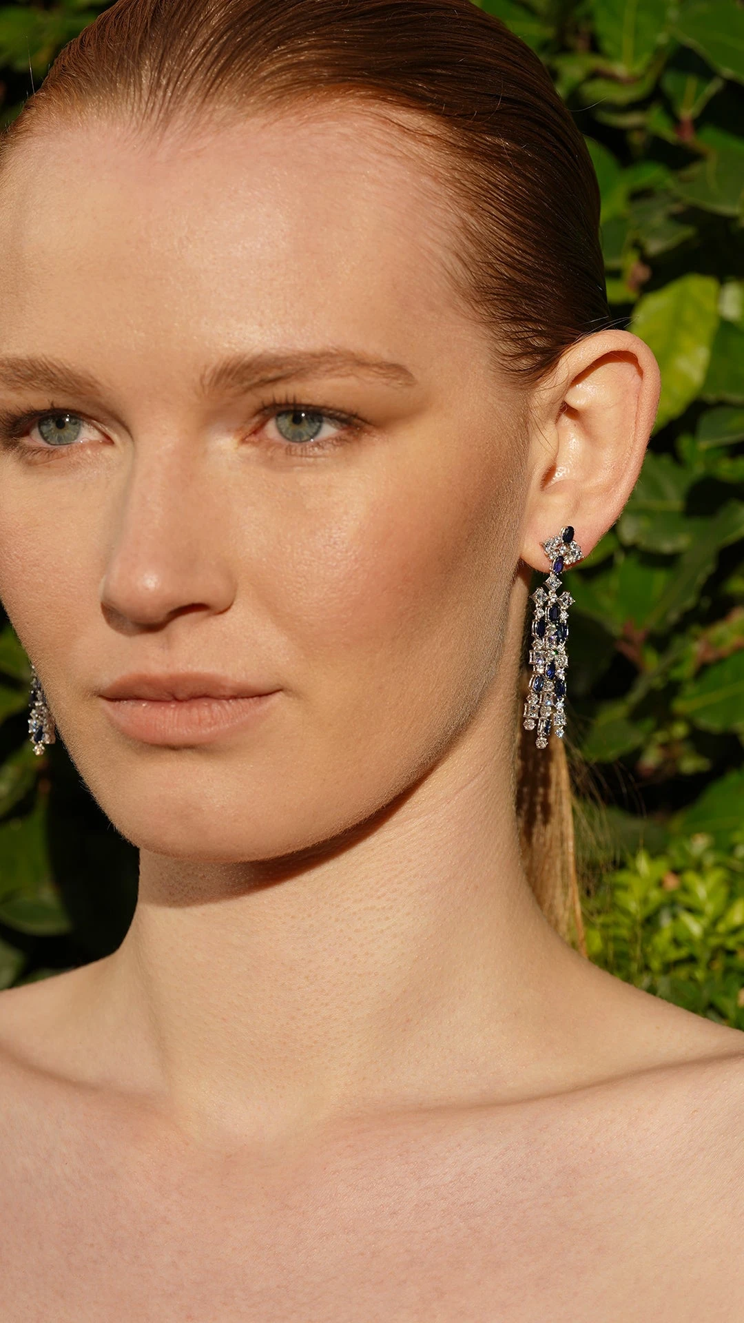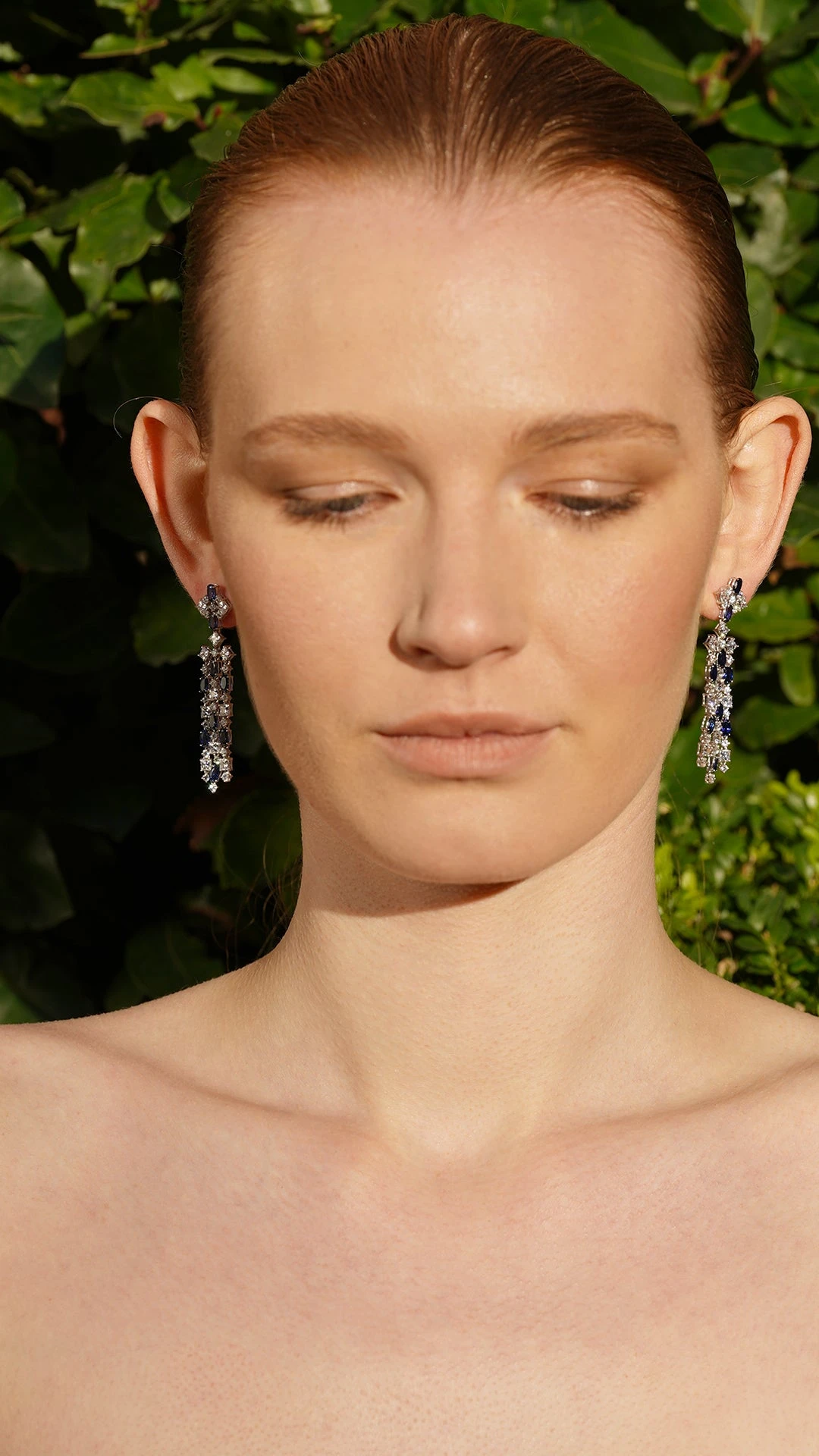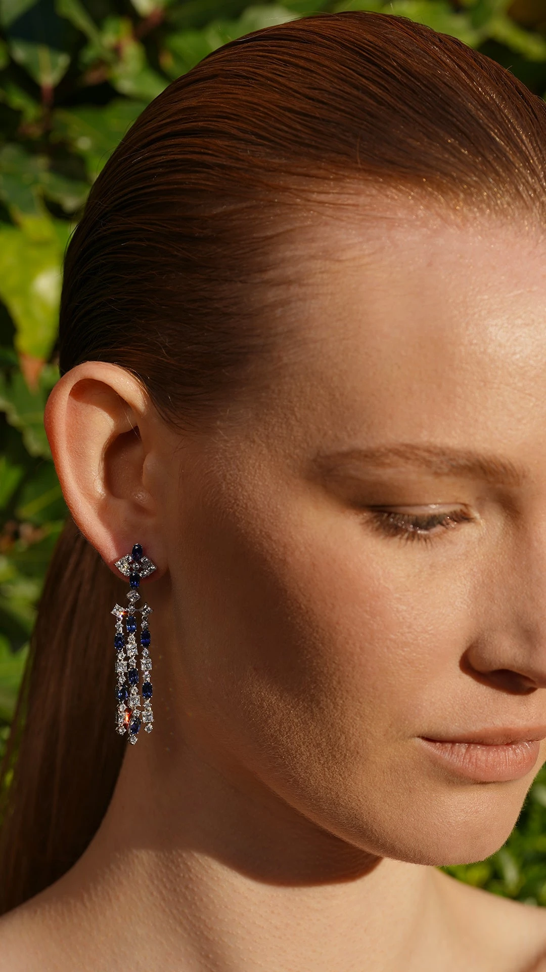 These drops feature a gentle cascade of princess, round, and oval-cut stones. Our master craftsman’s keen attention to detail shines through on each earring, which has a total drop of 3.2 cm when worn. This is a beautiful, decadent pair that will stand out at any occasion.