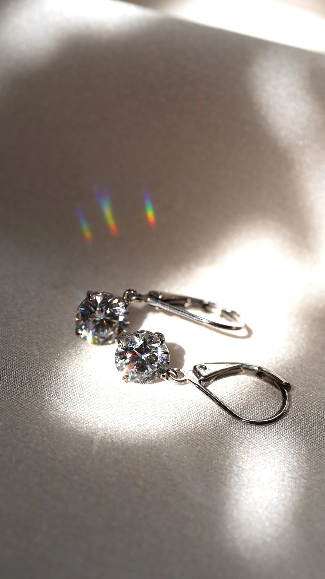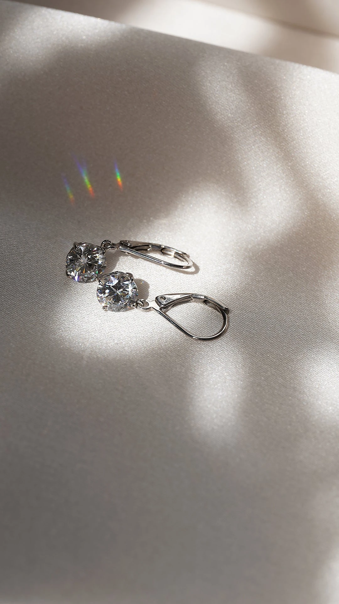 These simple and elegant 9K White Gold Drop earrings feature our exquisitely cut and polished round brilliant stones set on secure euro-back drops. With their clean lines, they are the perfect piece to add a little touch of glamour to your day or evening look.