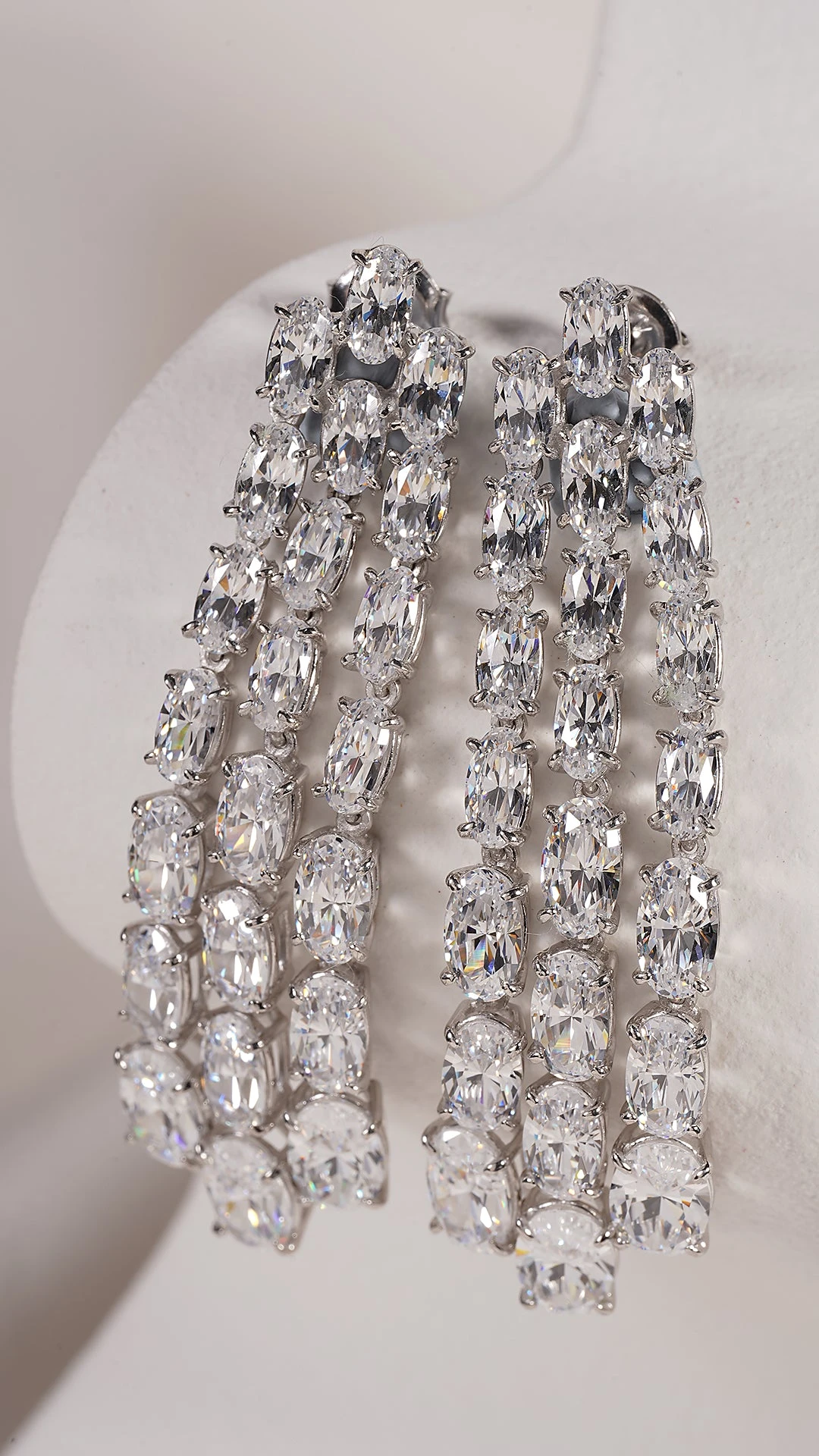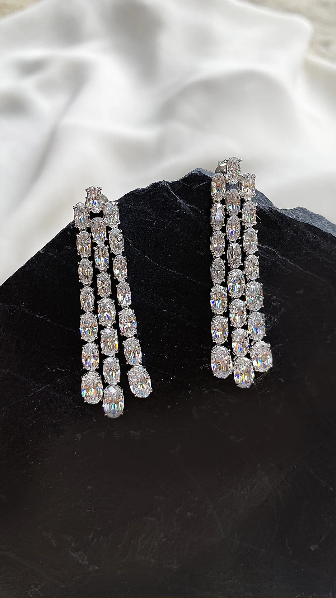 These stunning drop earrings offer a classic yet striking design. Featuring our exquisitely cut and polished oval cut stones set on 3 separate strands, this provides the perfect amount of movement to give the ultimate sparkle.