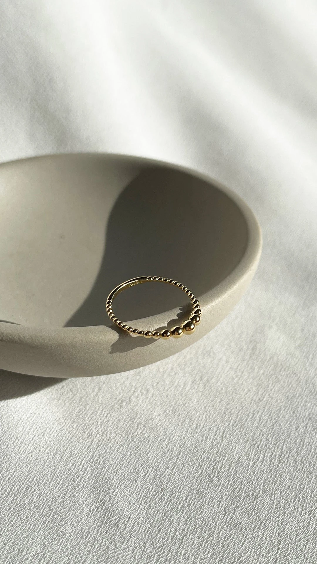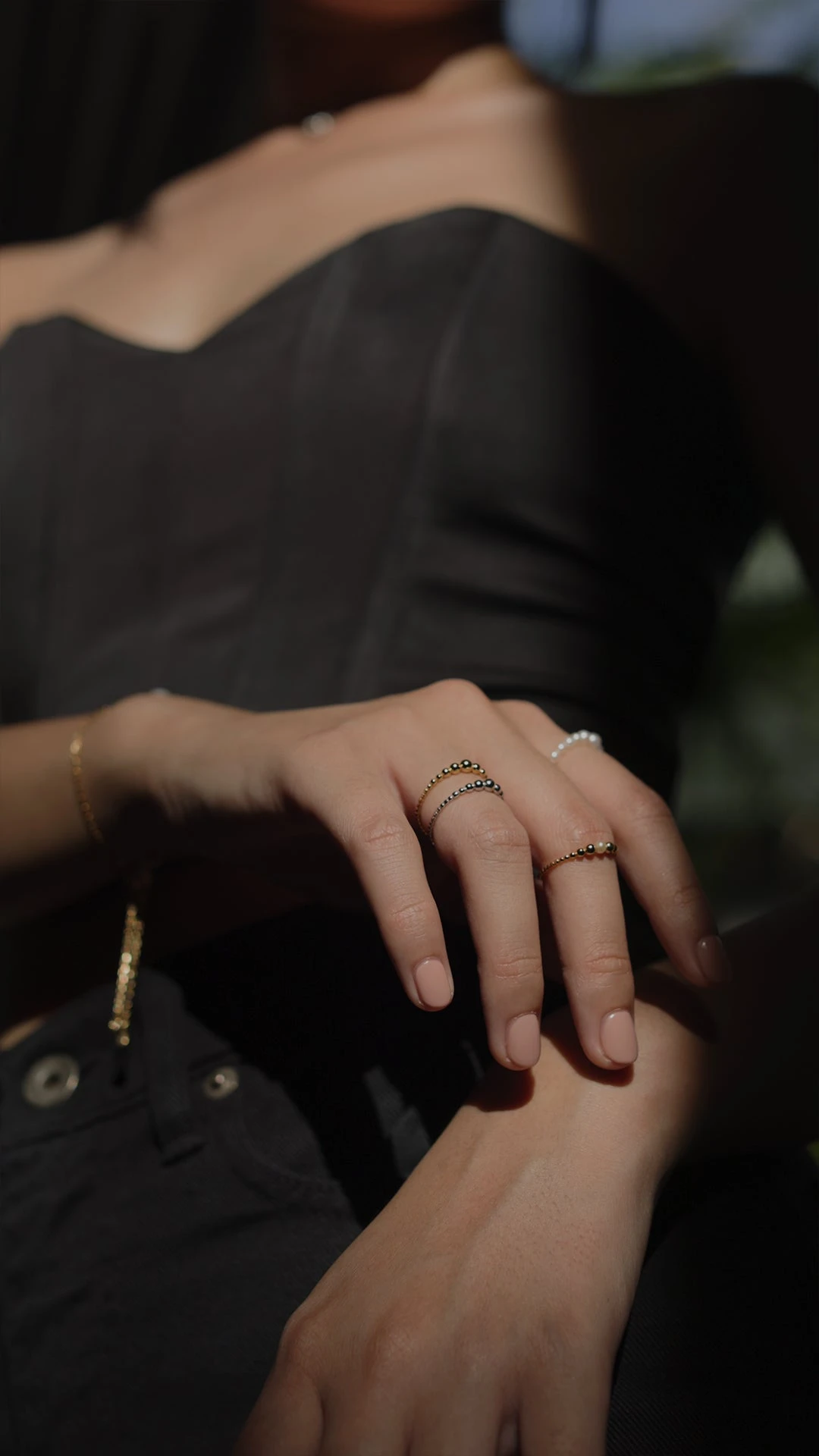The Cady Bead Ring is a simple everyday ring. Easy to stack and style. Let this ring be a part of your everyday uniform. Also available in White Gold Finish.