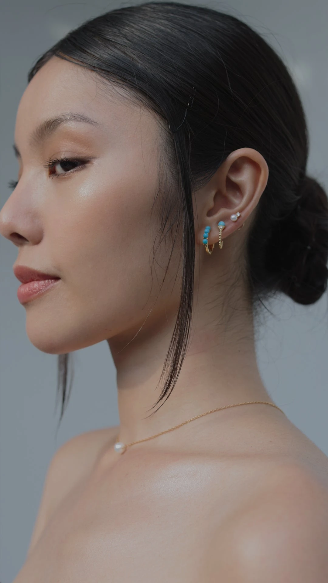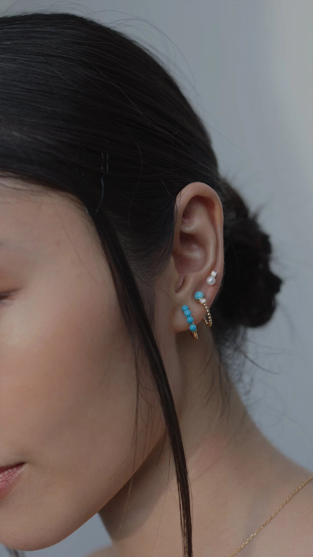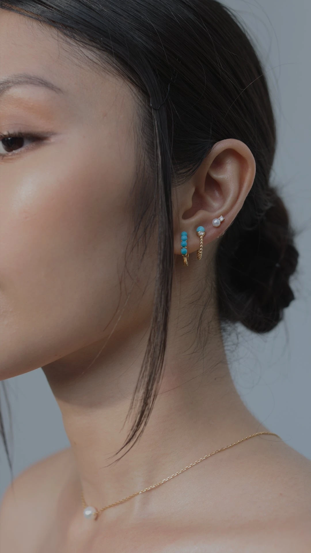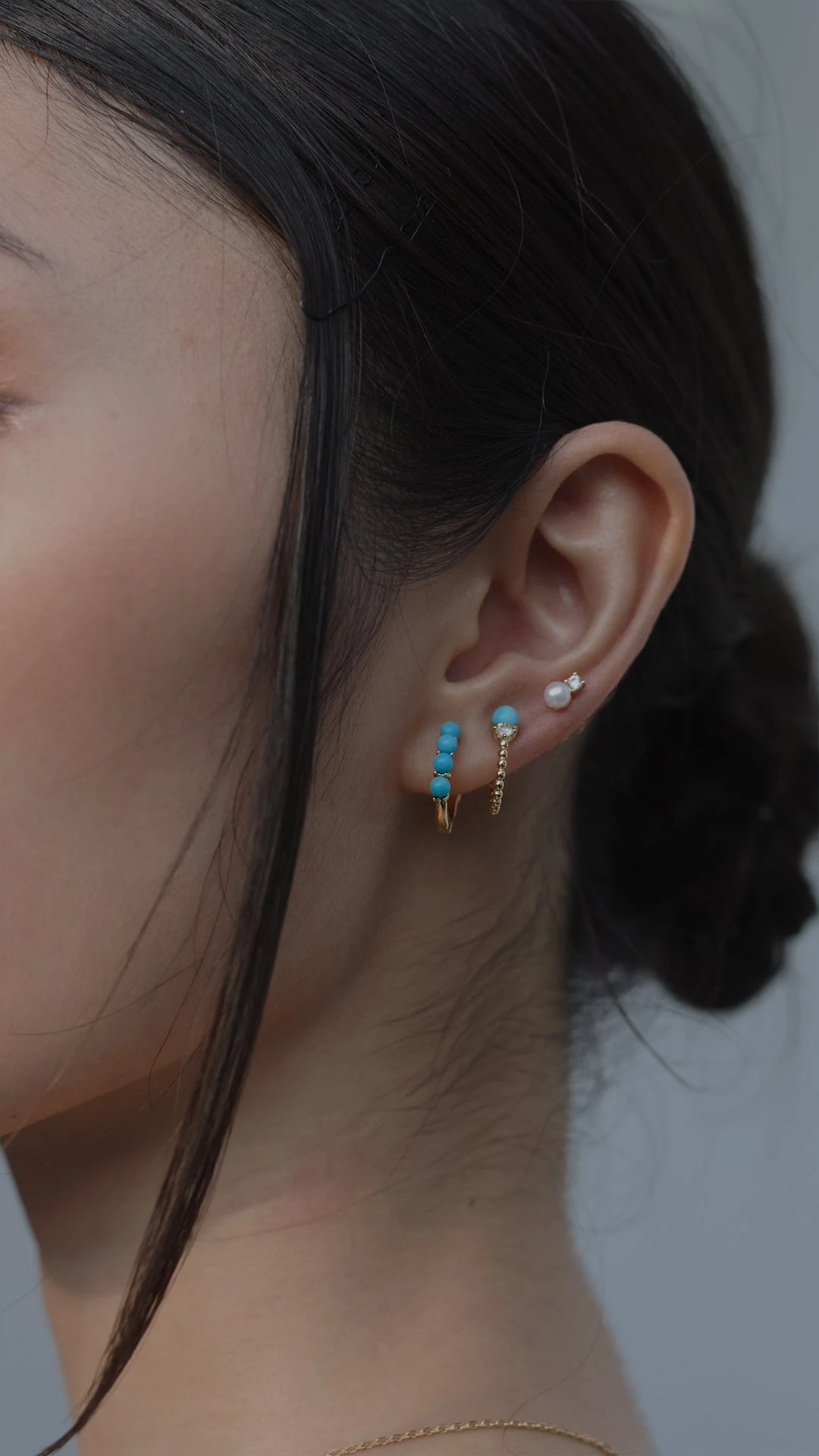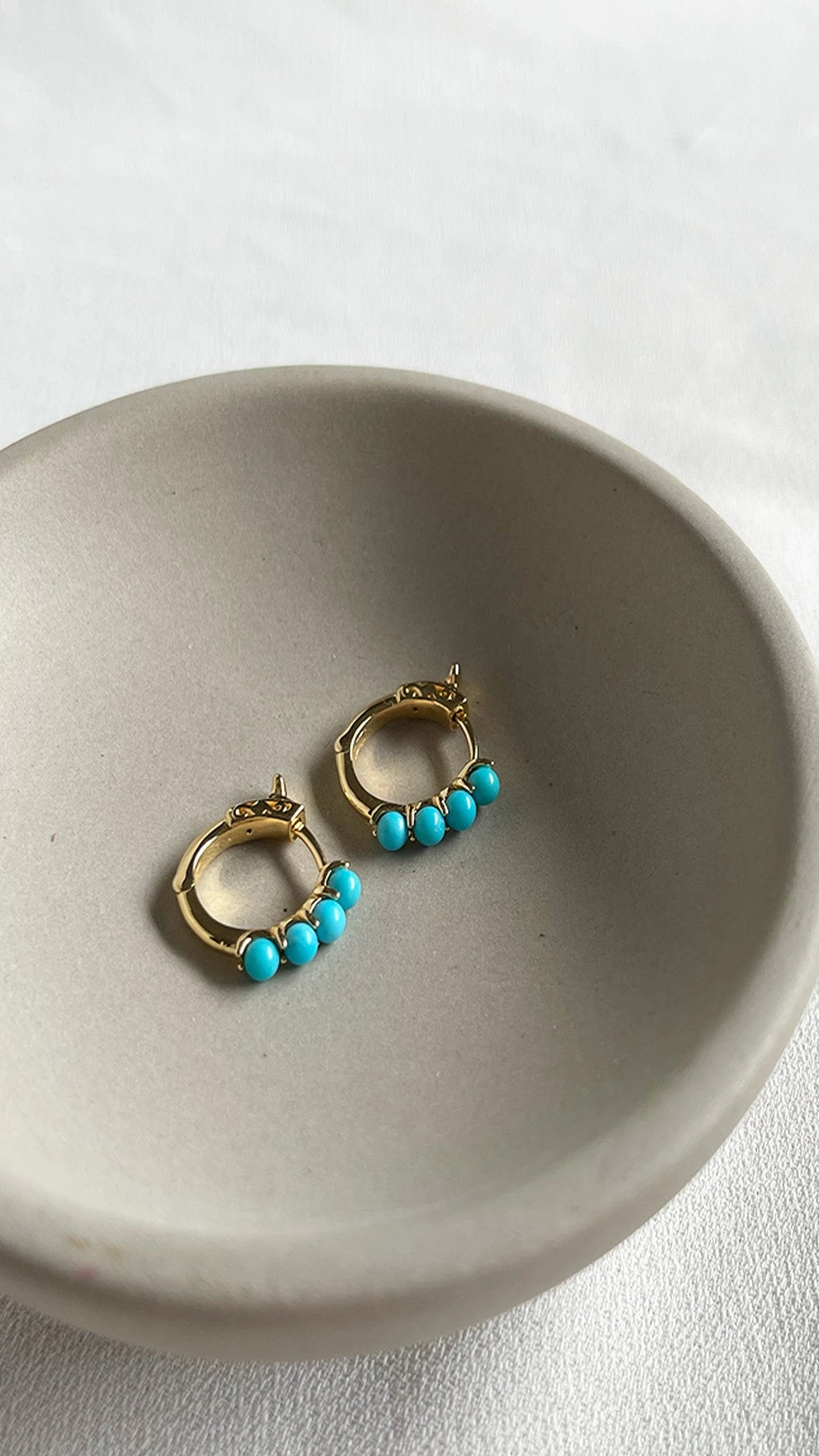 An everyday small hoop comprised of elegant turquoise beads finished in yellow gold vermeil. Wear solo or pair with other pieces from the Cady collection for a full ear stack.