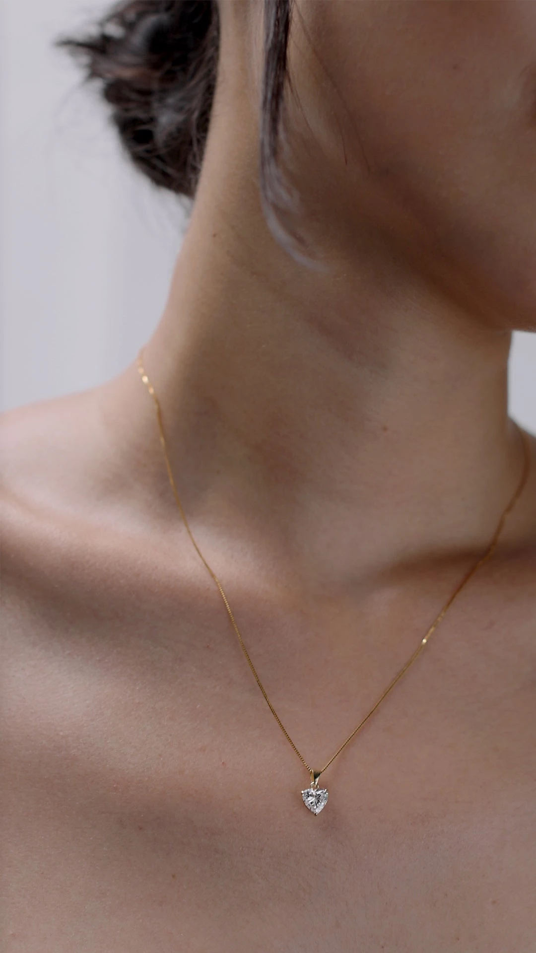 This pendant features our Heart-shaped cut stone. Our attention to detail ensures that the removed section is also hand-polished for maximum brilliance.