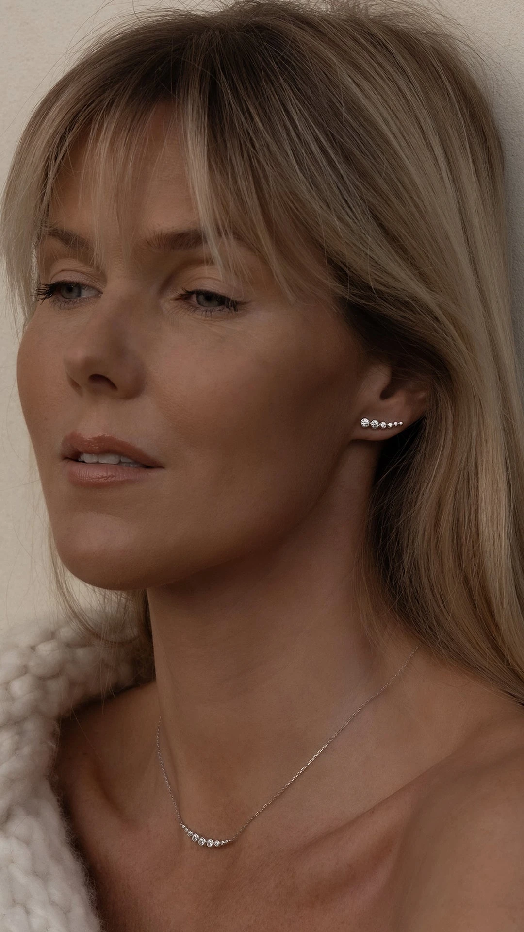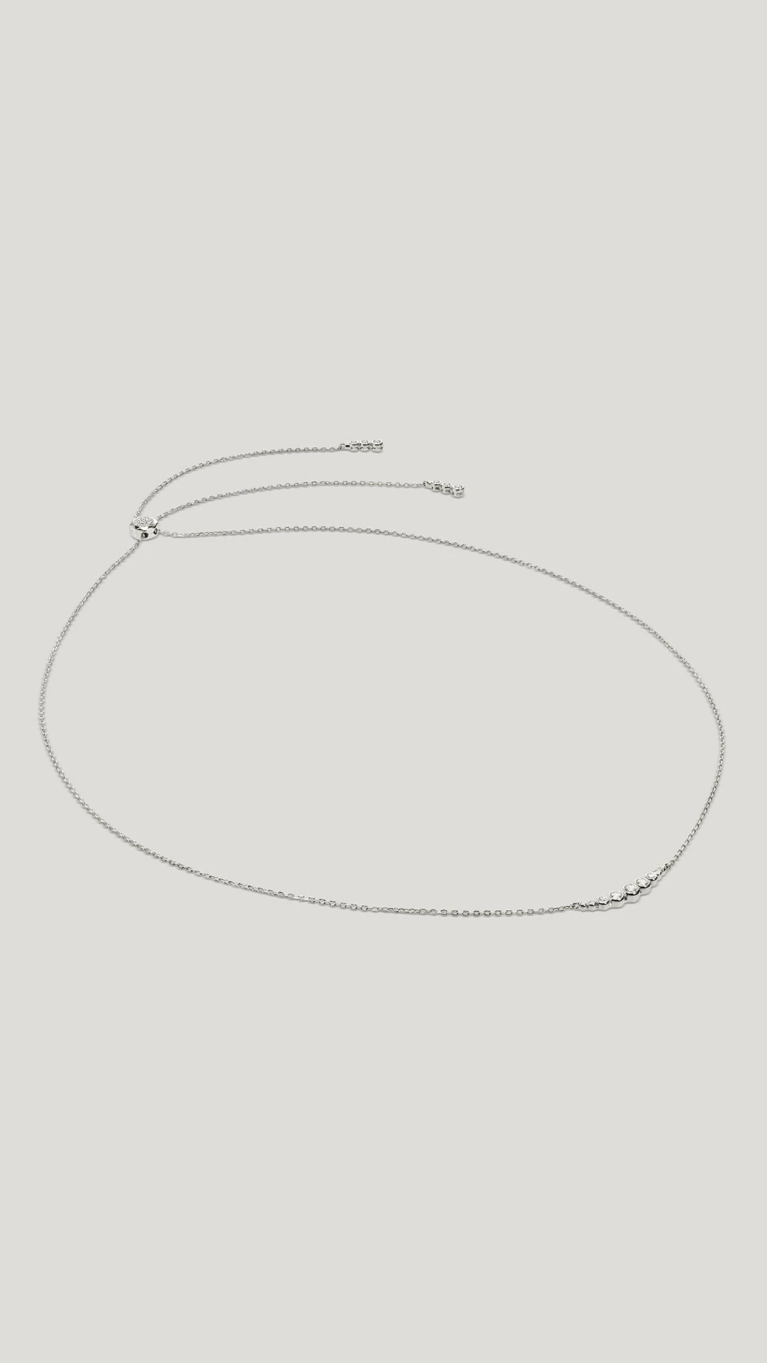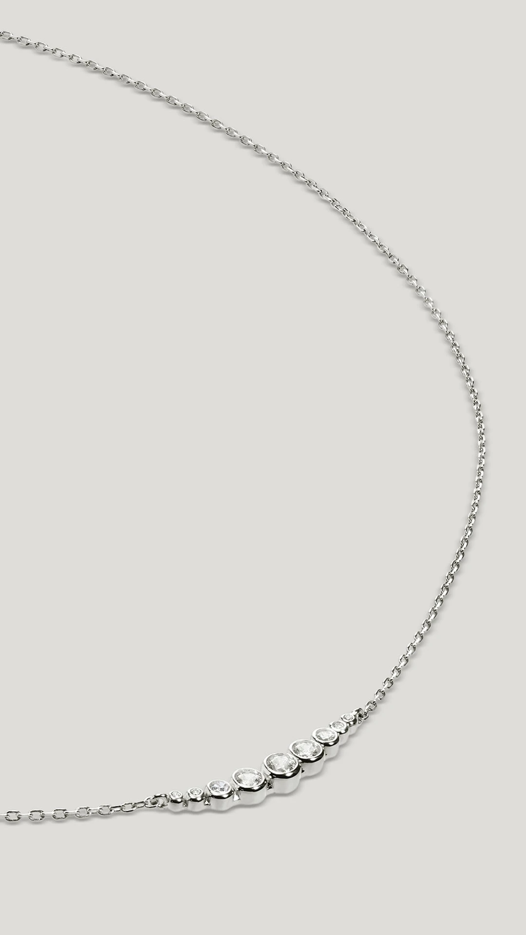 The Carissa necklace features an understated row of graduated round brilliant stones that shine beautifully. Complete with a slider closure, it can be worn at a length that suits you. Wear it solo with a lower neckline or stack it with other pendants for a stylish, layered look.