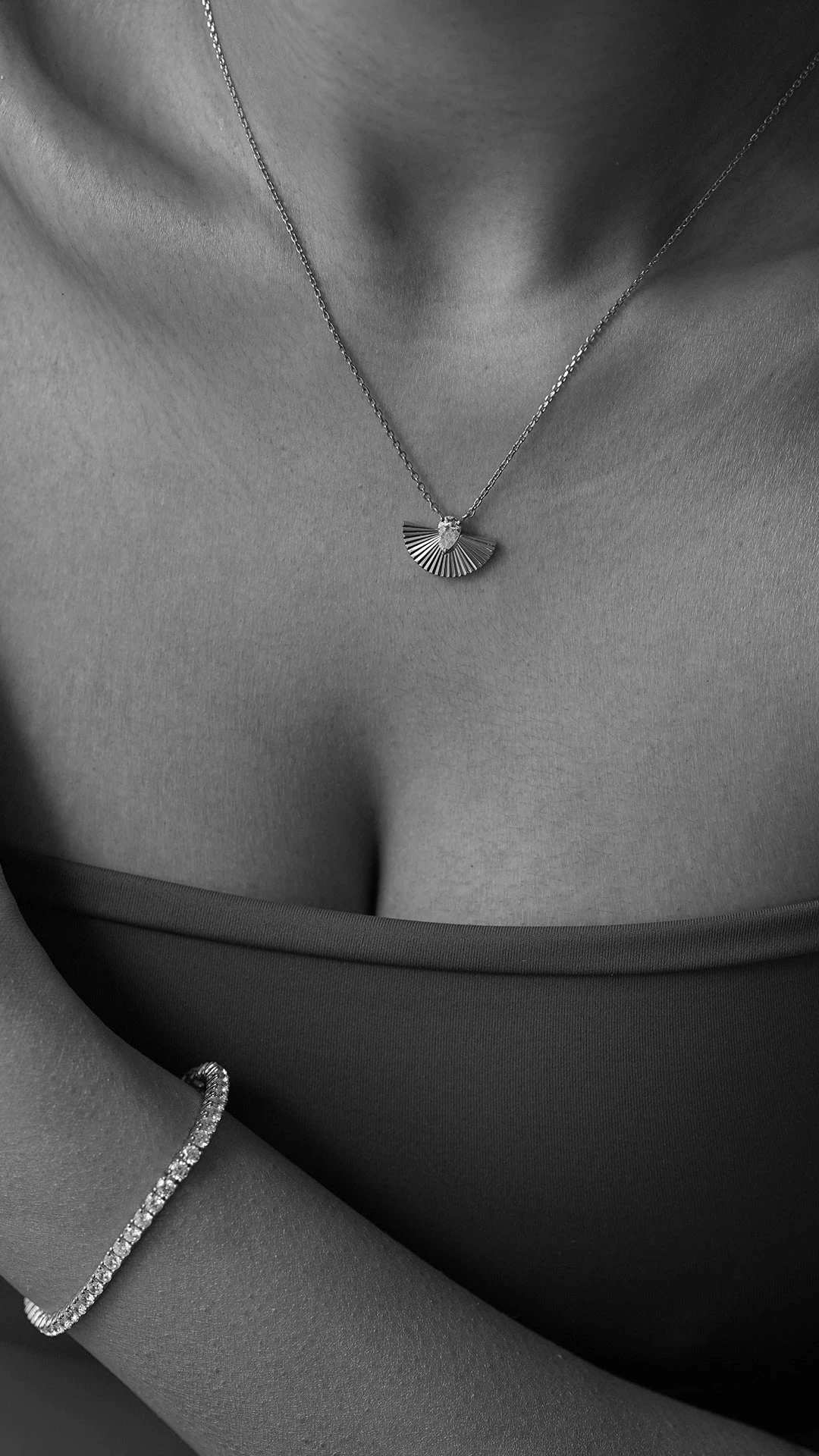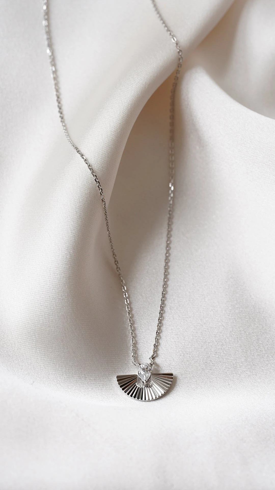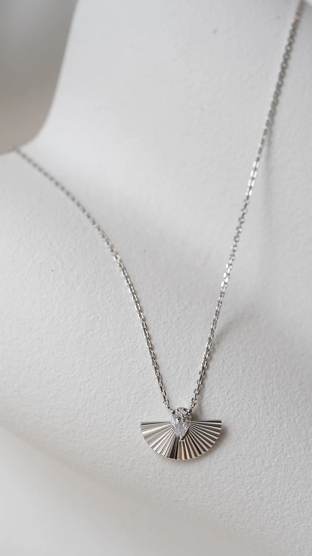 This stunning pendant features our striking pleated ridge fan silhouette. Articulated to capture the light with every movement, you are guaranteed to receive compliments—a perfect day-to-night piece to wear to your next brunch or after-hours engagement.