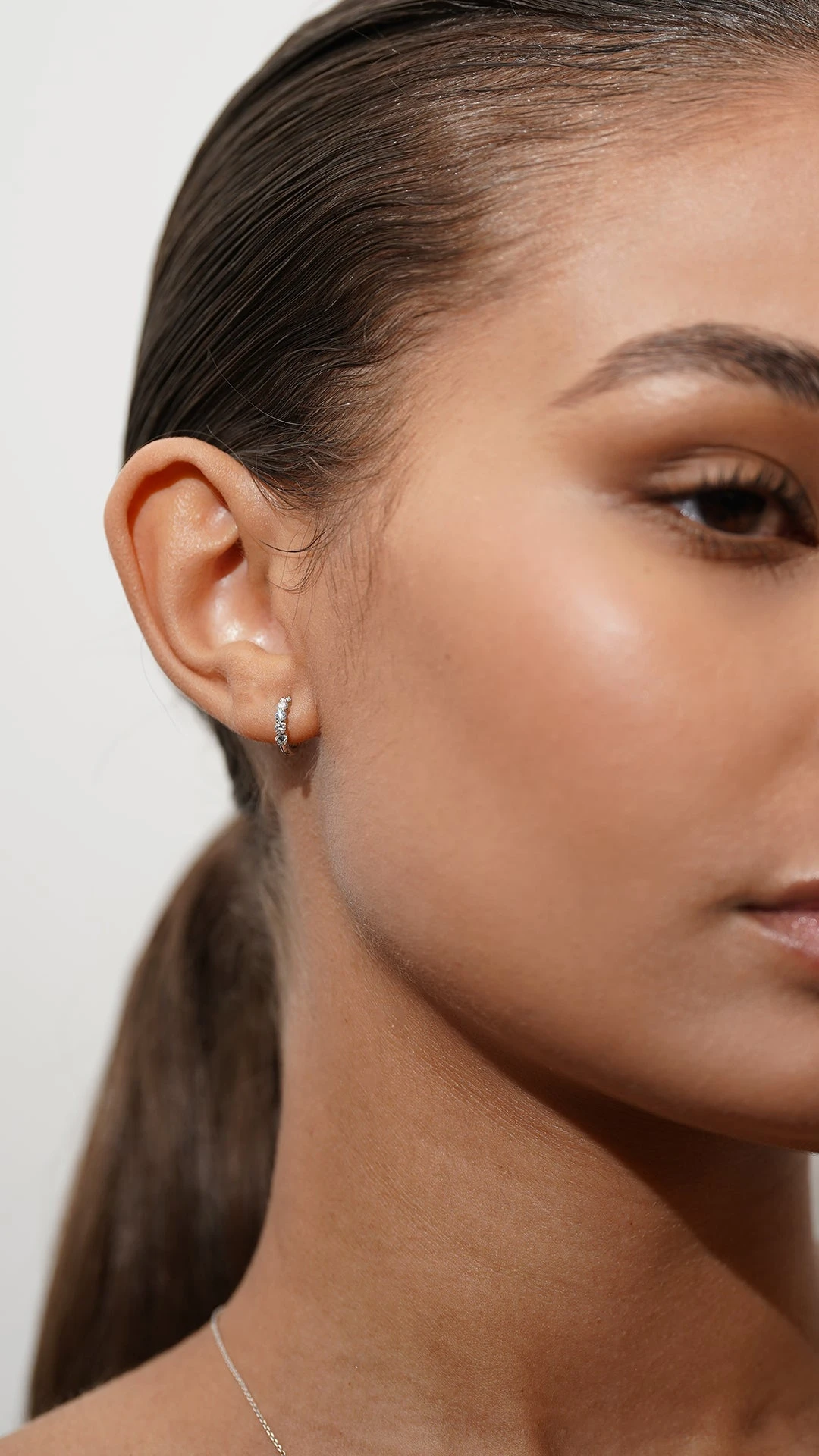 Our favourite huggie hoop earrings. Chunky but still dainty. A classic huggie comprised of 0.17 carats of dainty diamond in our 9K White gold setting.