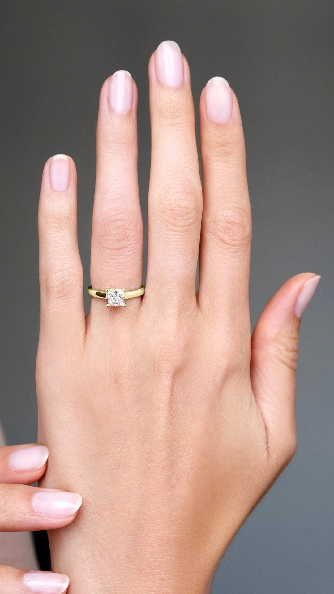 A true classic beauty, the simple design of this solitaire ring puts your princess cut diamond well and truly centre stage. The perfect choice of engagement ring for a lady who adores simplicity and sparkle. Beautifully crafted in shining 18K yellow gold, the stone is held in a contemporary four claw setting to show its sparkle off at its very best.