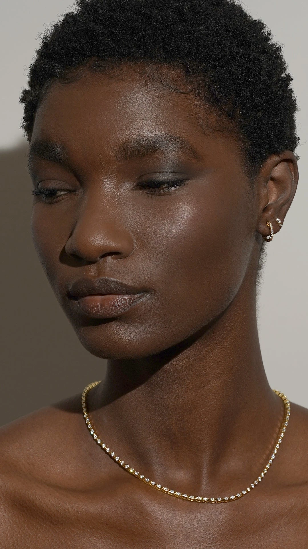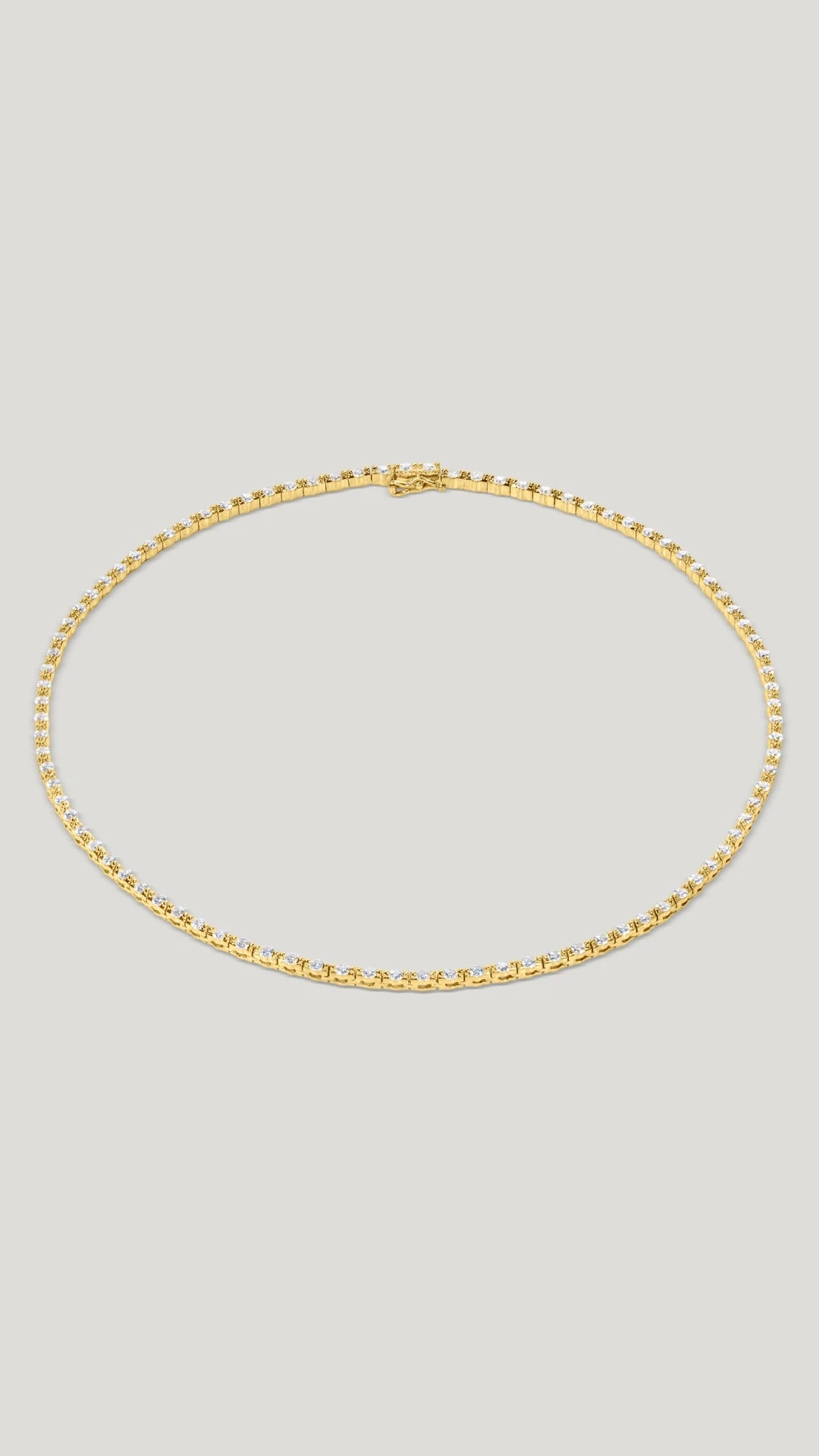 Perfect for day or night, this elegant and eye-catching necklace features beautifully set Round Brilliant cut stones set in Gold Vermeil. The perfect amount of sparkle to elevate your look, pair it with a set of drop earrings to complete the look.