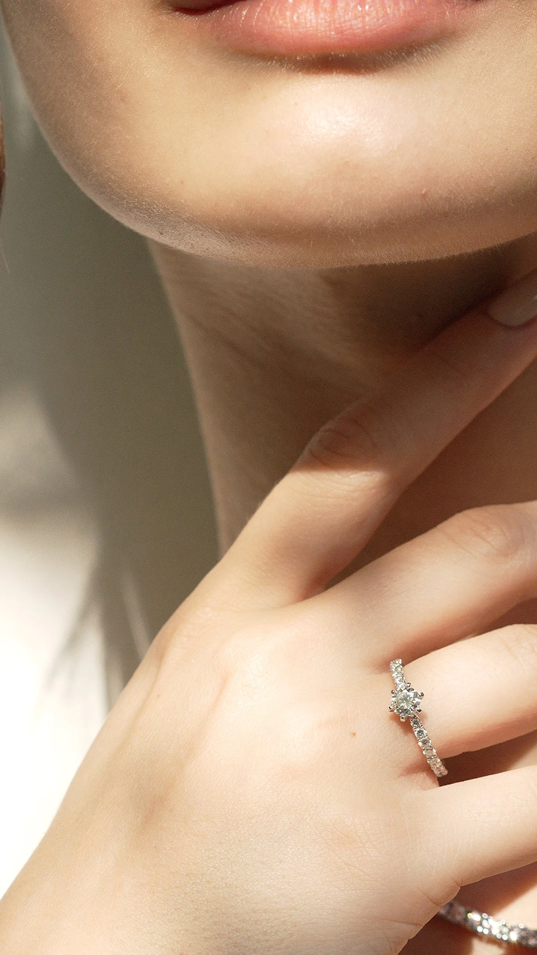 This ring is comprised of a stunning round brilliant diamond that sparkles from every angle, enhanced further by diamond microsettings on the band. Handcrafted in a secure six prong setting and placed on a polished 18K white gold band. Let this be the ring she will cherish forever.