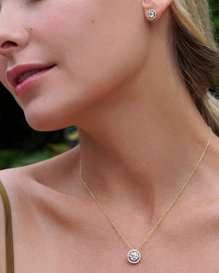 This beautiful 0.70ct round brilliant GENTLE DIAMOND solitaire is showcased in a classic halo setting allowing for maximum light reflection. The pendant is strung from a delicate 18K yellow gold chain with slider mechanism up to 45cm length. Wear it solo to add a touch of classic elegance to your look.