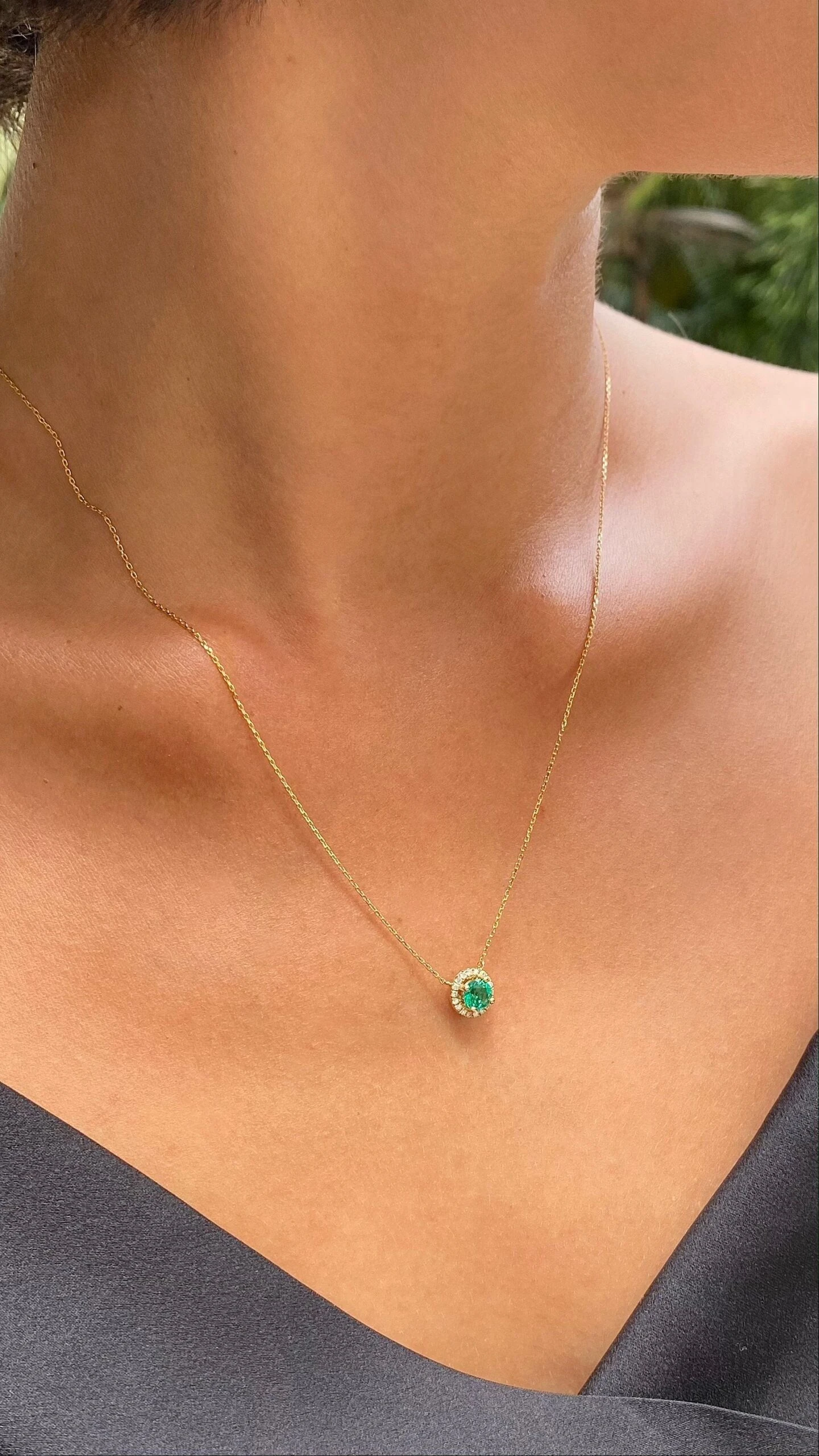 This beautiful round brilliant gemstone solitaire is showcased in a classic halo setting allowing for maximum light reflection. The pendant is strung from a delicate 18K gold chain with slider mechanism up to 45cm length. Wear it solo to add a touch of classic elegance to your look.