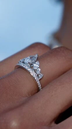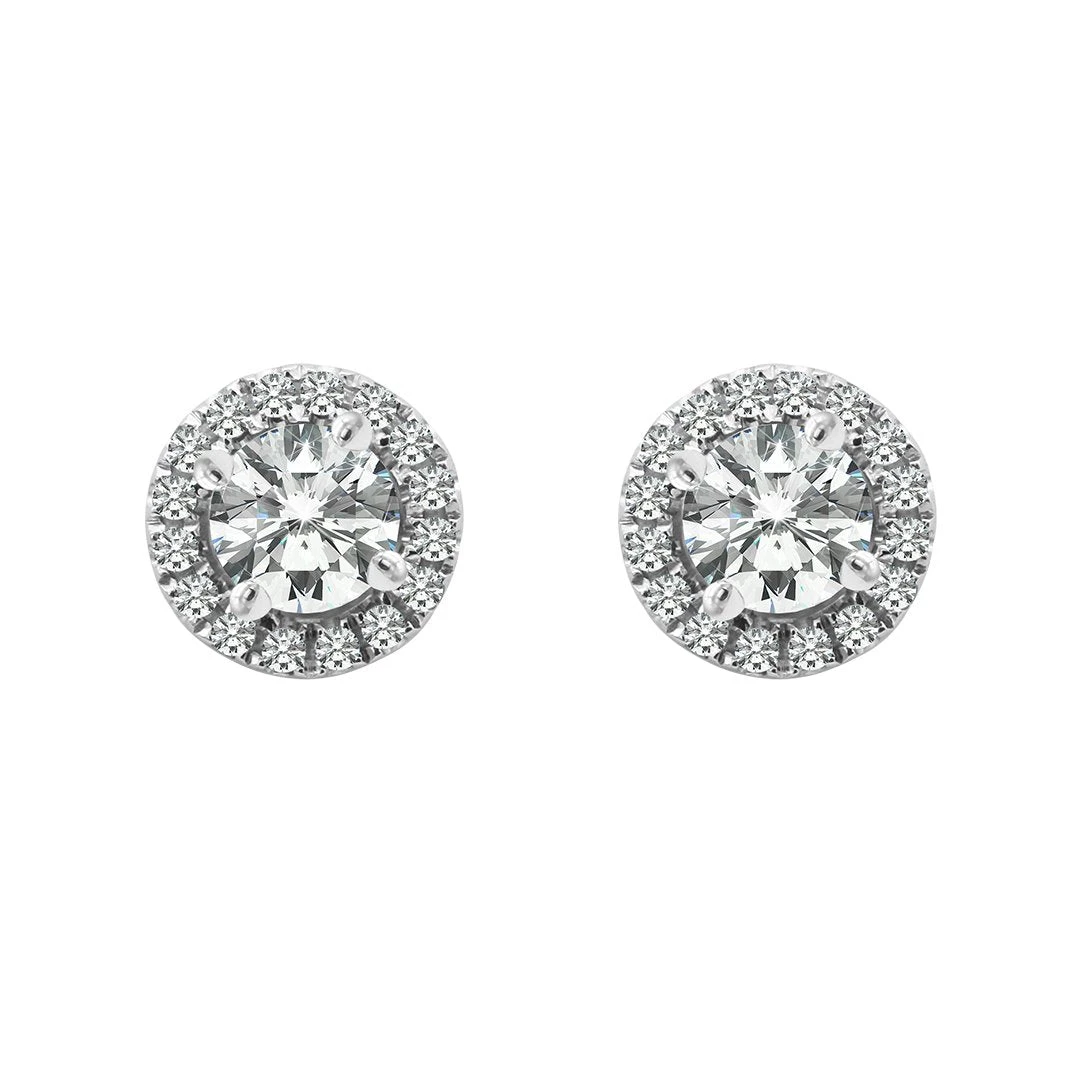 The Cory stud earrings showcase a captivating 0.43ct round diamond (each side) surrounded by a shimmering halo of diamonds, all beautifully set in 18K white gold. This timeless pair works day-to-night and is sure to be a favourite. Model wears 1ct centre stone each side.