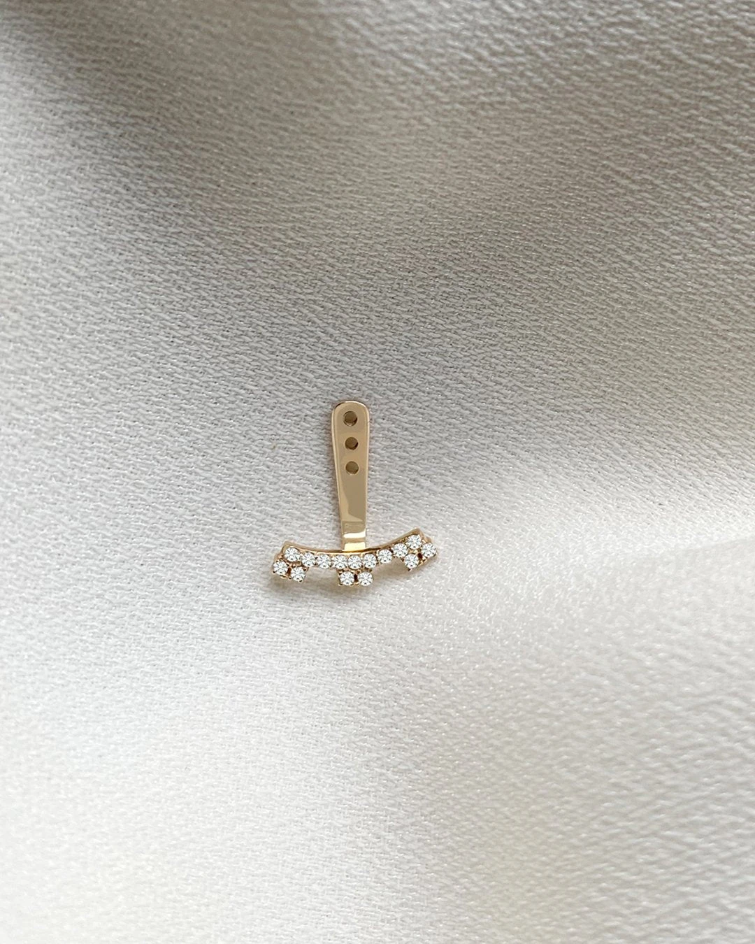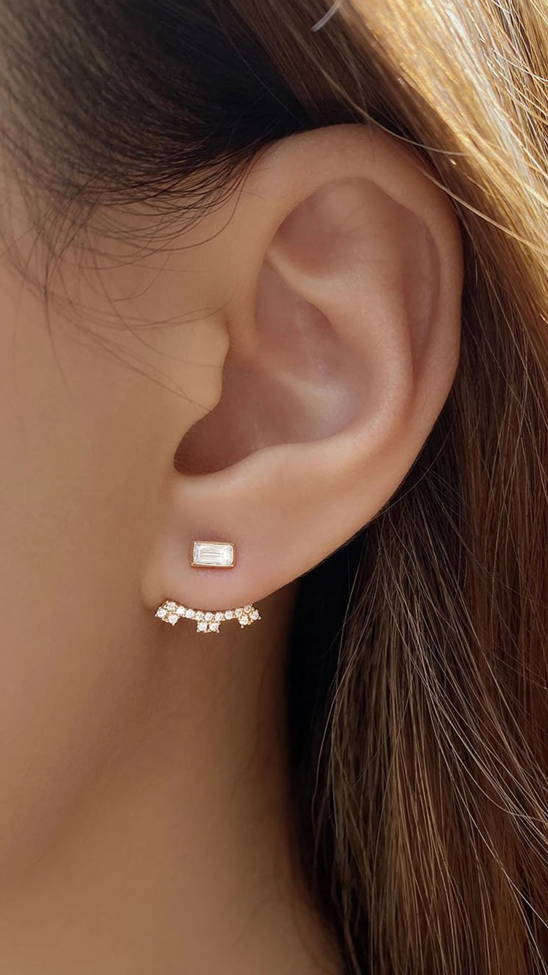 An architecturally inspired design featuring tiny diamond accents that gently hug the curve of your lobe. This ear jacket has 3 holes to customise the height for your individual ear. An everyday statement piece that you’ll never want to take off. We love pairing this ear jacket sold with the Elin stud.