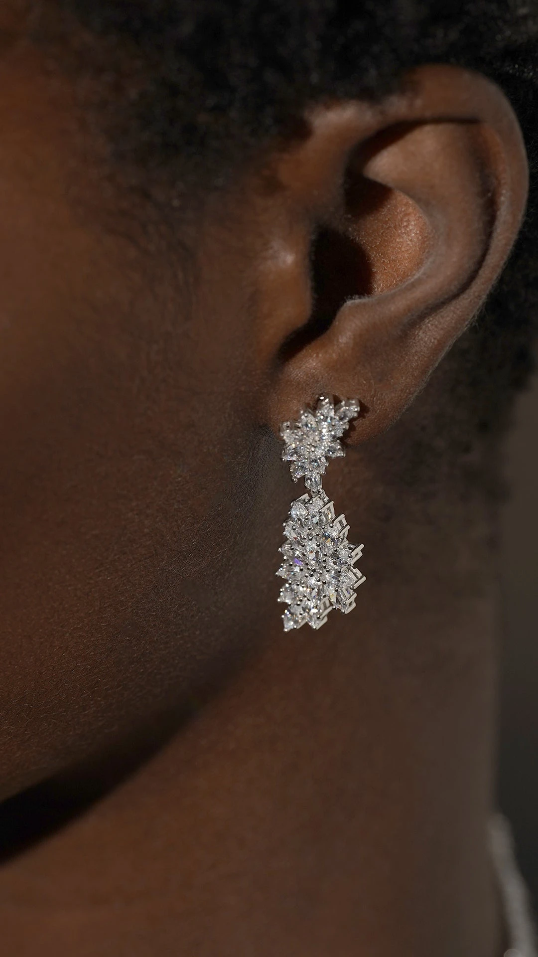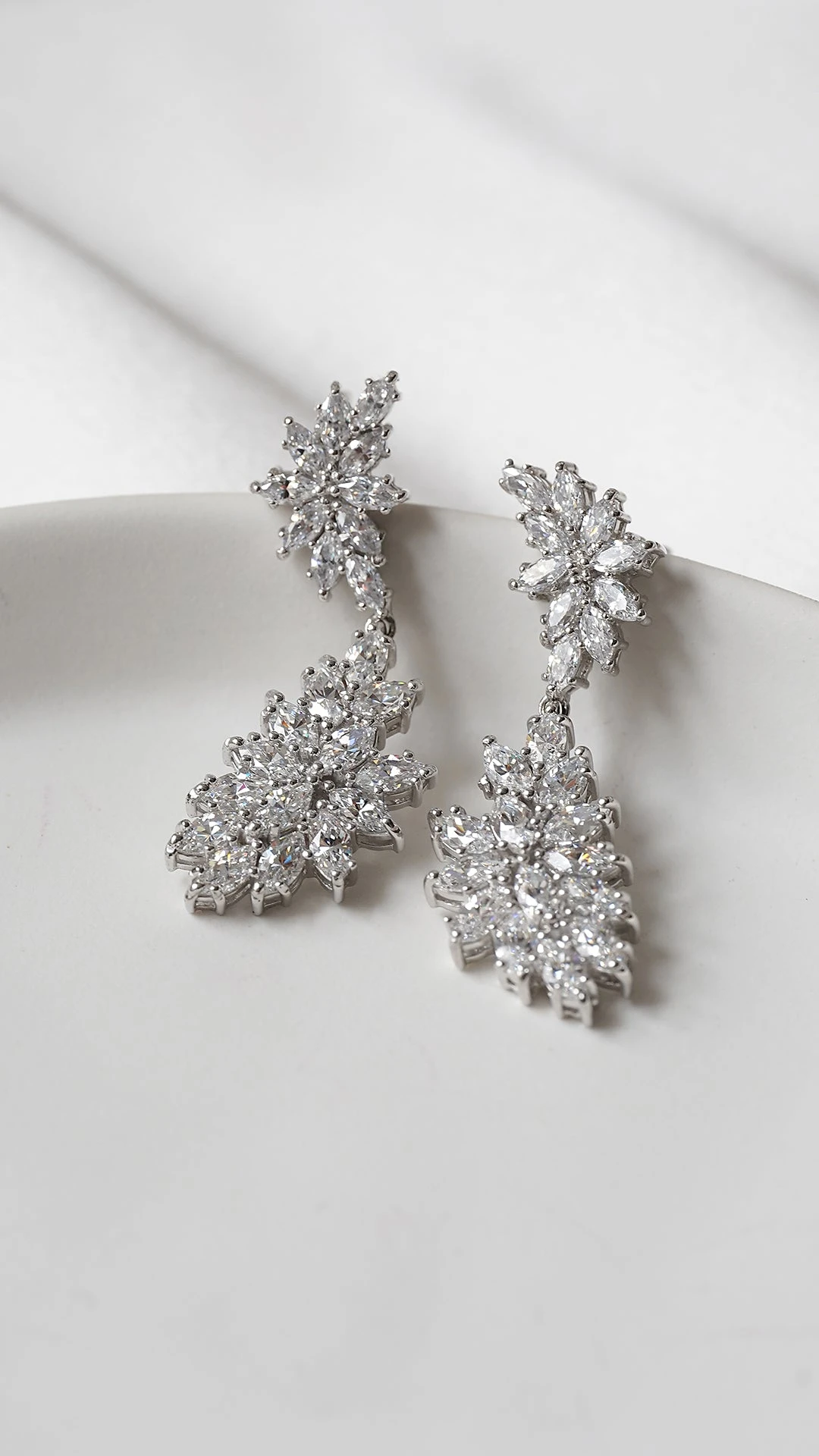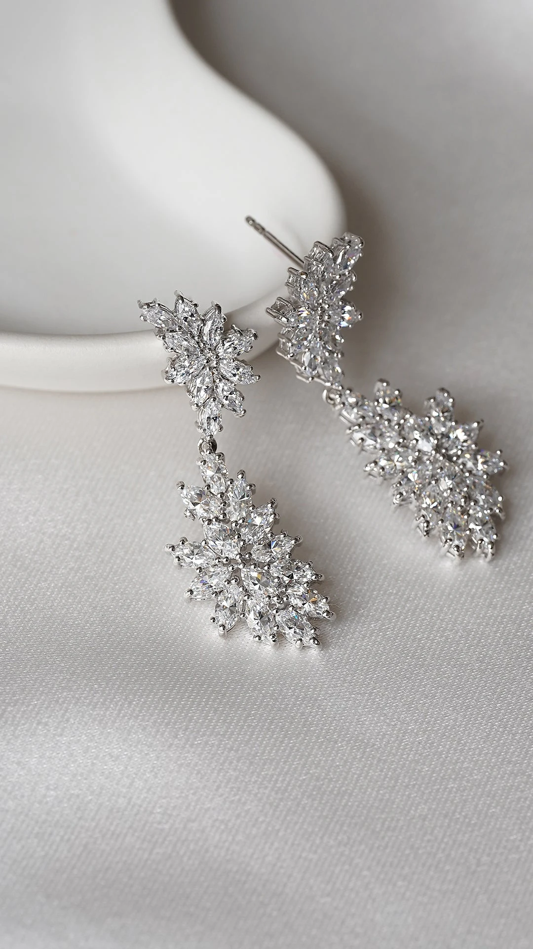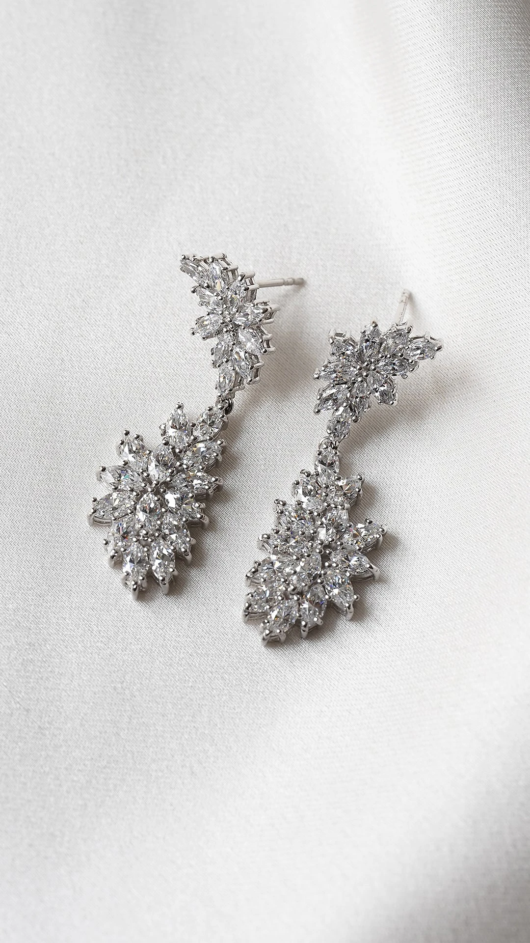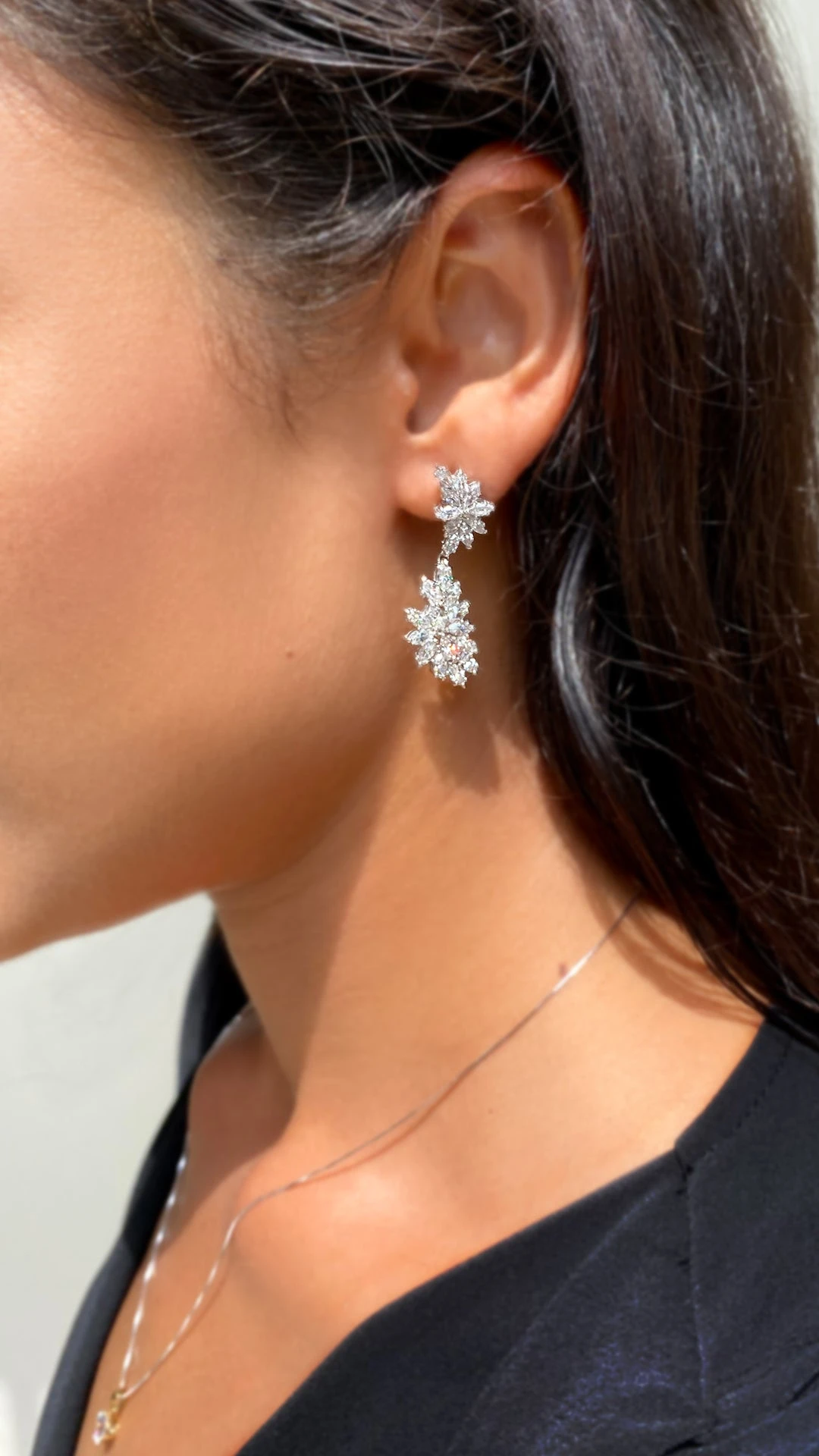 These feminine and dramatic chandelier earrings feature clusters of our exquisite marquise cut stones. They offer the perfect touch of sparkle and glamour. Wear them to add a touch of luxury to your evening looks.