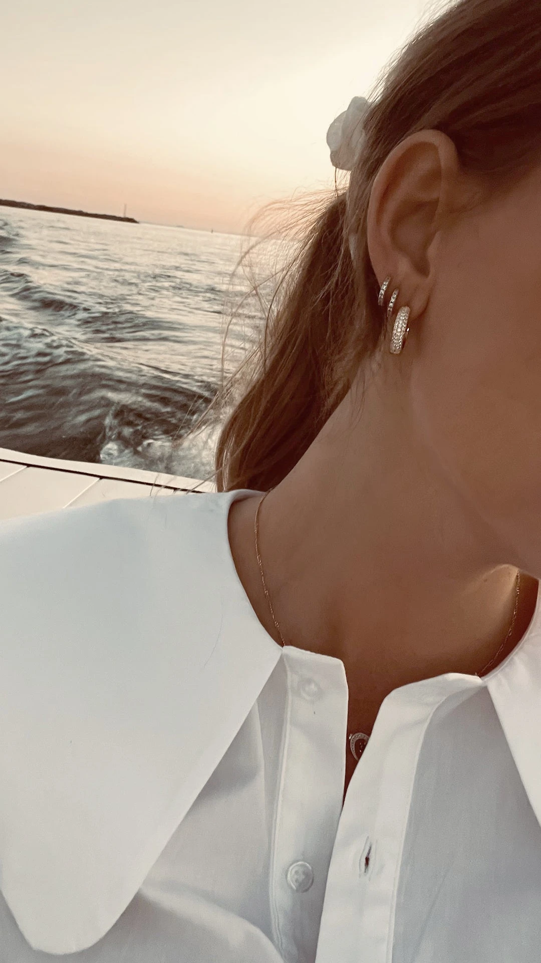 The Dana hoops are the ideal not-so-basic everyday hoop. The ideal size to take you from day to night, they are a go-to pair for any occasion. A polished yellow gold vermeil finish catches the light for an impeccable shine. Designed for easy wear, the post snaps in place for a secure fit.