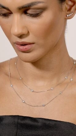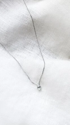 A single glittering marquise diamond baguette set in a polished 9K yellow gold bezel setting. It sits on a delicate 40cm chain, adjustable to 37cm.