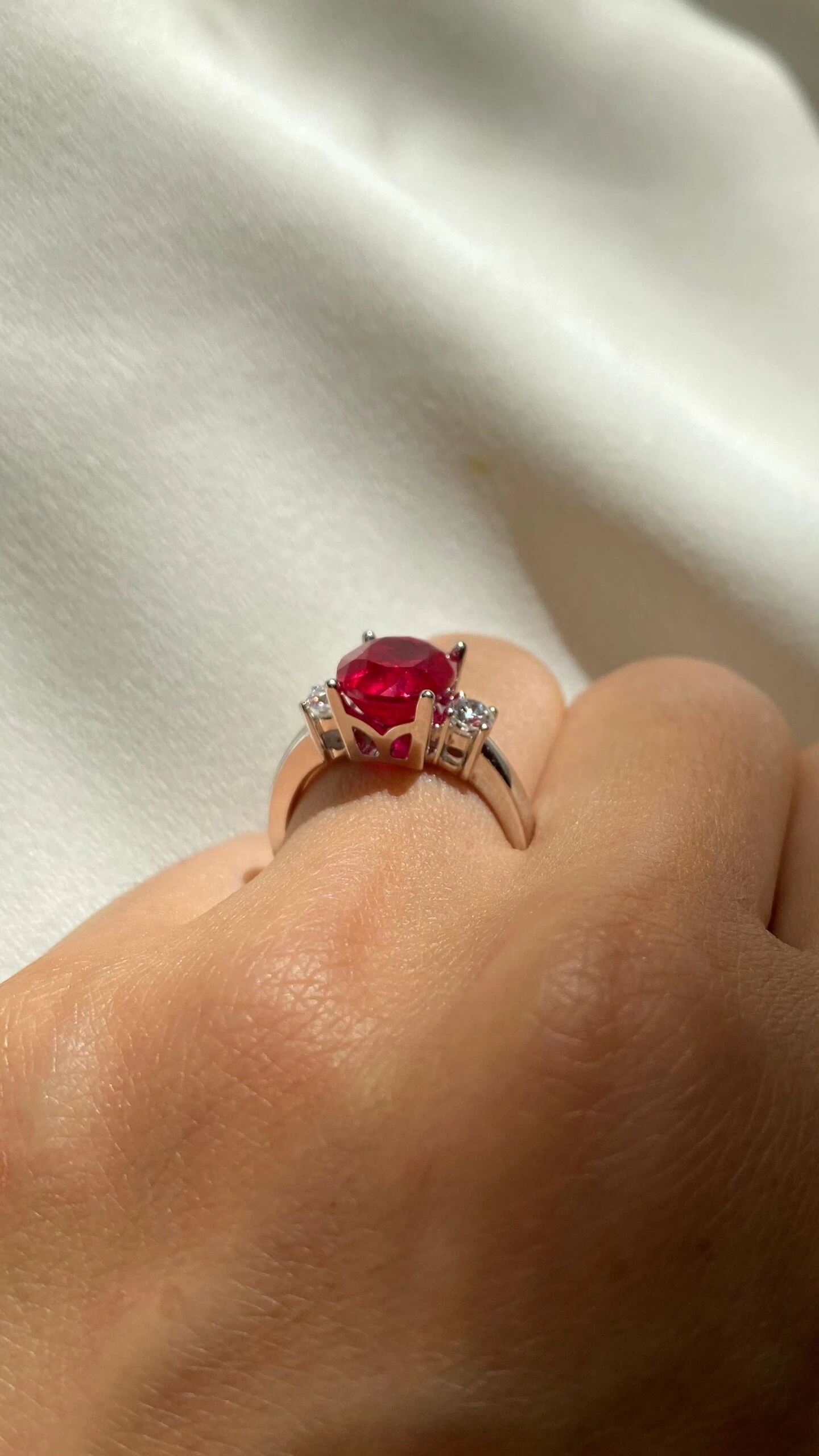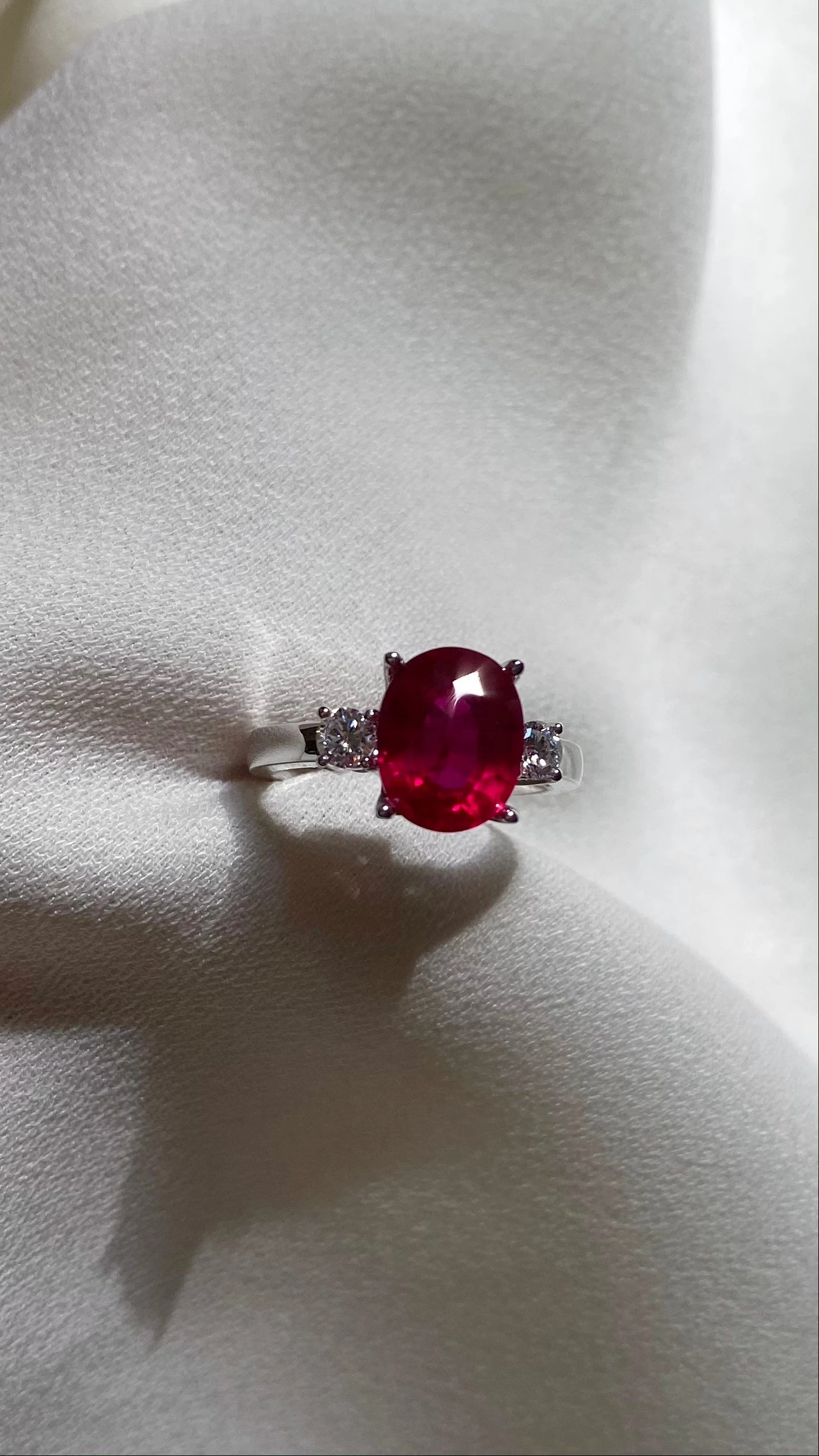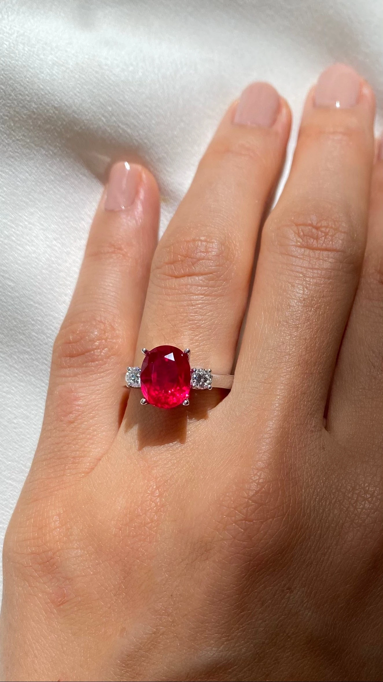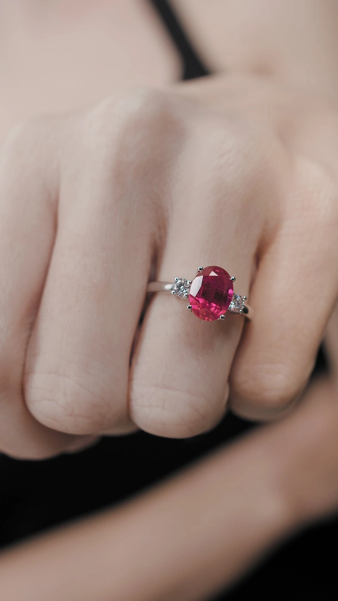 An elegant 1.50ct oval cut gemstone is set between two smaller round brilliant side stones in this beautiful trilogy diamond ring. This elegant trilogy style showcases expertly cut stones mounted in a polished 18K gold. Make the most special moment of your life truly unforgettable with this ring she will cherish for a lifetime ahead.