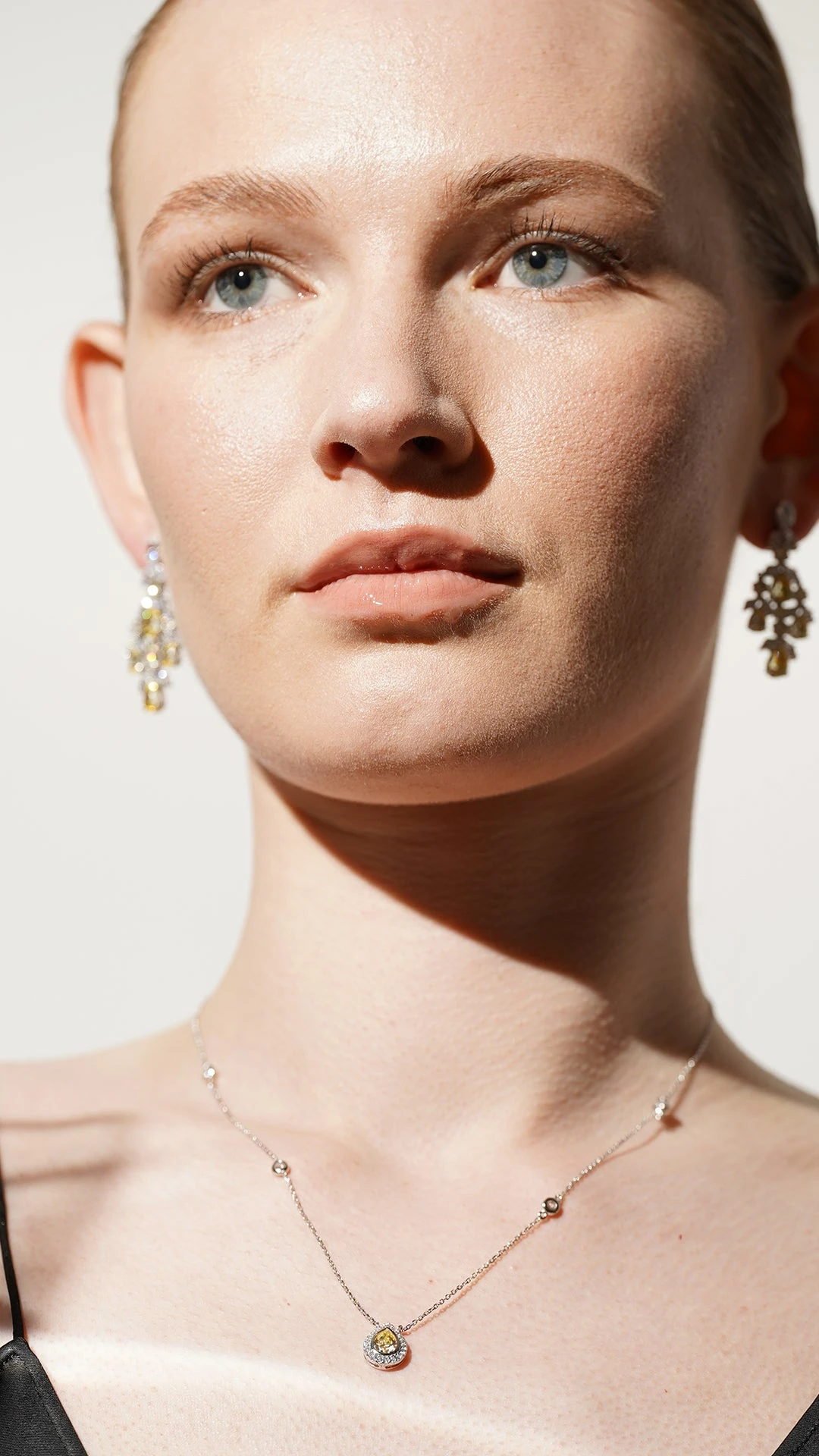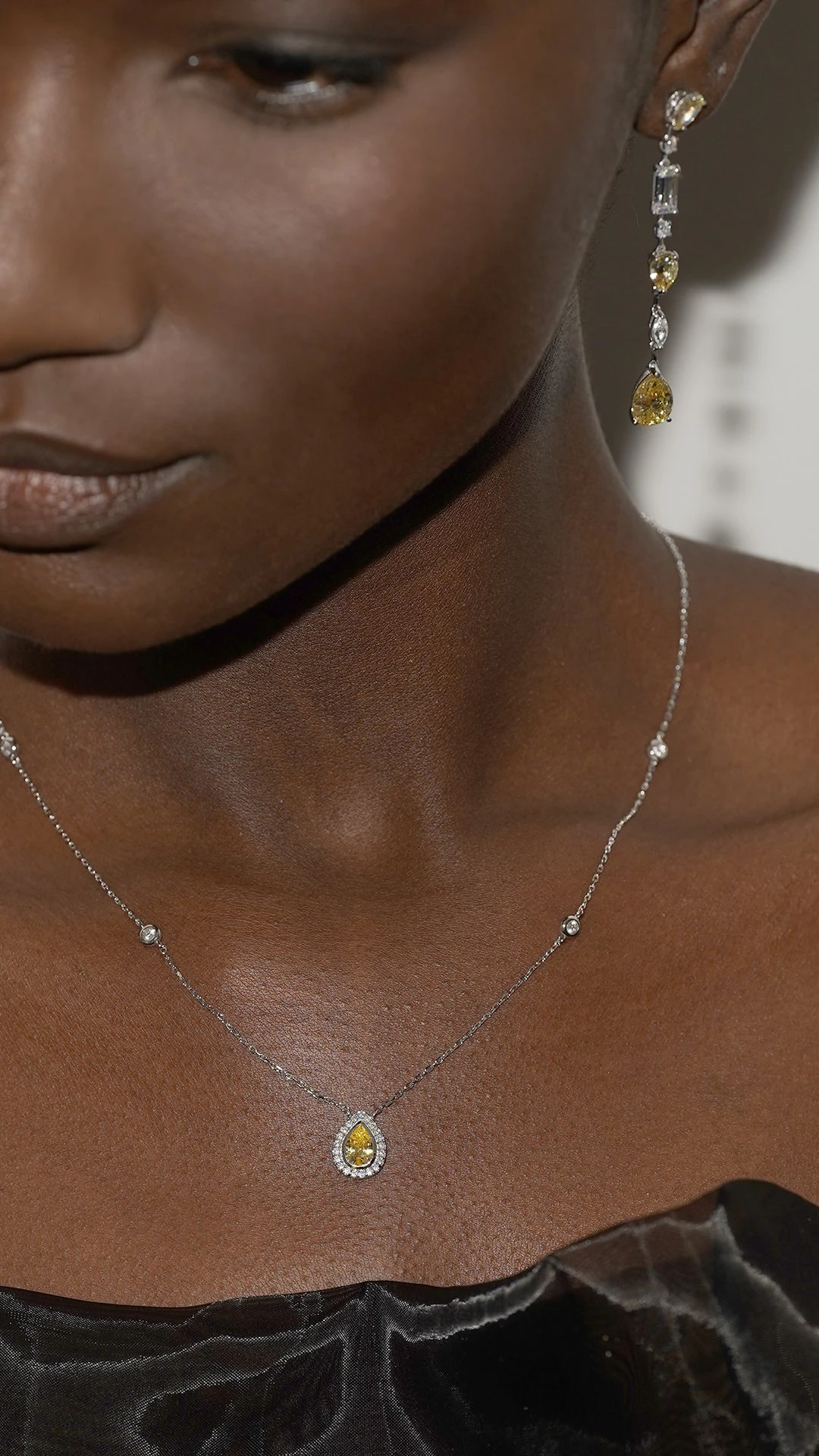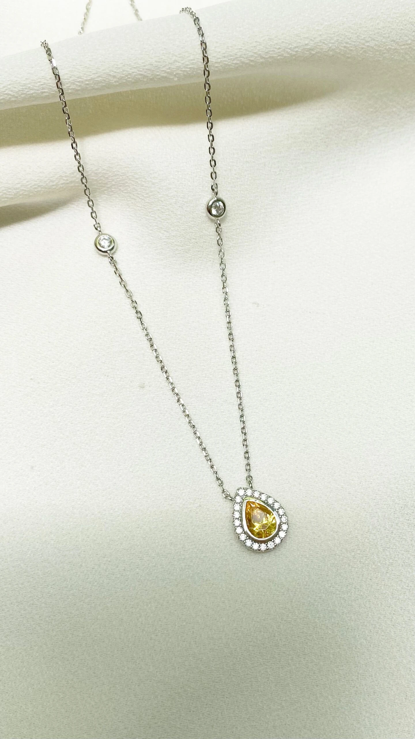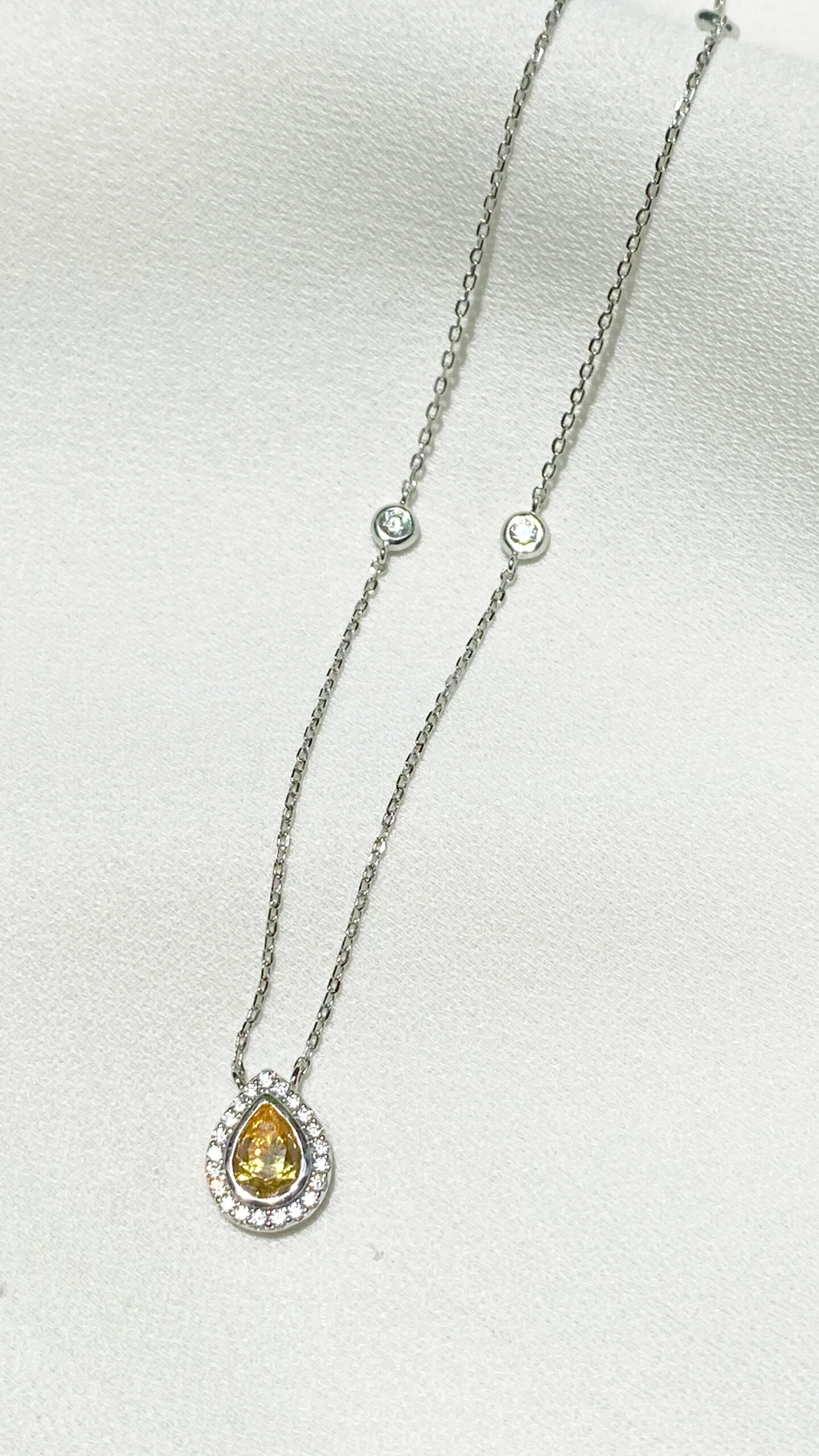 This gorgeous fancy yellow border set pear necklace is just what you need to add some elegant sparkle to any outfit. Wear it with a basic T-shirt to add some glamour, or pair it with some pear-drop earrings to elevate your evening look.