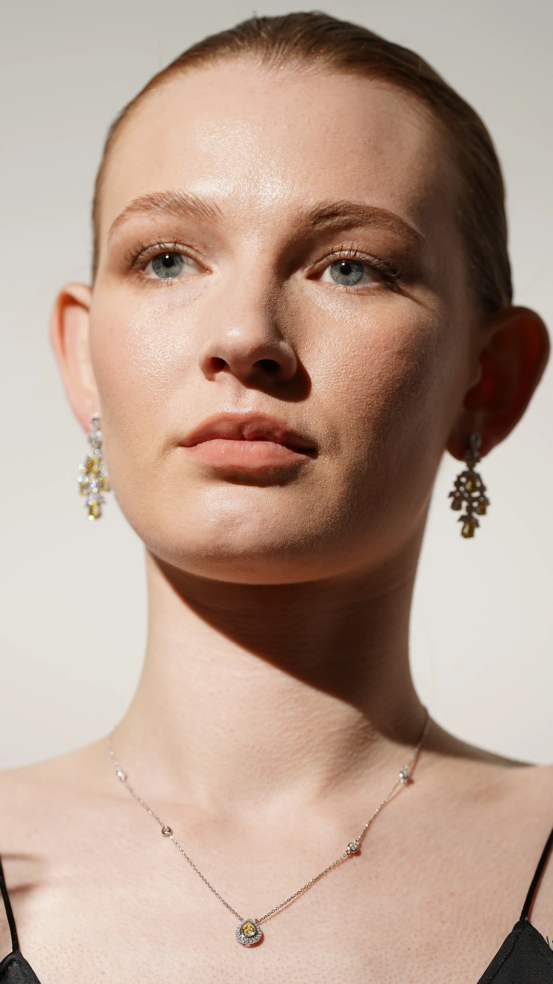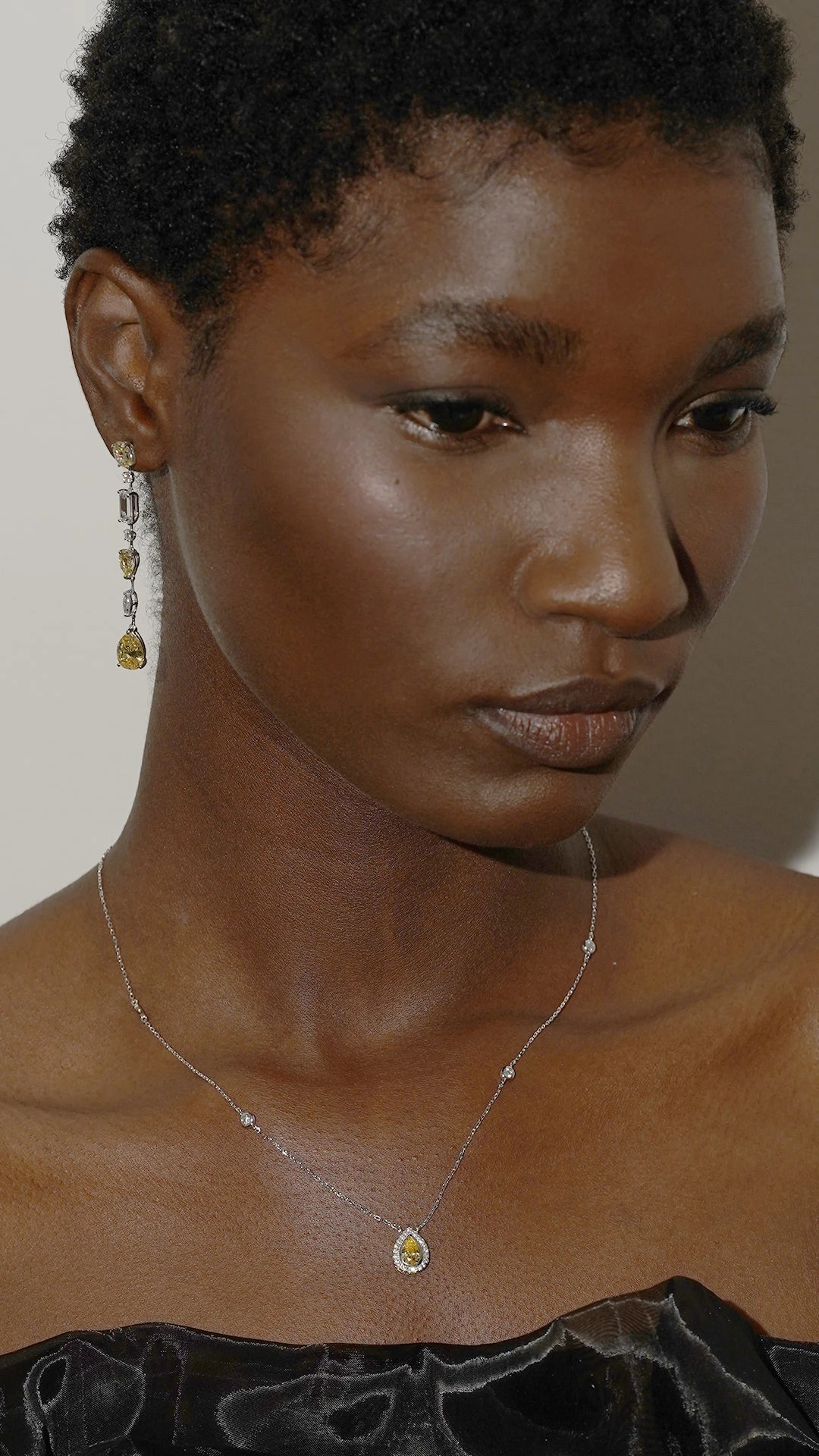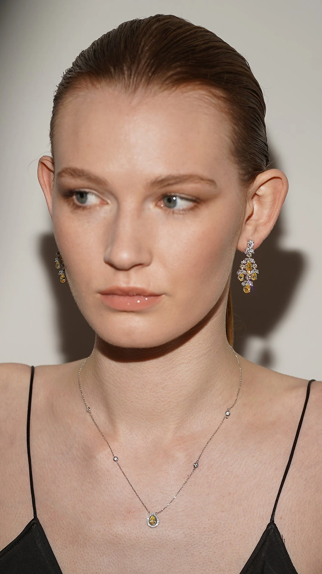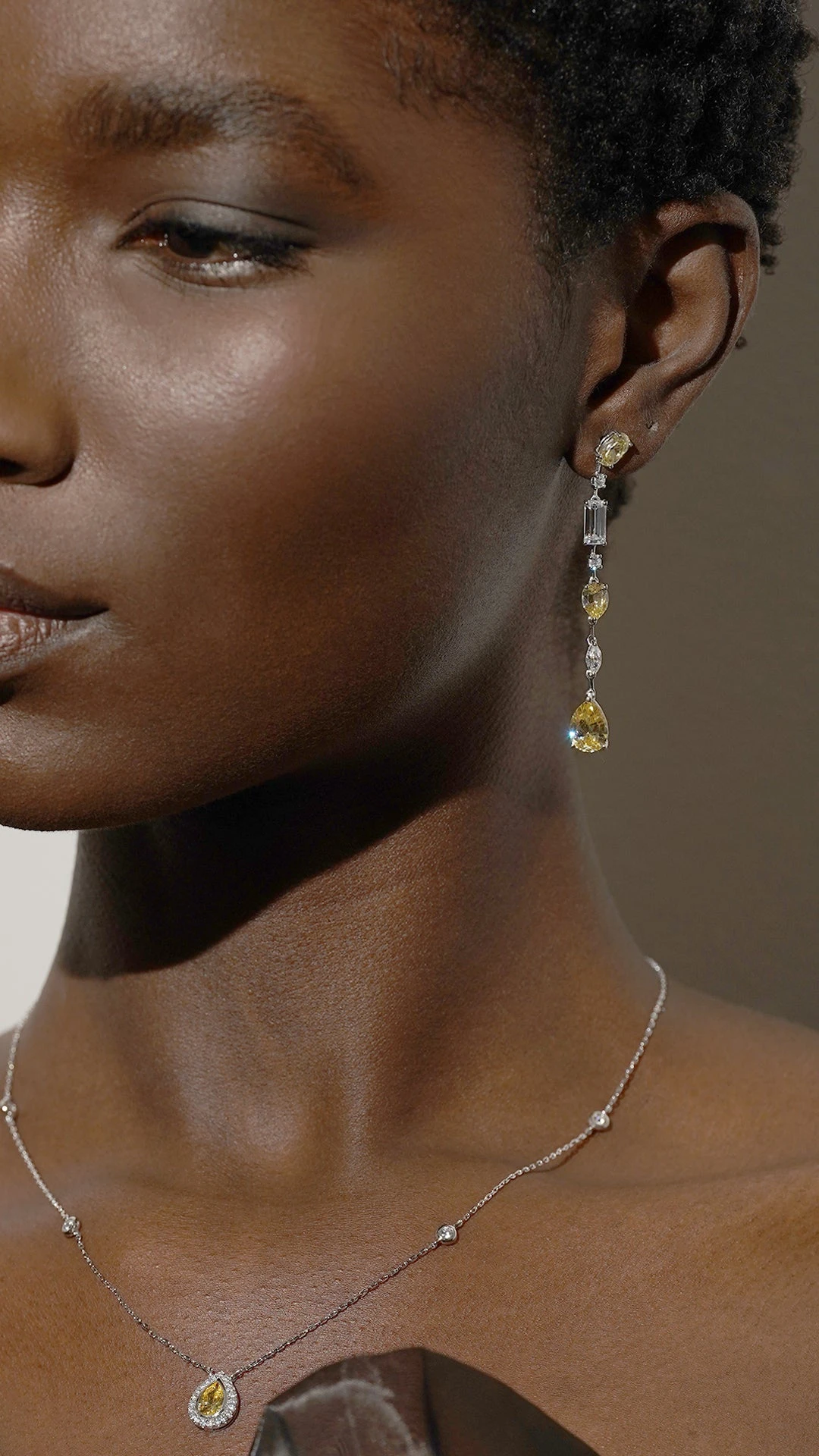 This gorgeous fancy yellow border set pear necklace is just what you need to add some elegant sparkle to any outfit. Wear it with a basic T-shirt to add some glamour, or pair it with some pear-drop earrings to elevate your evening look.