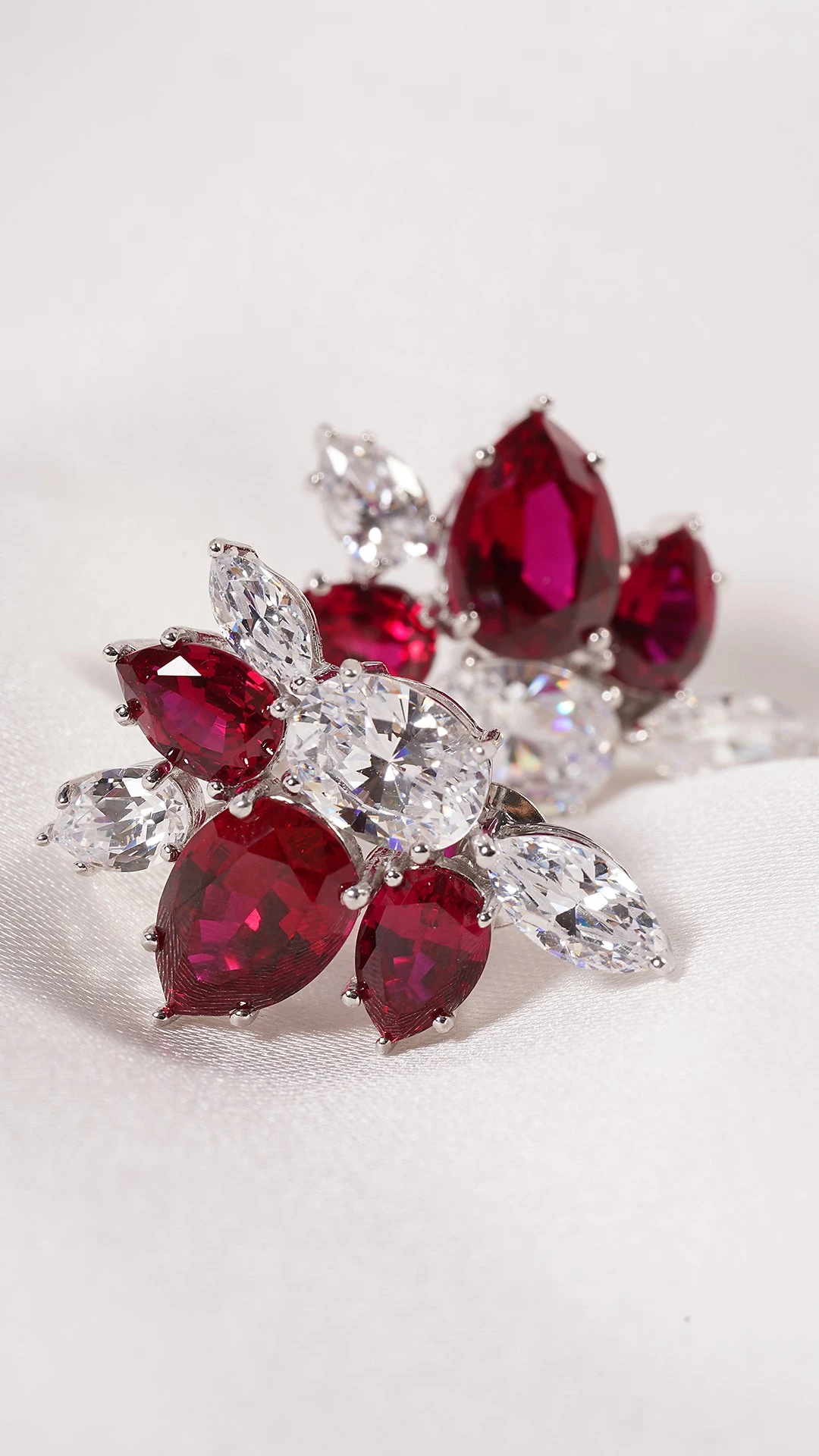 This elegant cluster features 14 ct equivalent of brilliantly cut marquise and ruby pear cut stones. Stunningly eye-catching, this pair is the ultimate finishing touch to your evening look.
