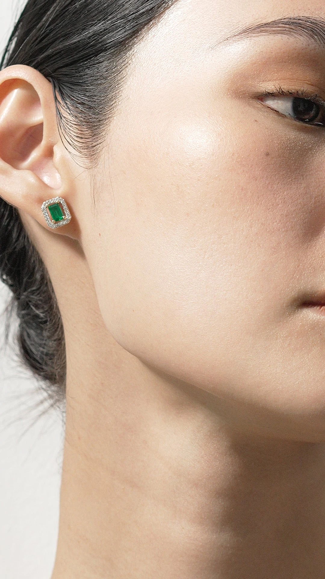These studs feature 0.5ct. eq. baguette cut in a rich emerald green hue framed with an exquisite border setting. The stone is a beautiful step cut favoured by the likes of Angelina Jolie and Elizabeth Taylor. Keep this timeless pair part of your regular jewellery rotation.