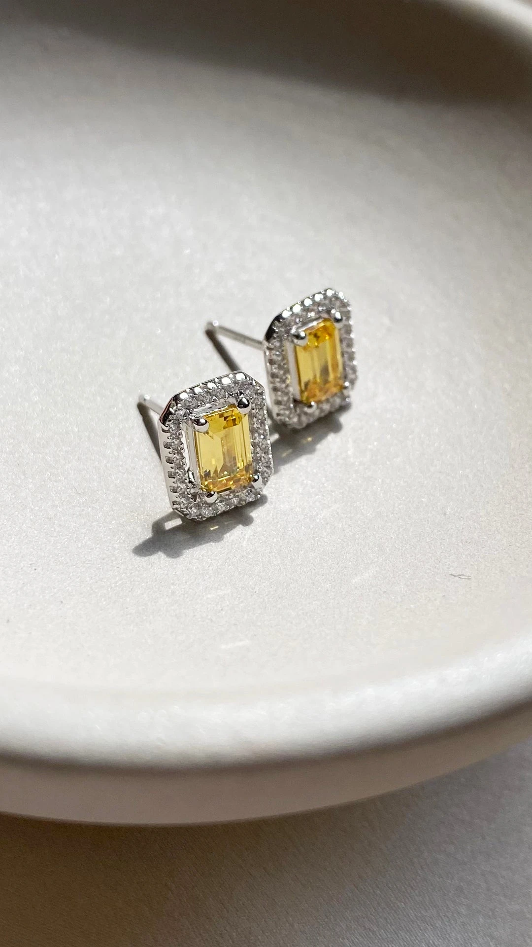 These studs feature 0.5ct. eq. Yellow emerald cut in an exquisite border setting. Keep this timeless pair part of your regular jewellery rotation.