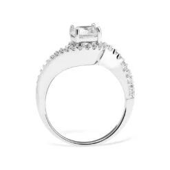 This ring is comprised of a beautiful round brilliant diamond surrounded by a double halo of smaller diamonds for added sparkle. Handcrafted with an elevated setting in 18K rose gold. Make this ring the one she will cherish for a lfietime.