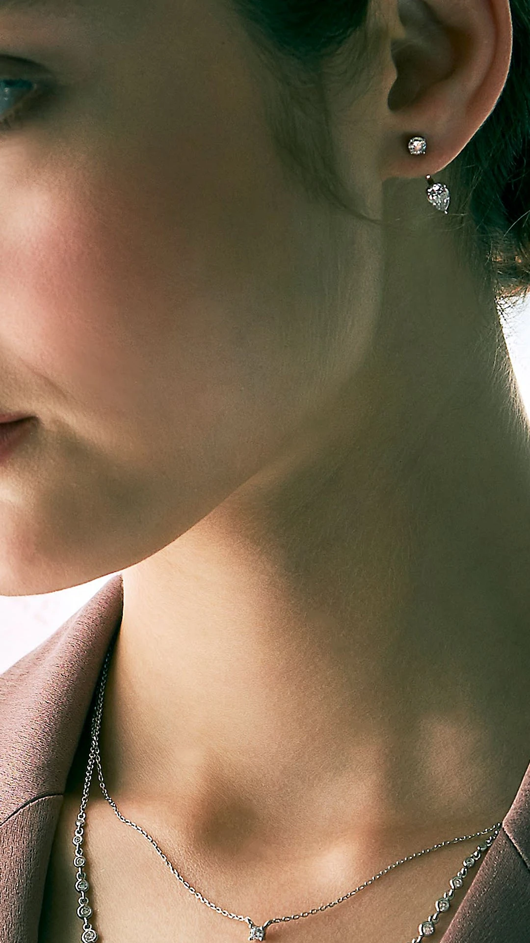A bold and beautiful Pear-cut stone sits just below the lobe for a new take on a jewellery essential. Perfect for the girl who dares to be different. Wear it with the included Round Brilliant stud or interchange it with a Pear or Marquise stud earring from the Chelsea Collection for a fresh take.