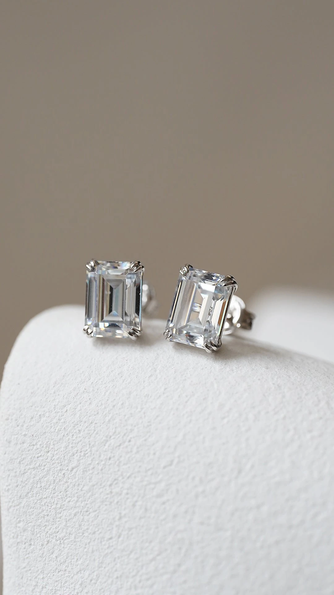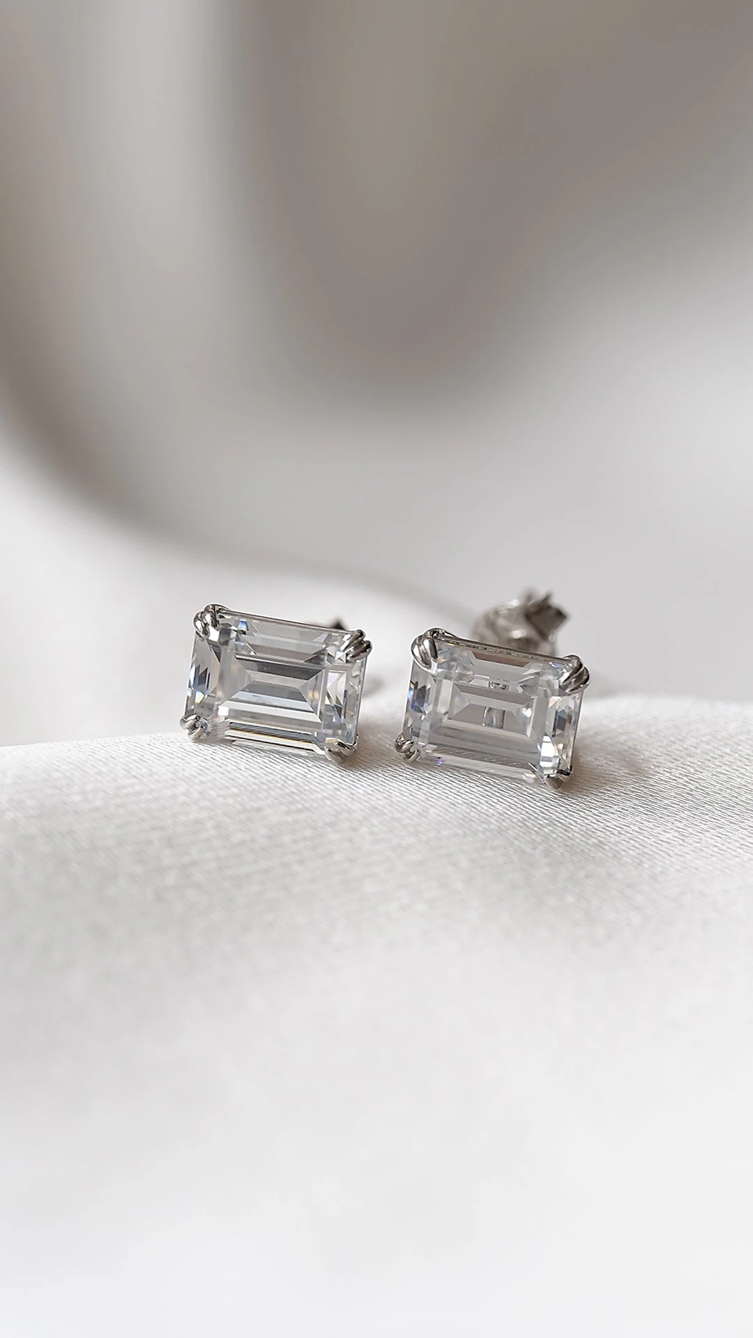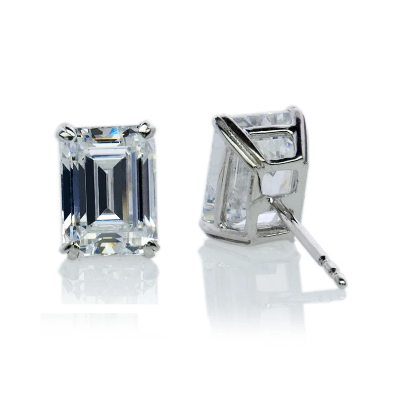These timeless studs will remain a staple pair for years to come. Crafted in a 9K White Gold double prong mounting and featuring intricately cut and polished emerald-cut stones, these are the perfect pair to add a sophisticated touch to your look from day to night.