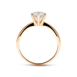 The Gaia ring is a timeless and classic solitaire ring, featuring a round brilliant diamond in a beautiful 6-prong setting. Set in polished 18K gold, the stone sits on a tapered band for an elegant silhouette. Win her heart with this classic ring to cherish now and forever.