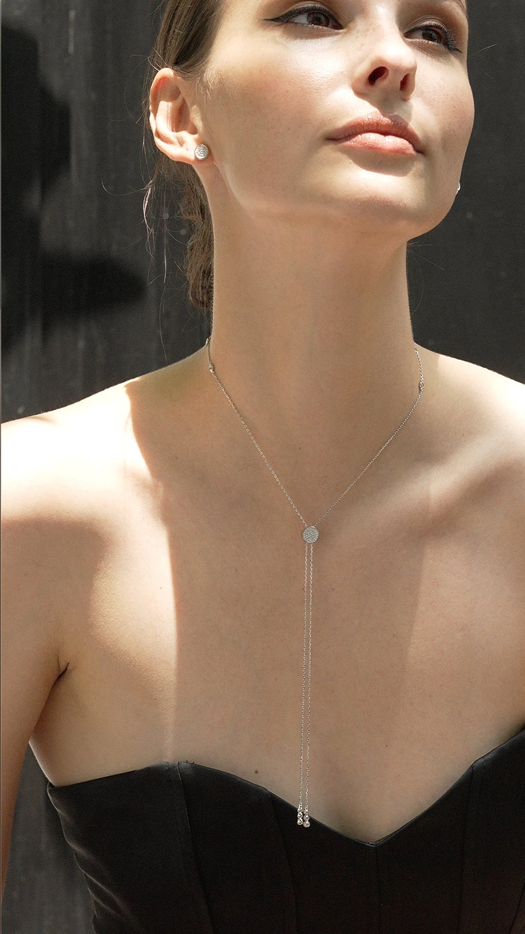 It can be worn in two ways: wear it with a delicate choker to the office, style it with a simple t-shirt, or turn the necklace around to showcase the pave slider for an elevated evening look.