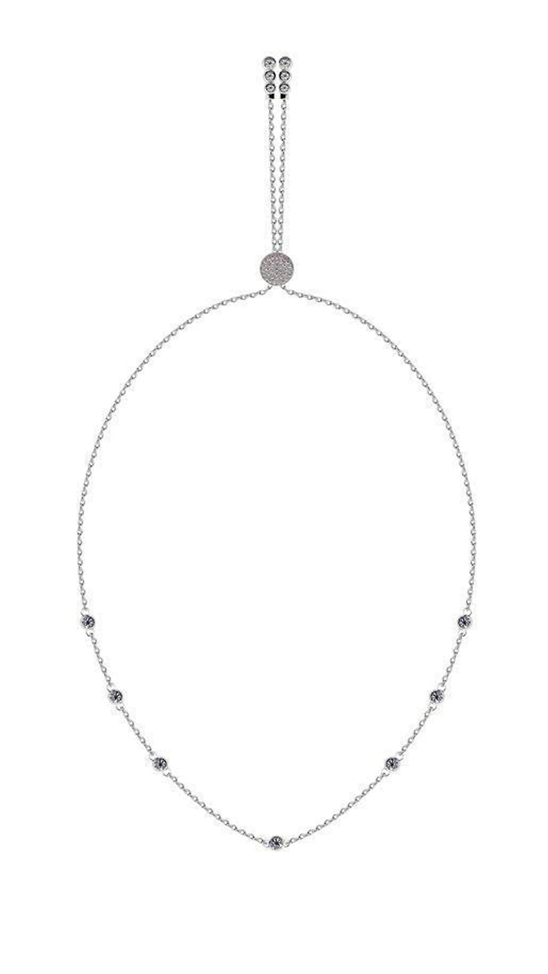 The new Gala Necklace features a beautiful chain punctuated with a pave stone slider. The Gala necklace is set in sterling silver with white gold plating.