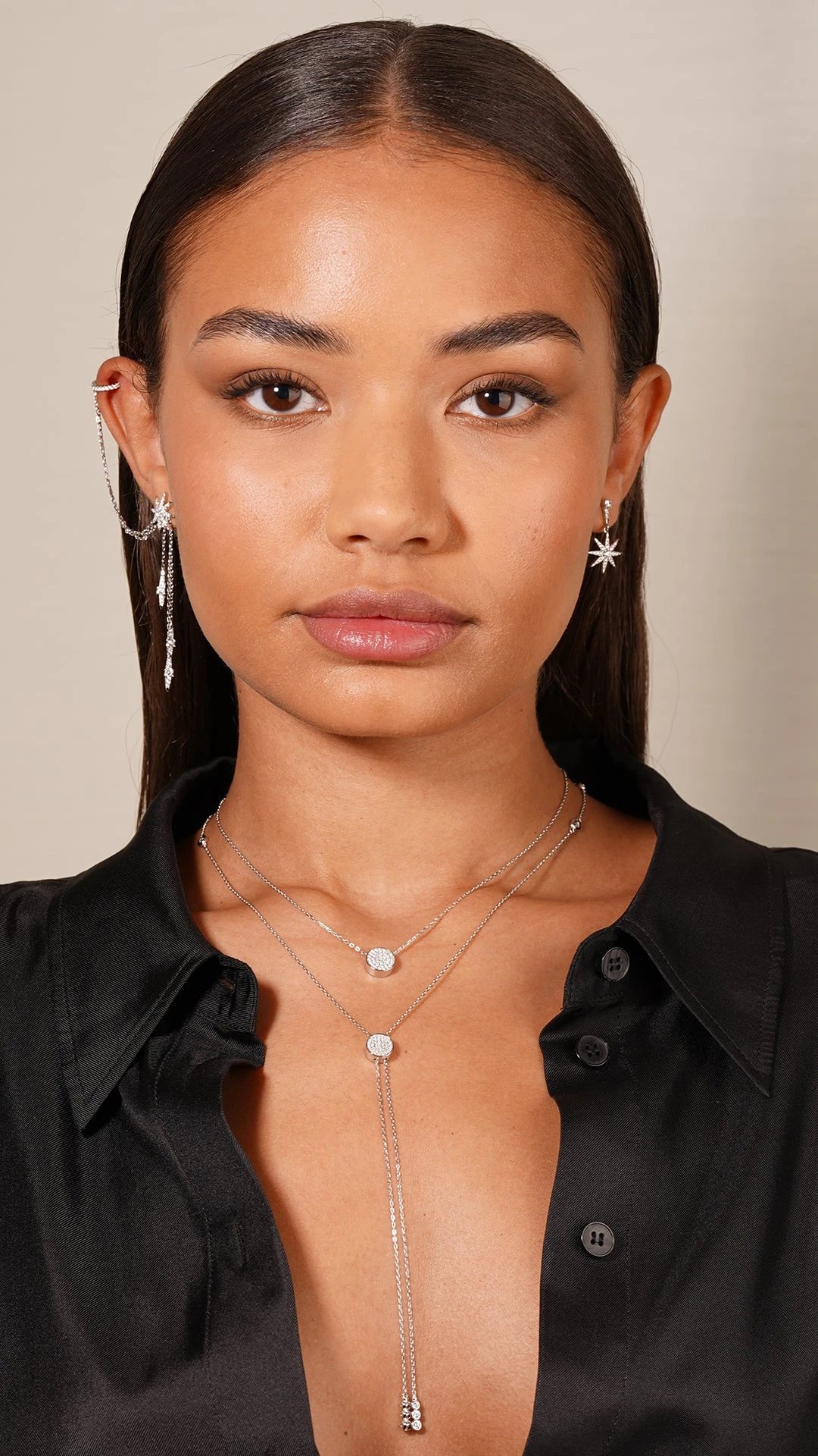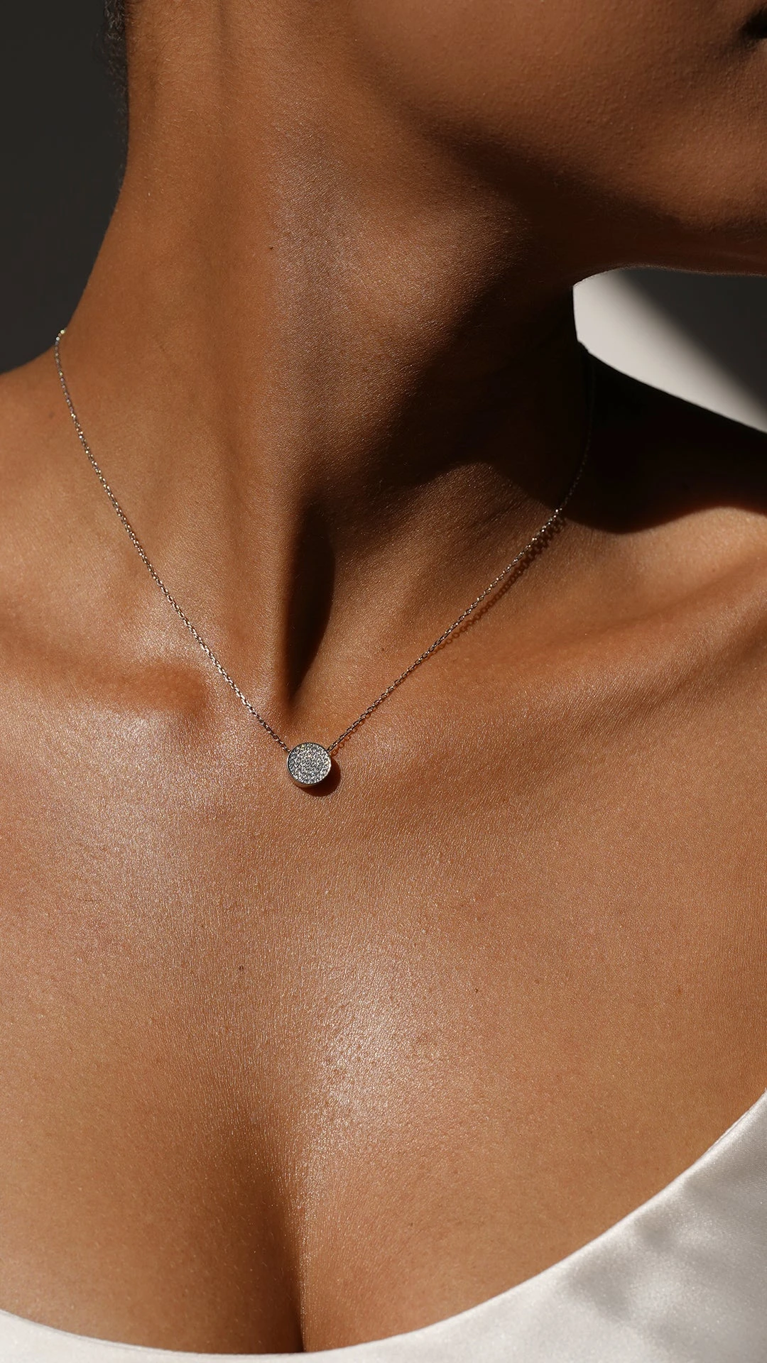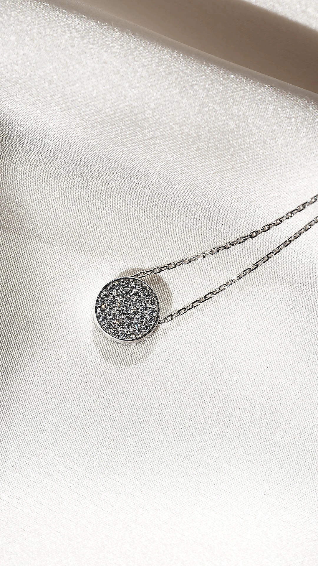 This delicate necklace embellished with pave Round Brilliant stones dangling beautifully on a rolo chain is perfect for everyday wear. Wear it with any outfit as your style signature.