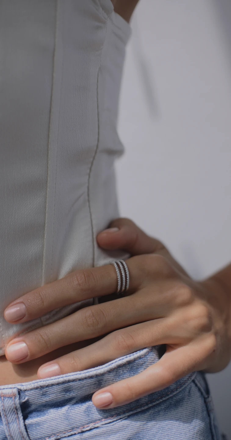 This Gunner ring has a simple 3-row micro-setting silhouette that can be worn as an everyday go-to for extra shine.