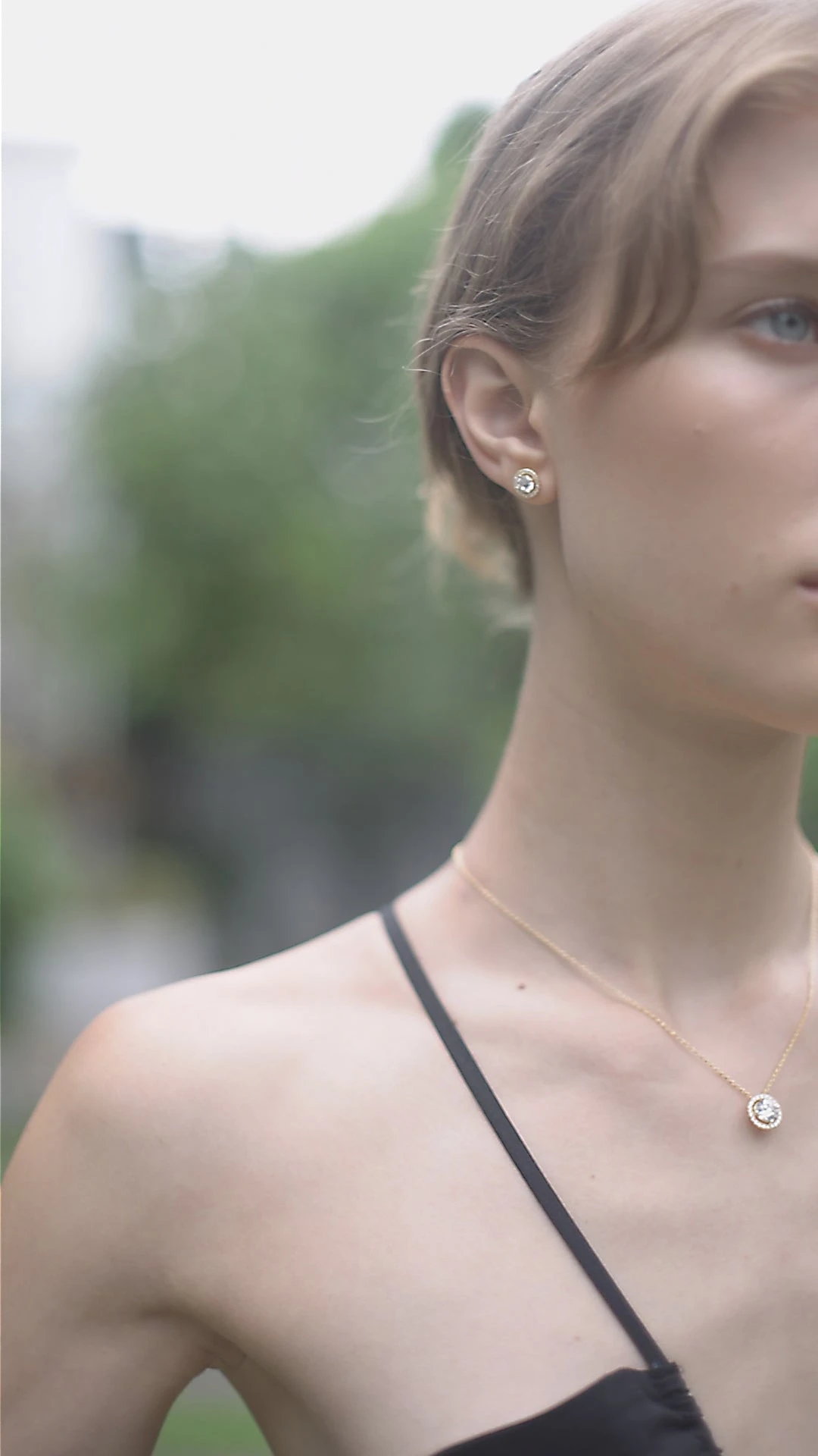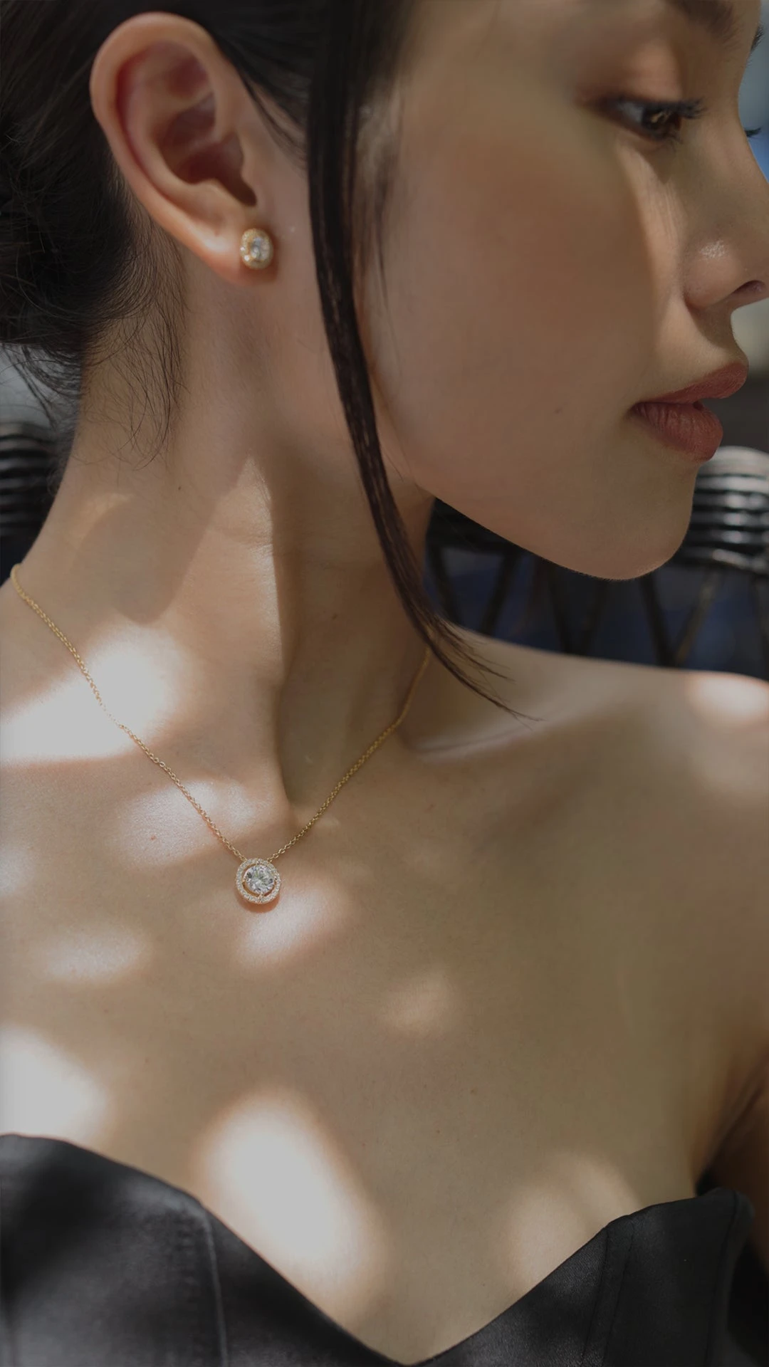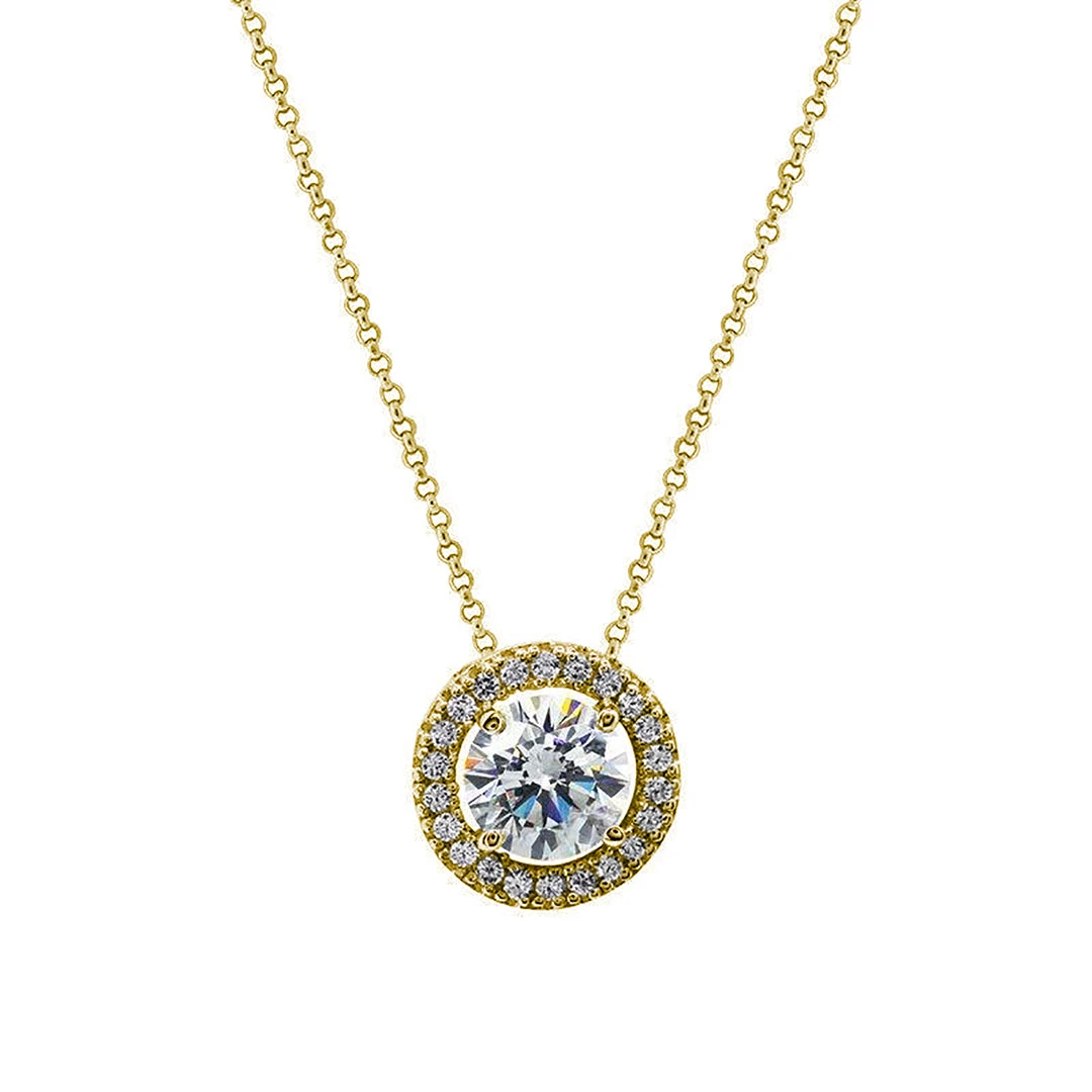 This pendant features a Round Brilliant in an exquisite border setting. Suspended with a Sterling Silver rolo chain, wear it as an alternative everyday basic.