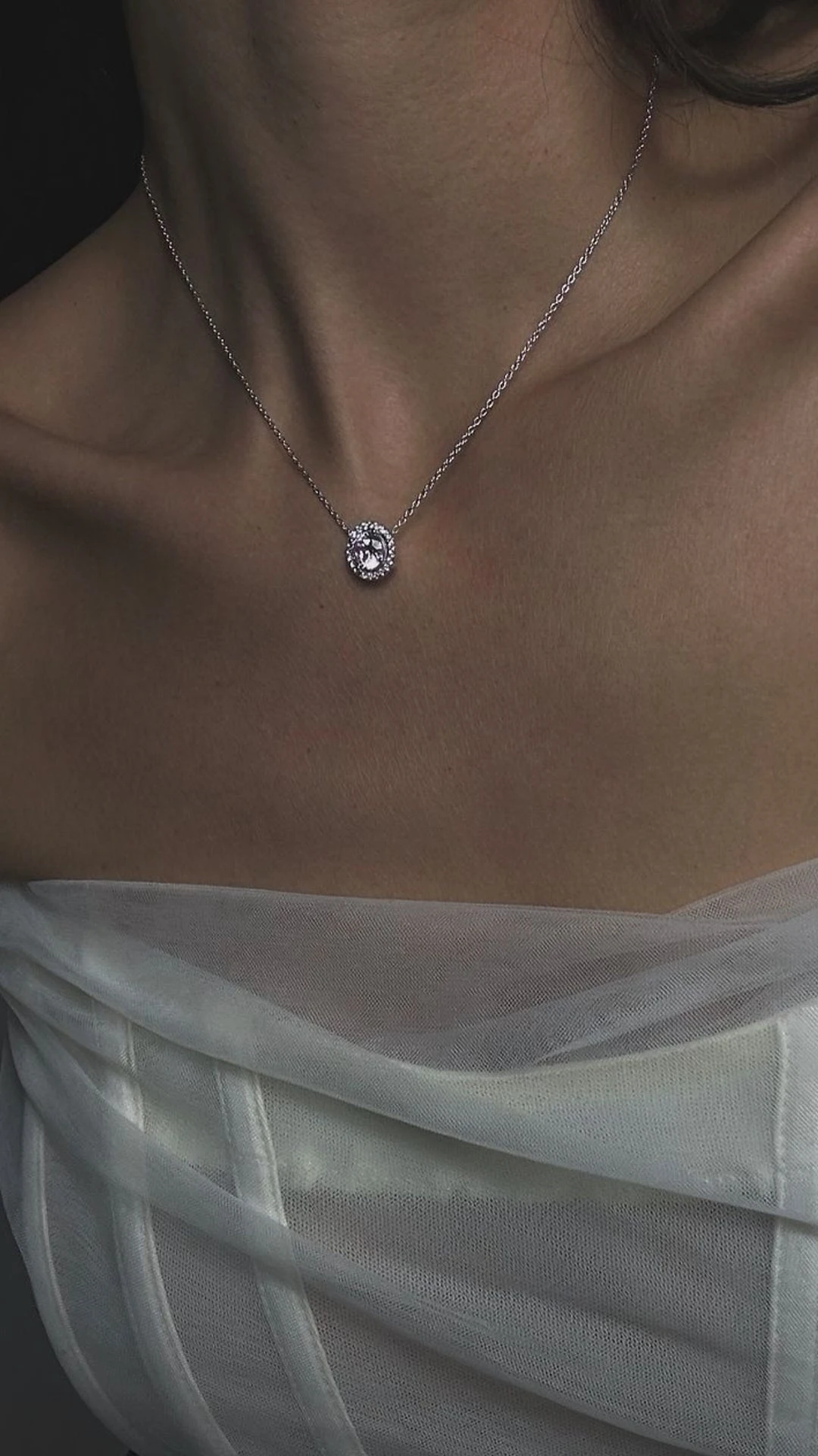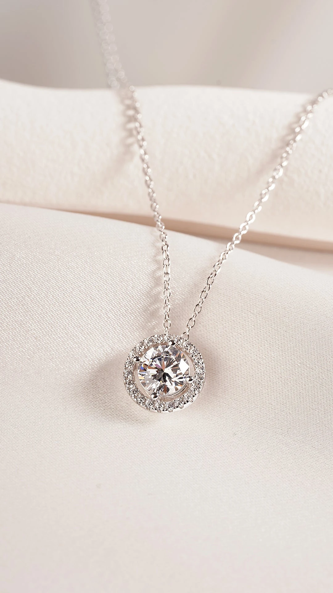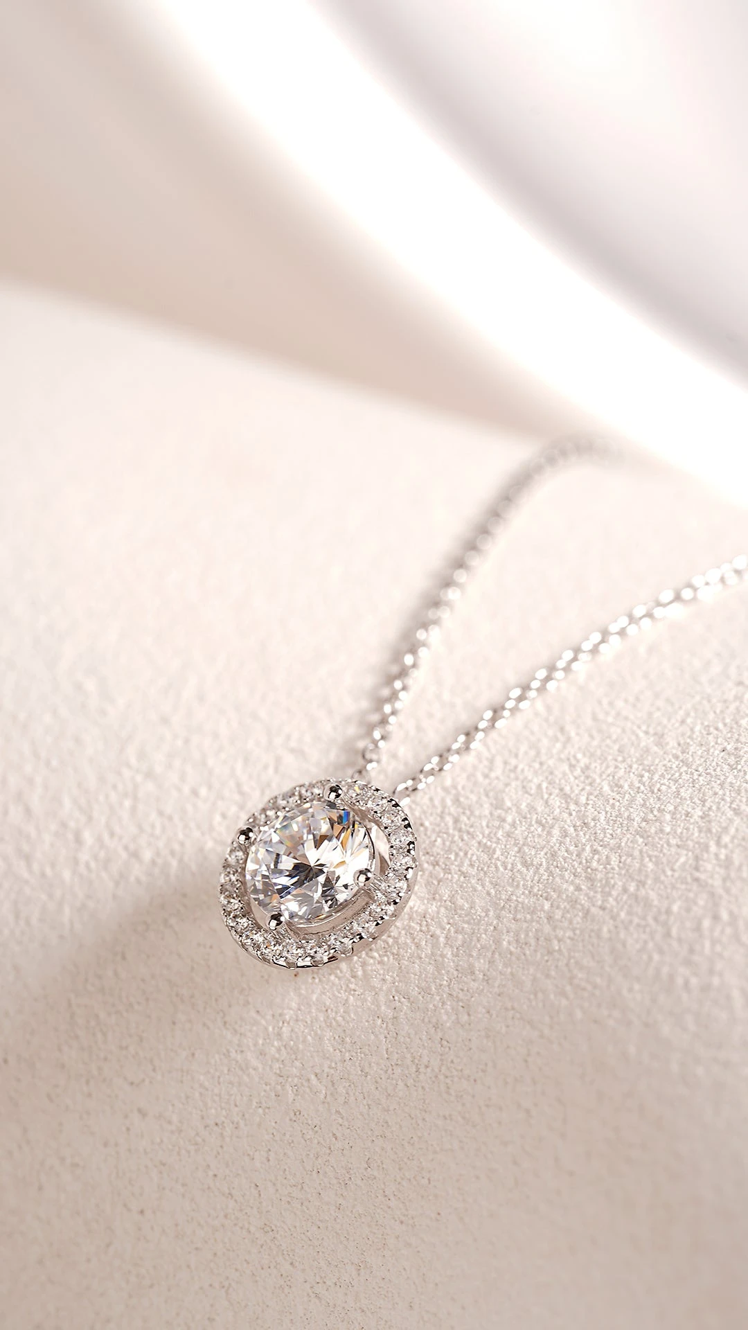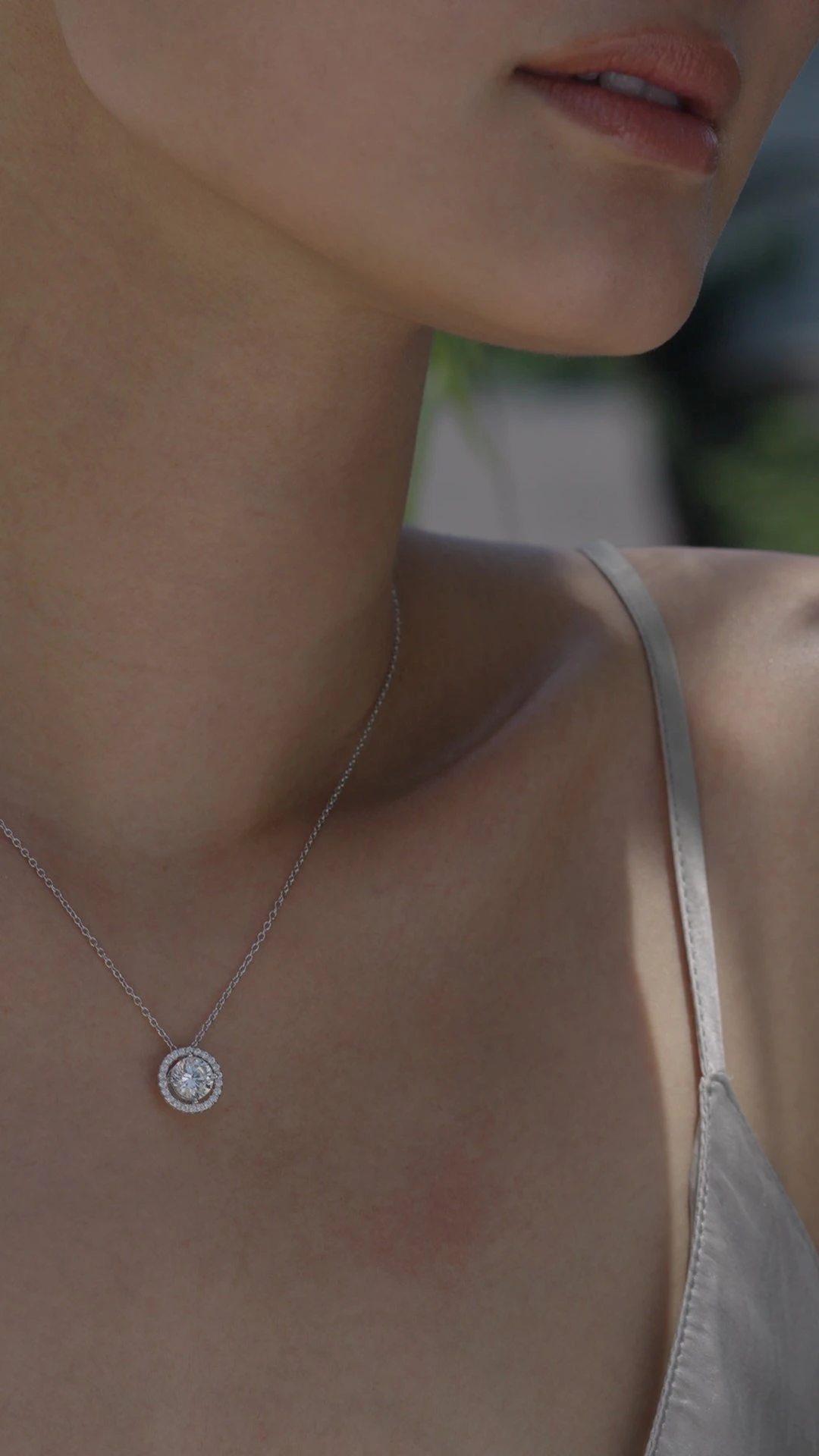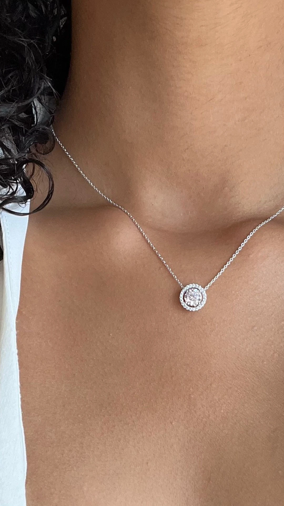 This staple pendant features a cute round brilliant in a clean border setting. Suspended with a rolo chain, wear it as an alternative everyday basic.
