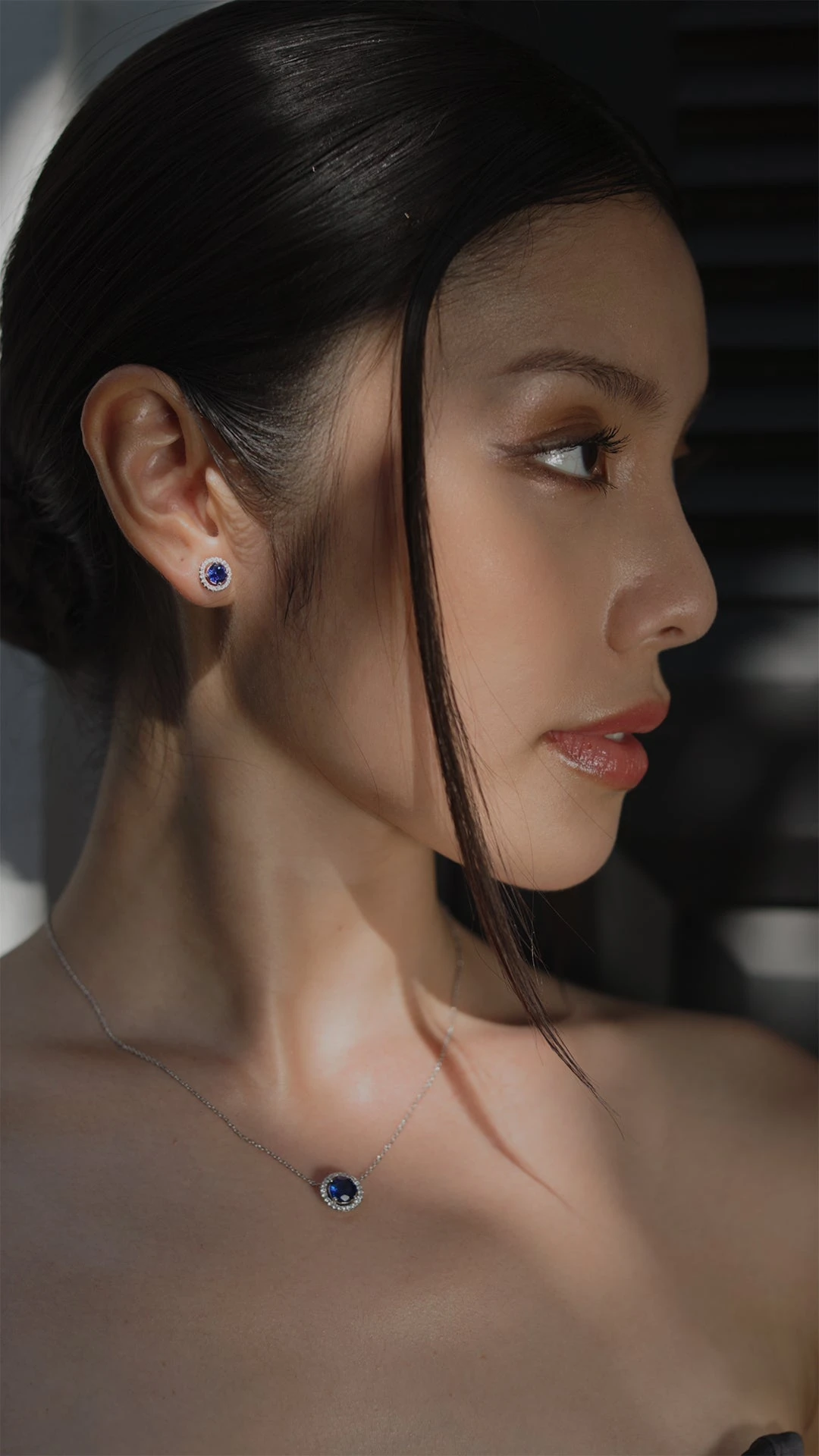 Gwen Sapphire Blue Studs White Gold Plated