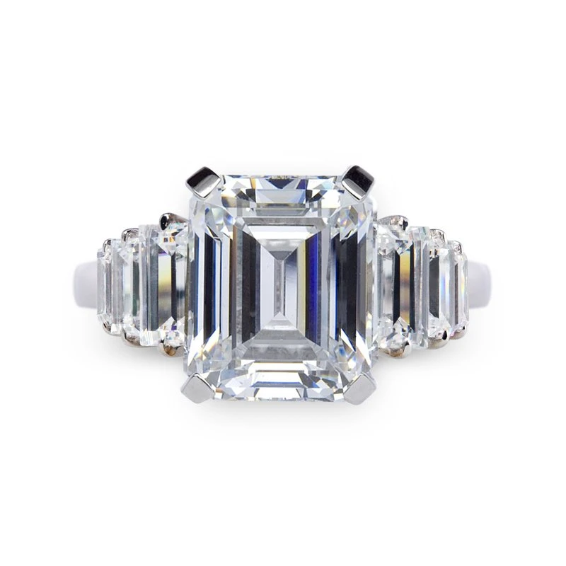 This magnificent emerald cocktail ring features an elegant CARAT* cut Emerald centre stone flanked by tapered baguette cut stones on the shoulder. This is the perfect piece to add cocktail party glamour to any outfit.