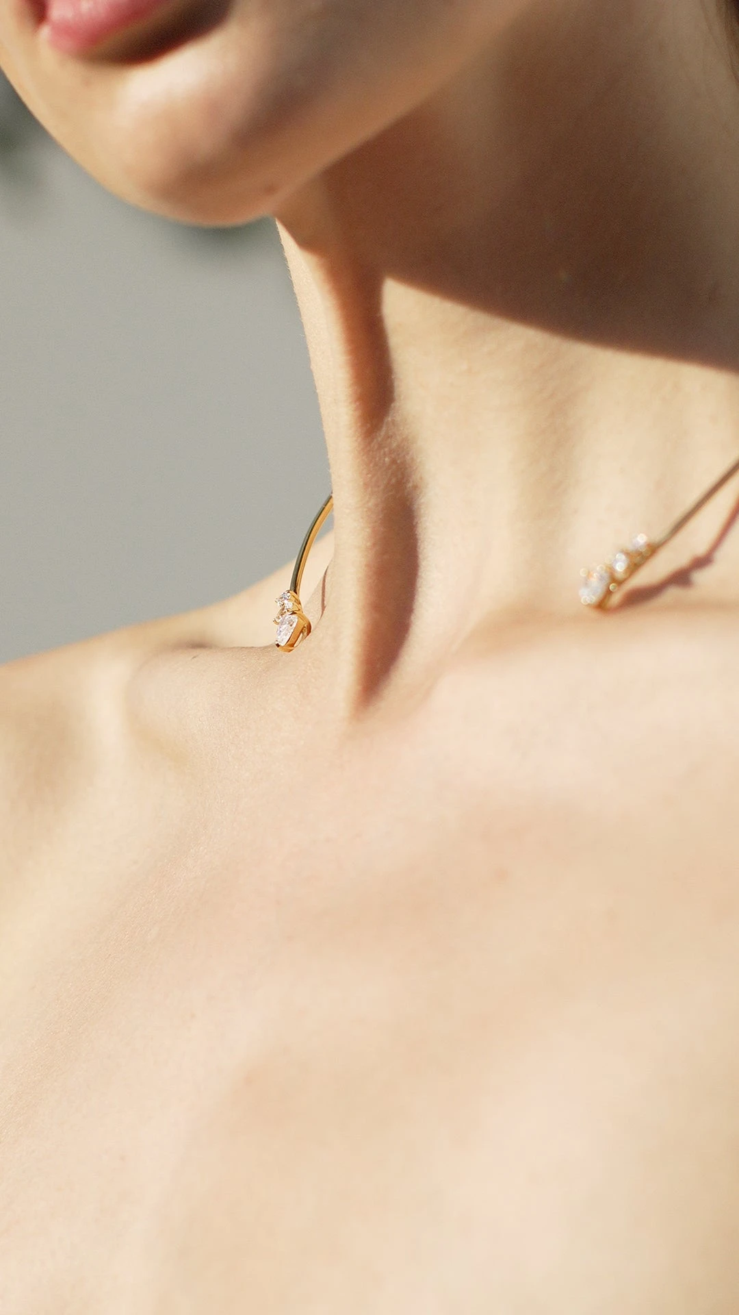 This open choker features an open design that makes it easy to slip on. Adorned with Pears and marquise-cut stones in Sterling Silver, it will give your everyday wear a stunning lift. Wear it with a matching pair of earrings.