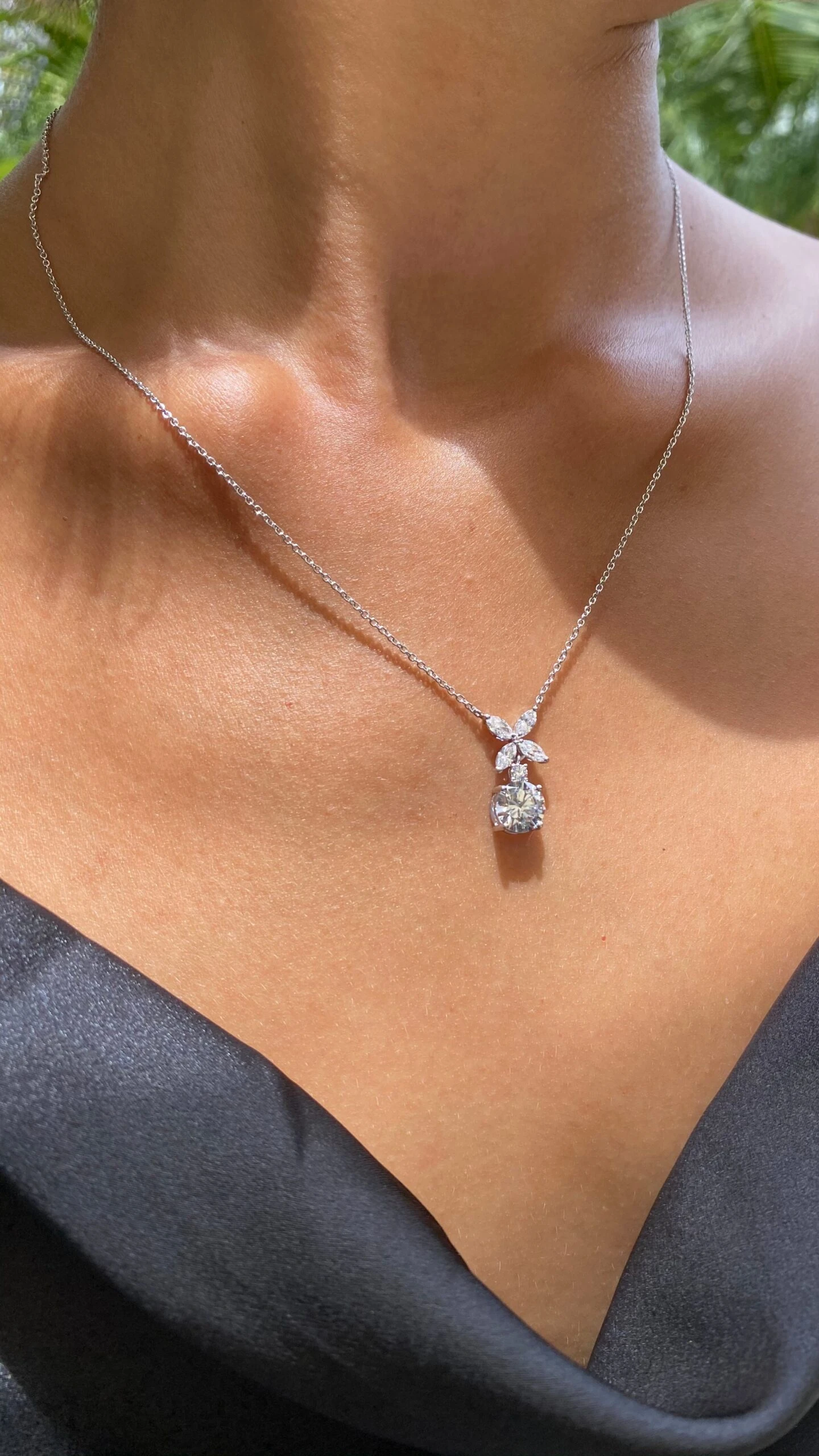 This lovely pendant features 1.5ct. eq. round brilliant suspended in 45cm rolo chain. This piece guarantees instant glamour to complete your weekday evening looks.